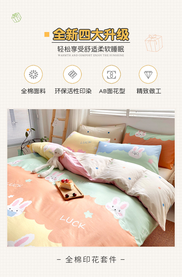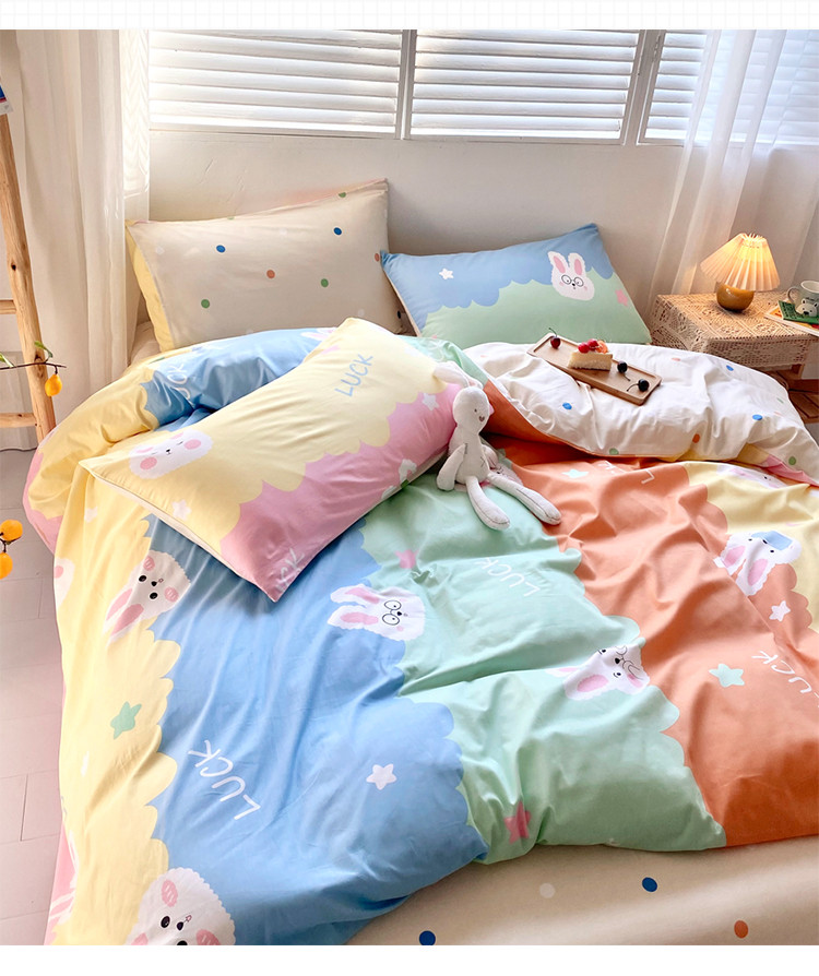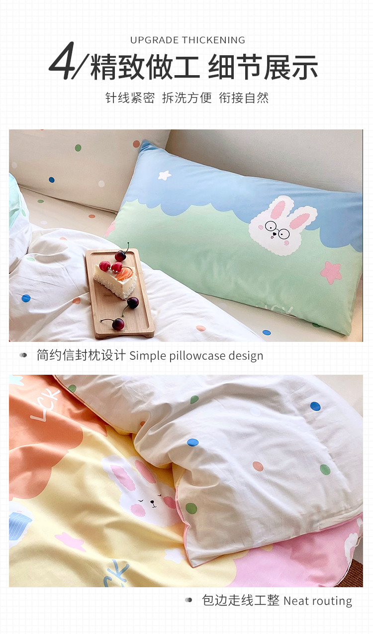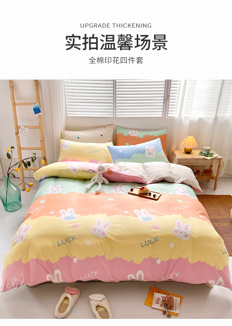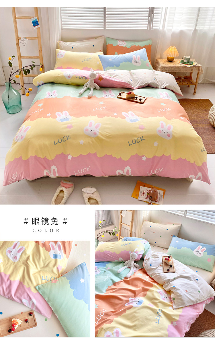 商品名称:仟网汇 2021新款春夏全棉小清新卡通系列四件套 眼镜兔