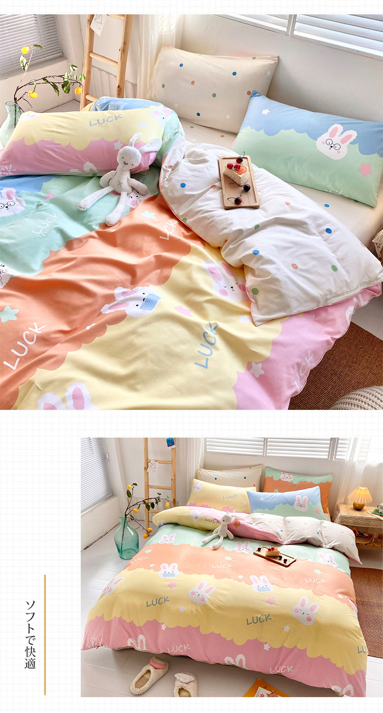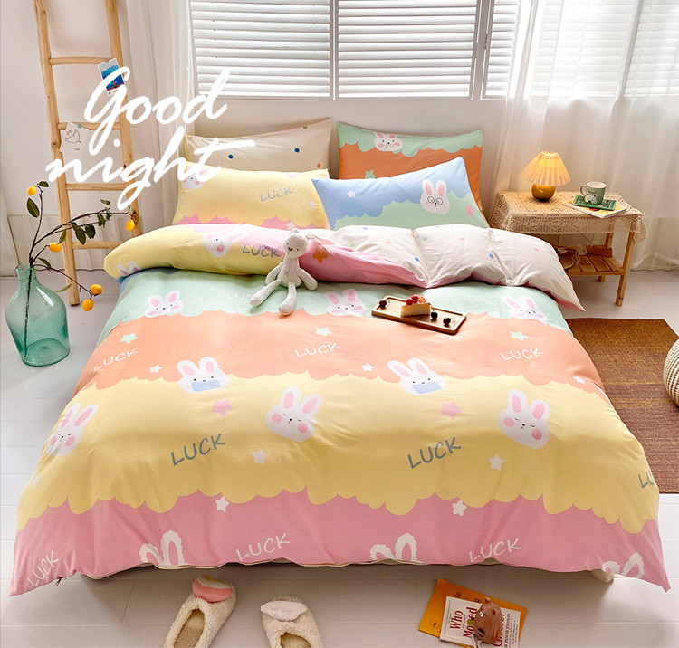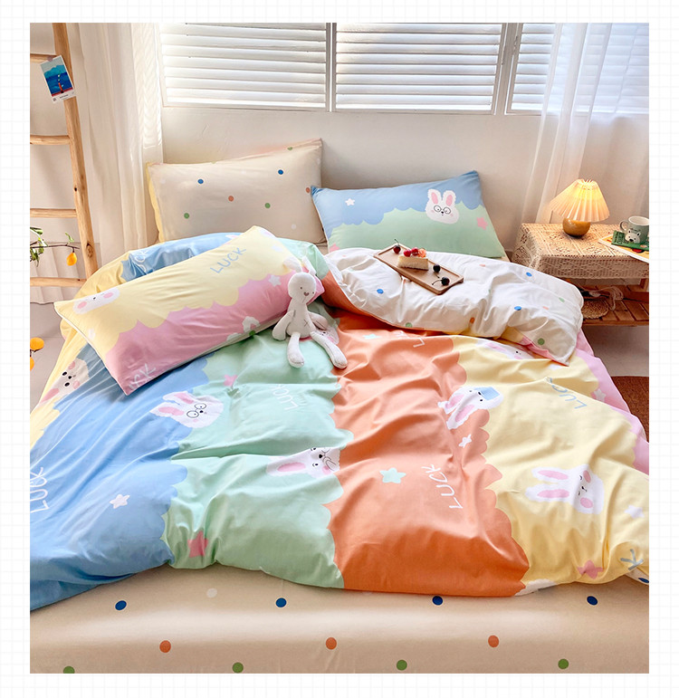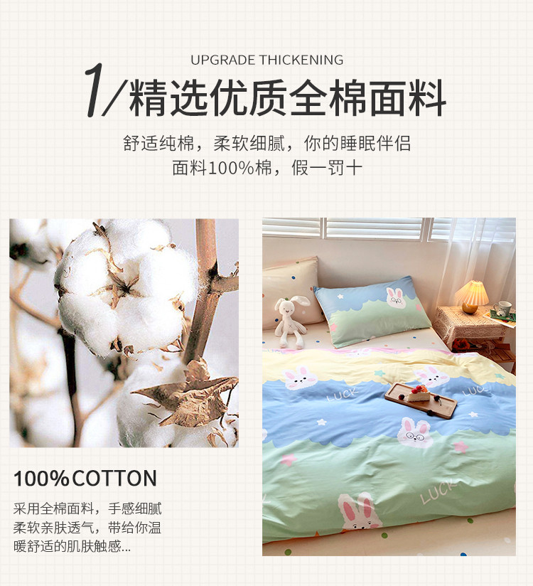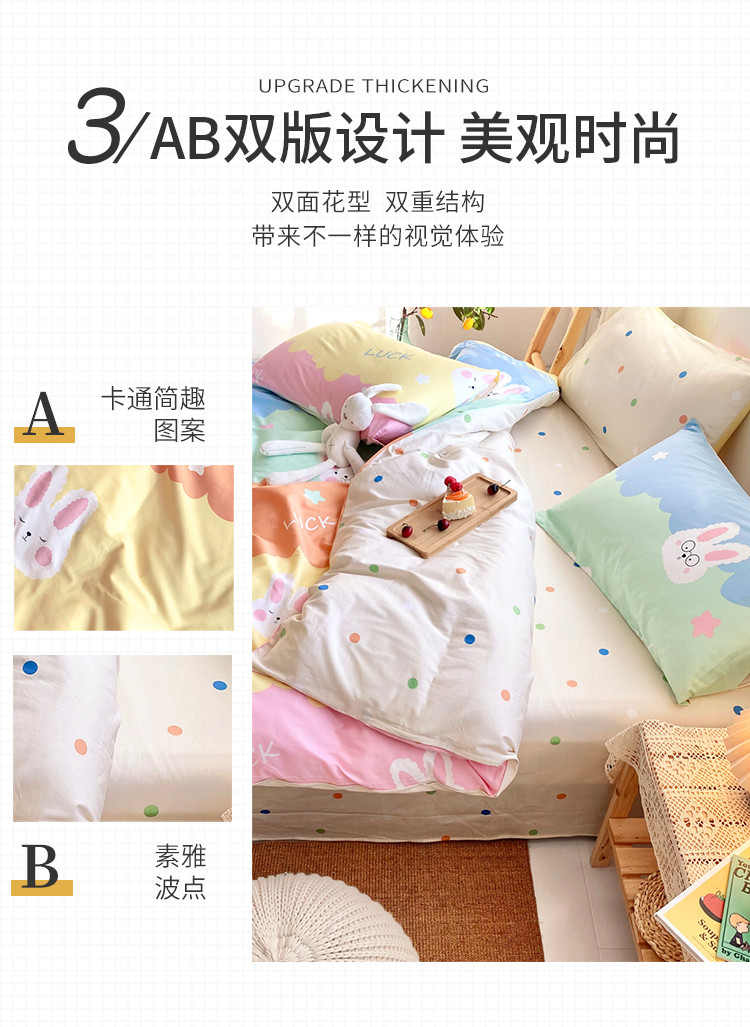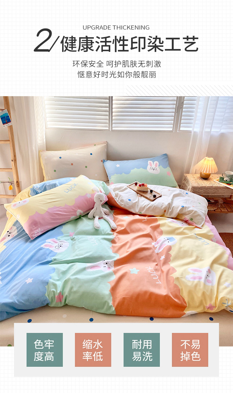 商品名称:仟网汇 2021新款春夏全棉小清新卡通系列四件套 眼镜兔