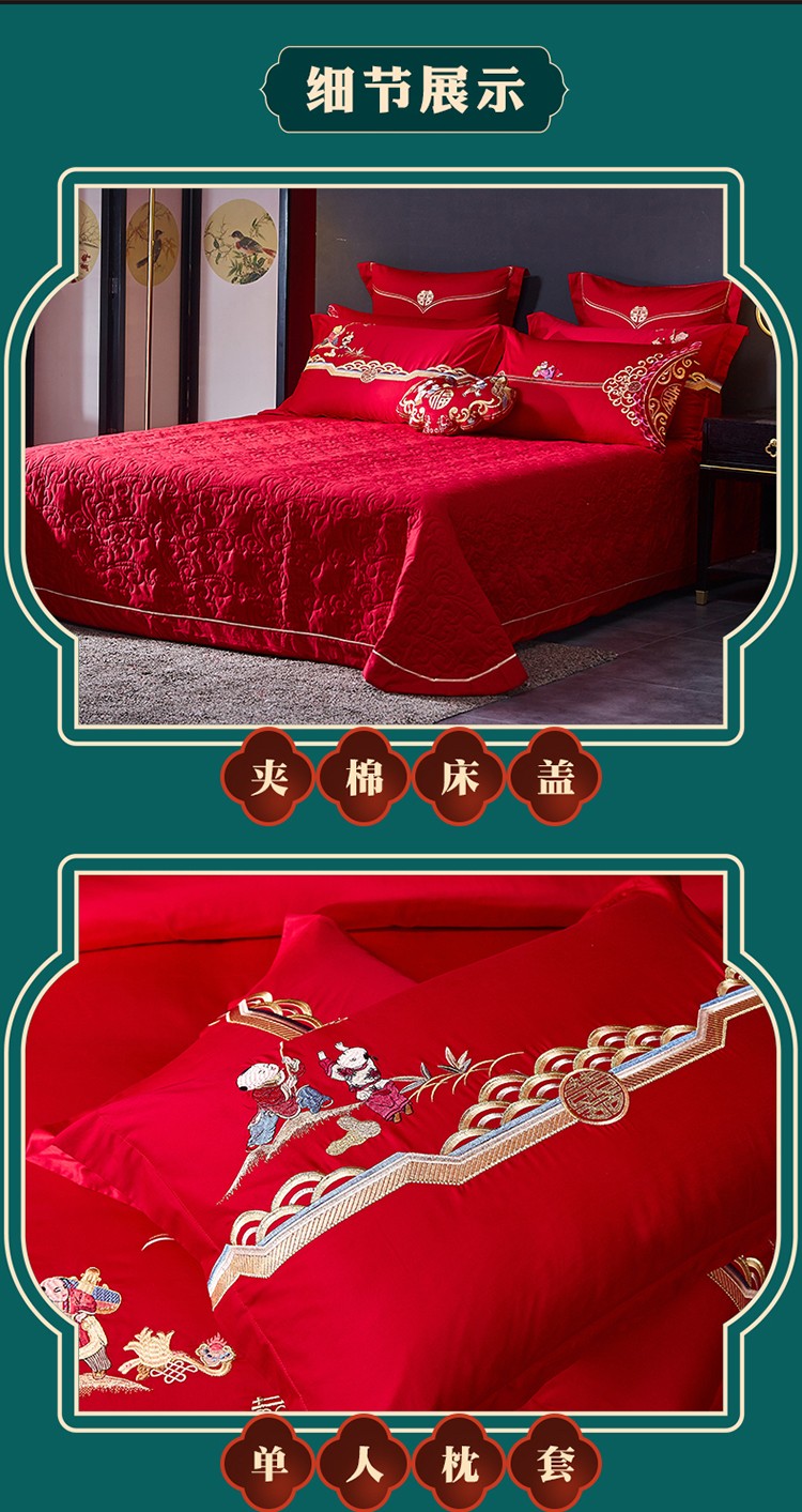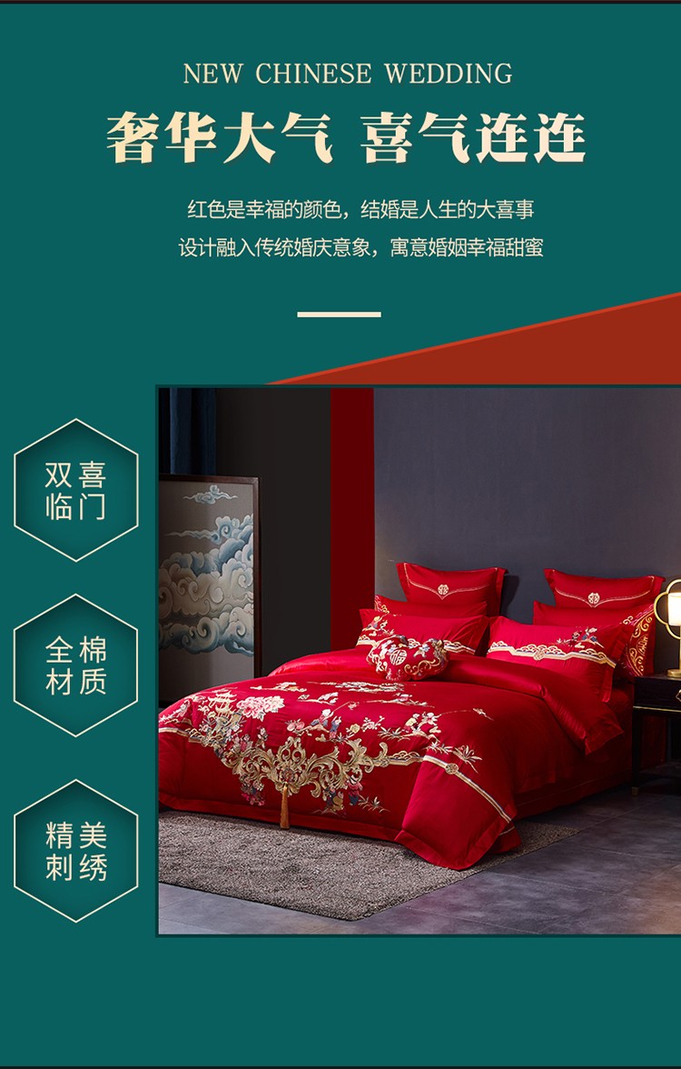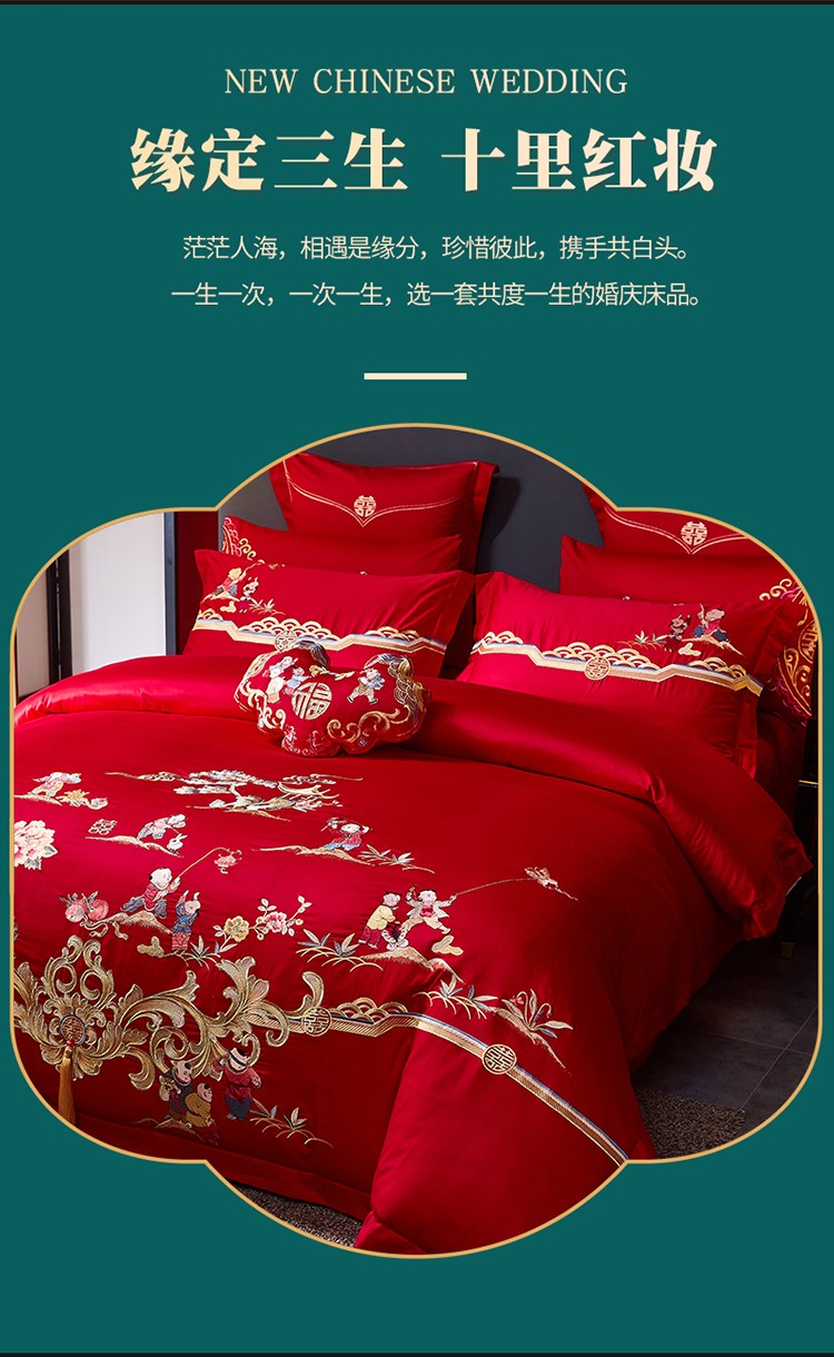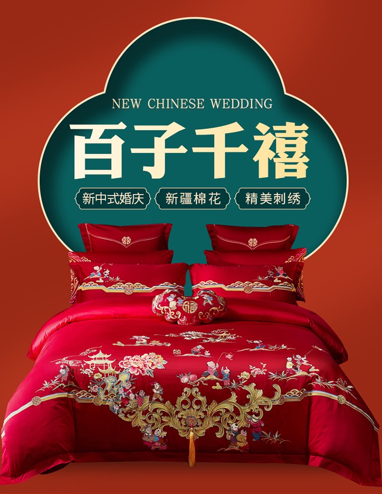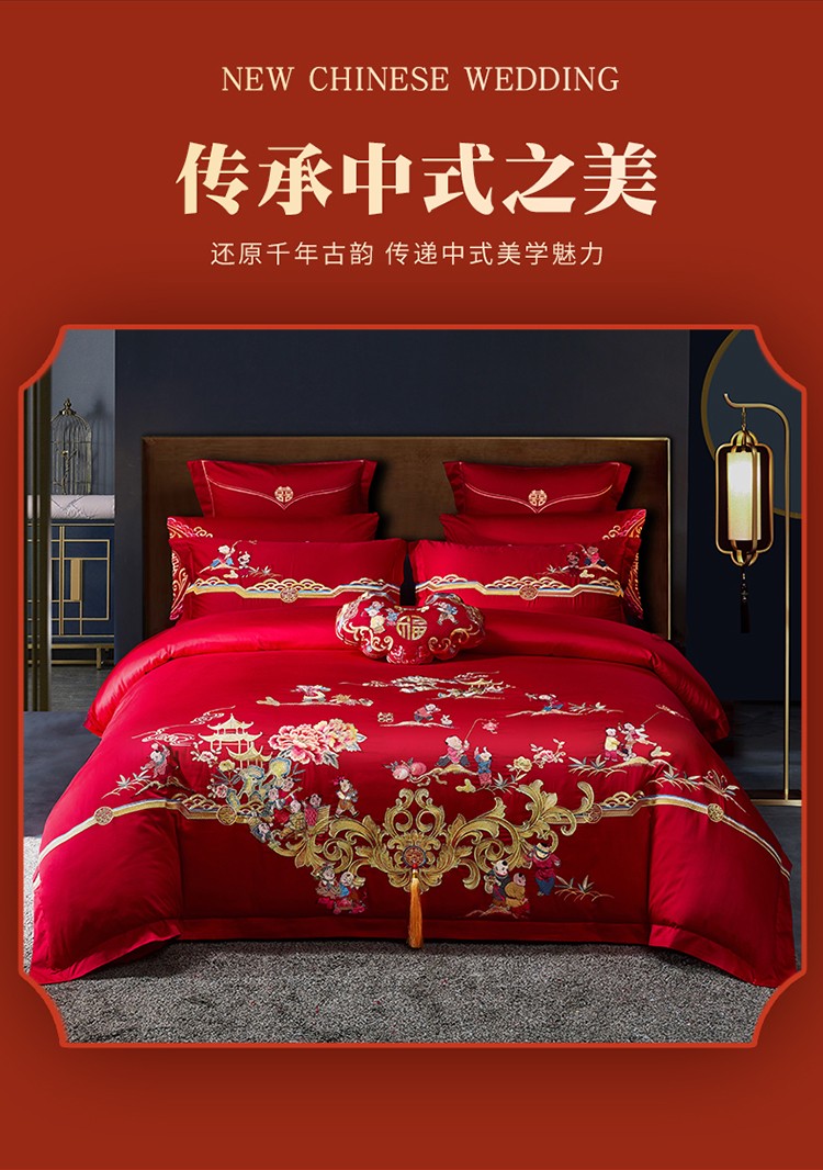 当前位置: 91家纺网 > 商品网购 > 床品套件 > 四件套 > 婚庆四件套 > 红番天 热卖款全棉婚庆刺绣四件套 百子千禧