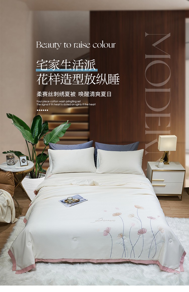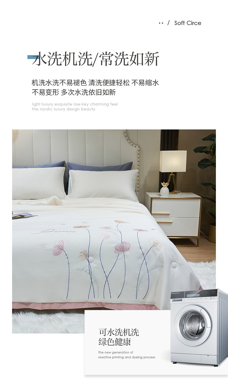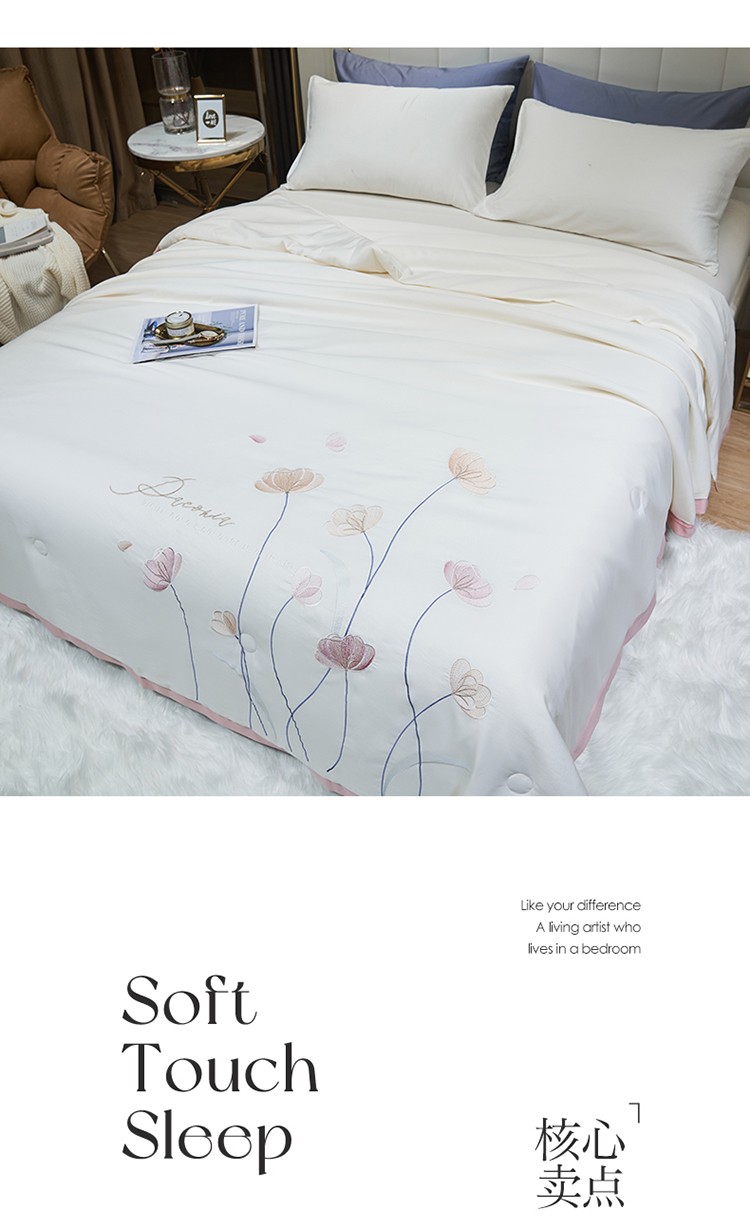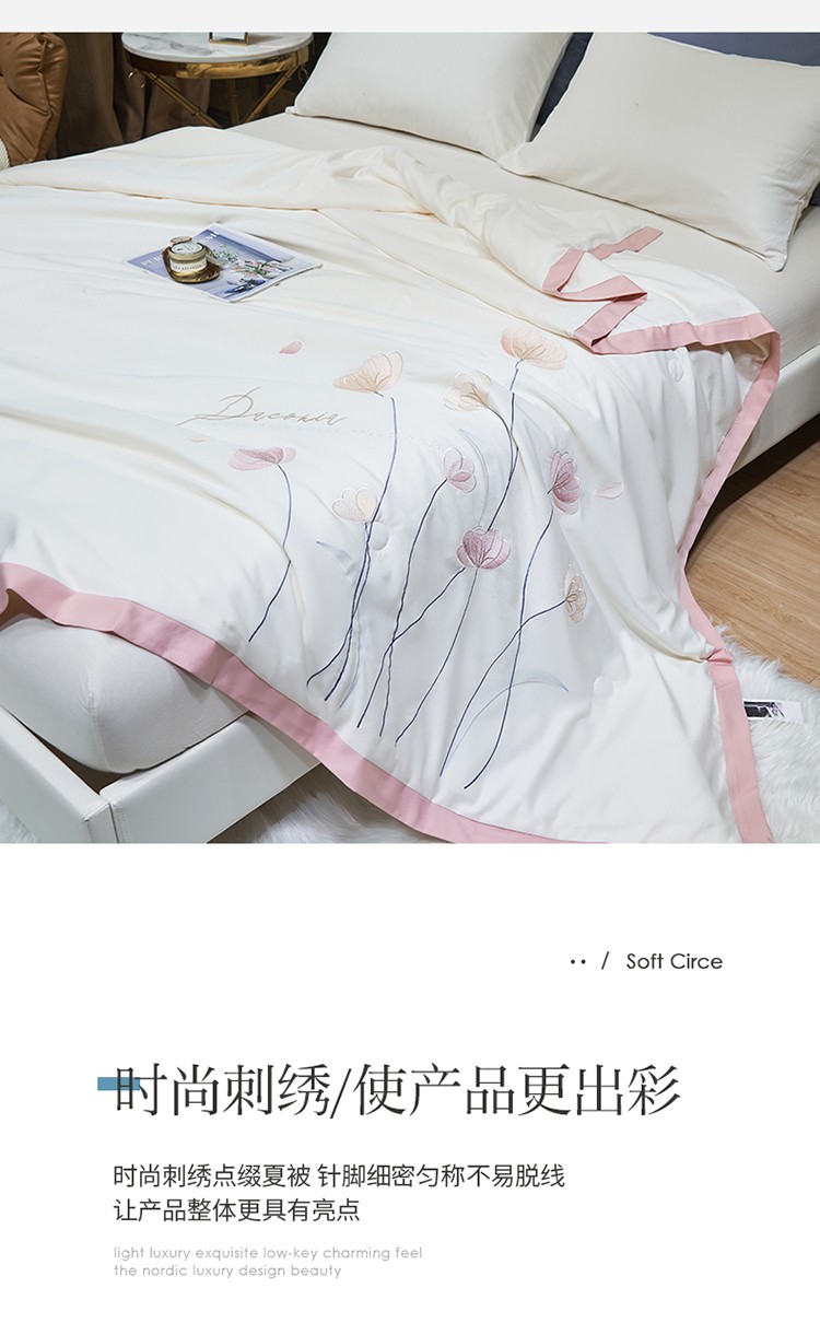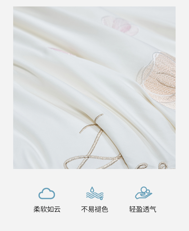 商品名称:吾秀 2022新款柔赛丝刺绣夏被-芳华 芳华-象牙白