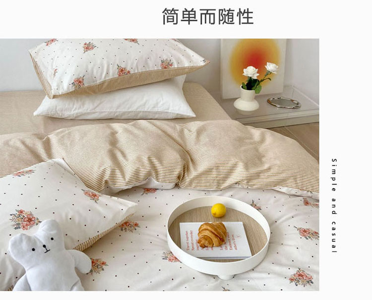 (总)梦家居 2022韩国花边款色织全棉水洗棉四件套,南瓜色,浅灰色,浅咖色,浅蓝色,浅绿色,深灰色,象牙白