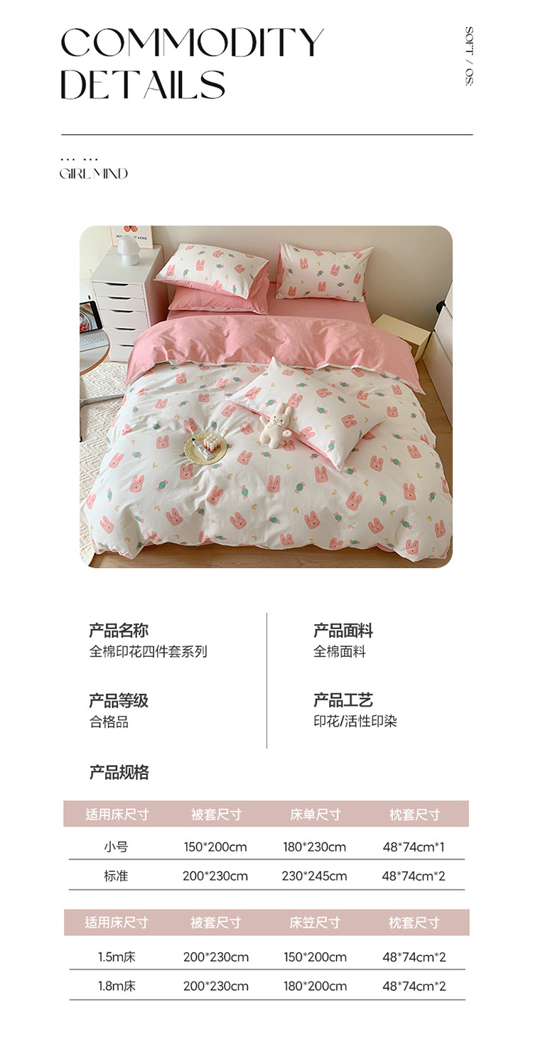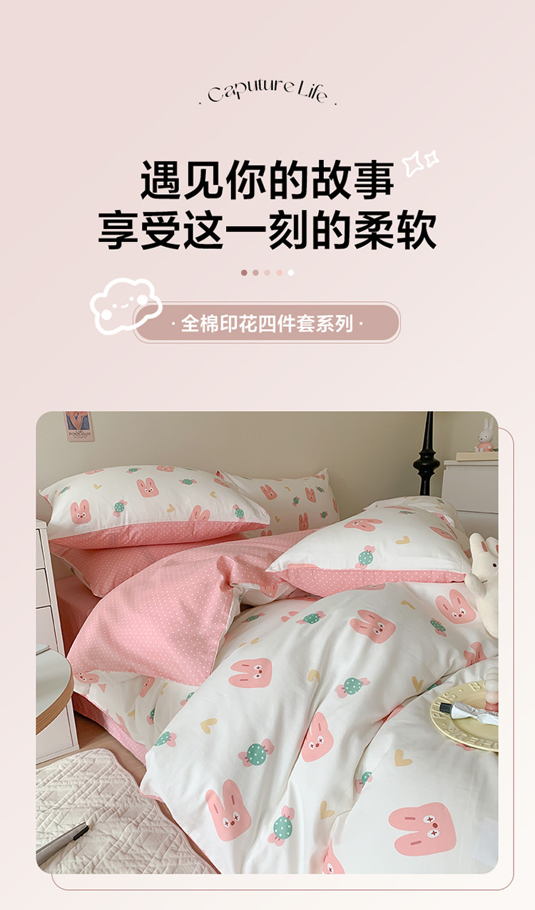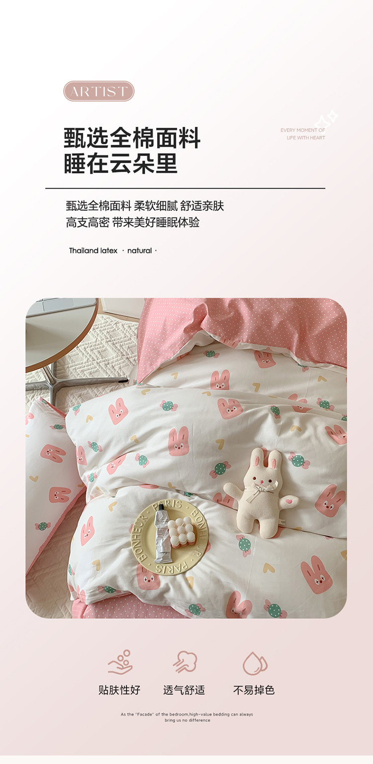 商品名称:澳萝拉 2023新款全棉印花四件套会员减5元糖果兔兔