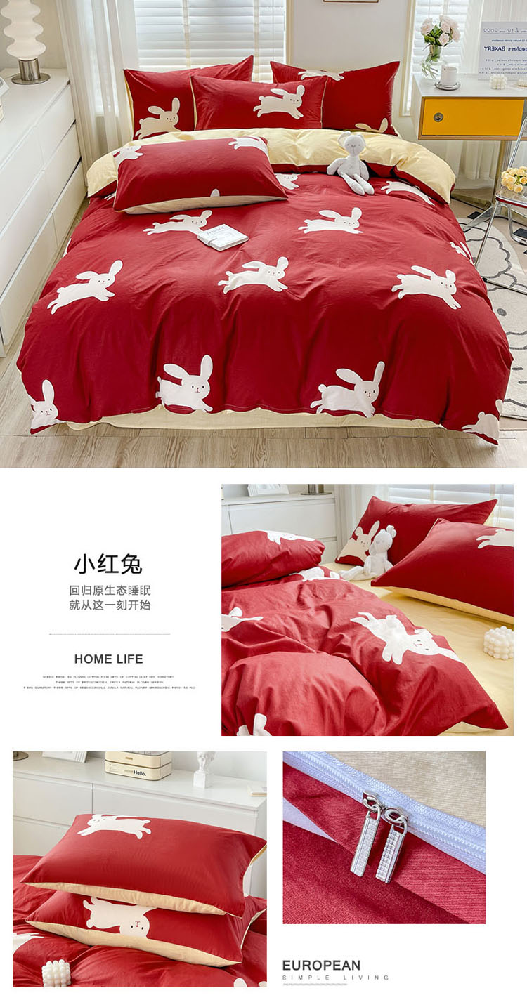 当前位置: 91家纺网 > 商品网购 > 床品套件 > 四件套 > 全棉普通四件套 > 梦家居 2023春季新品小清新系列3-全棉四件套 小红兔