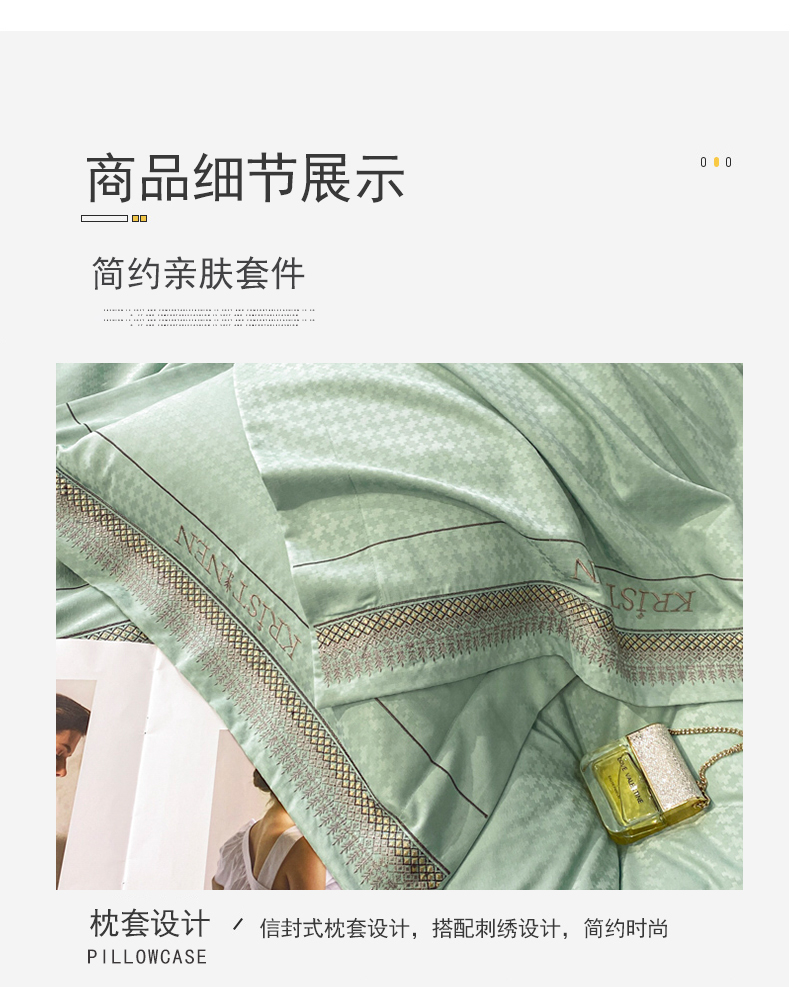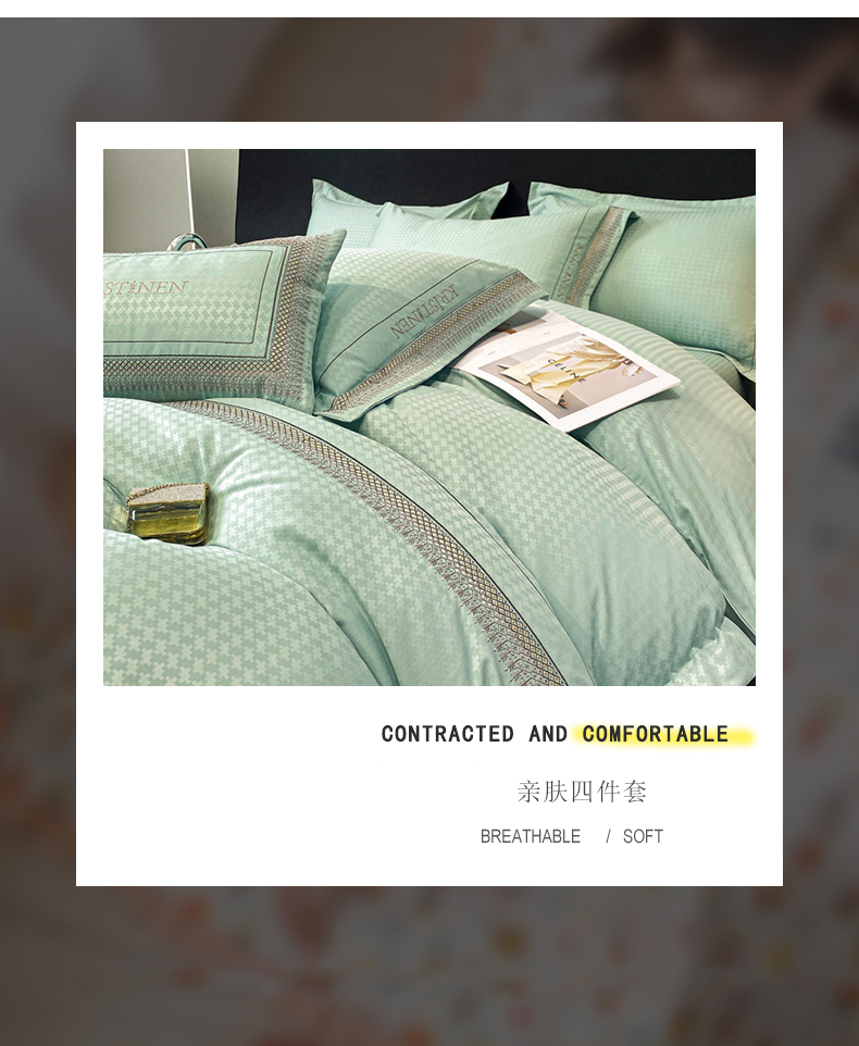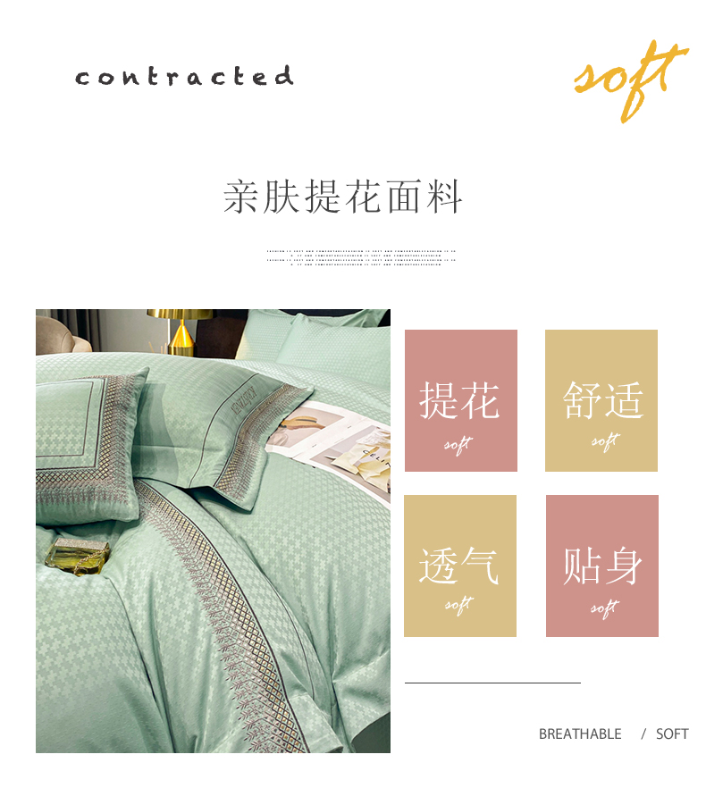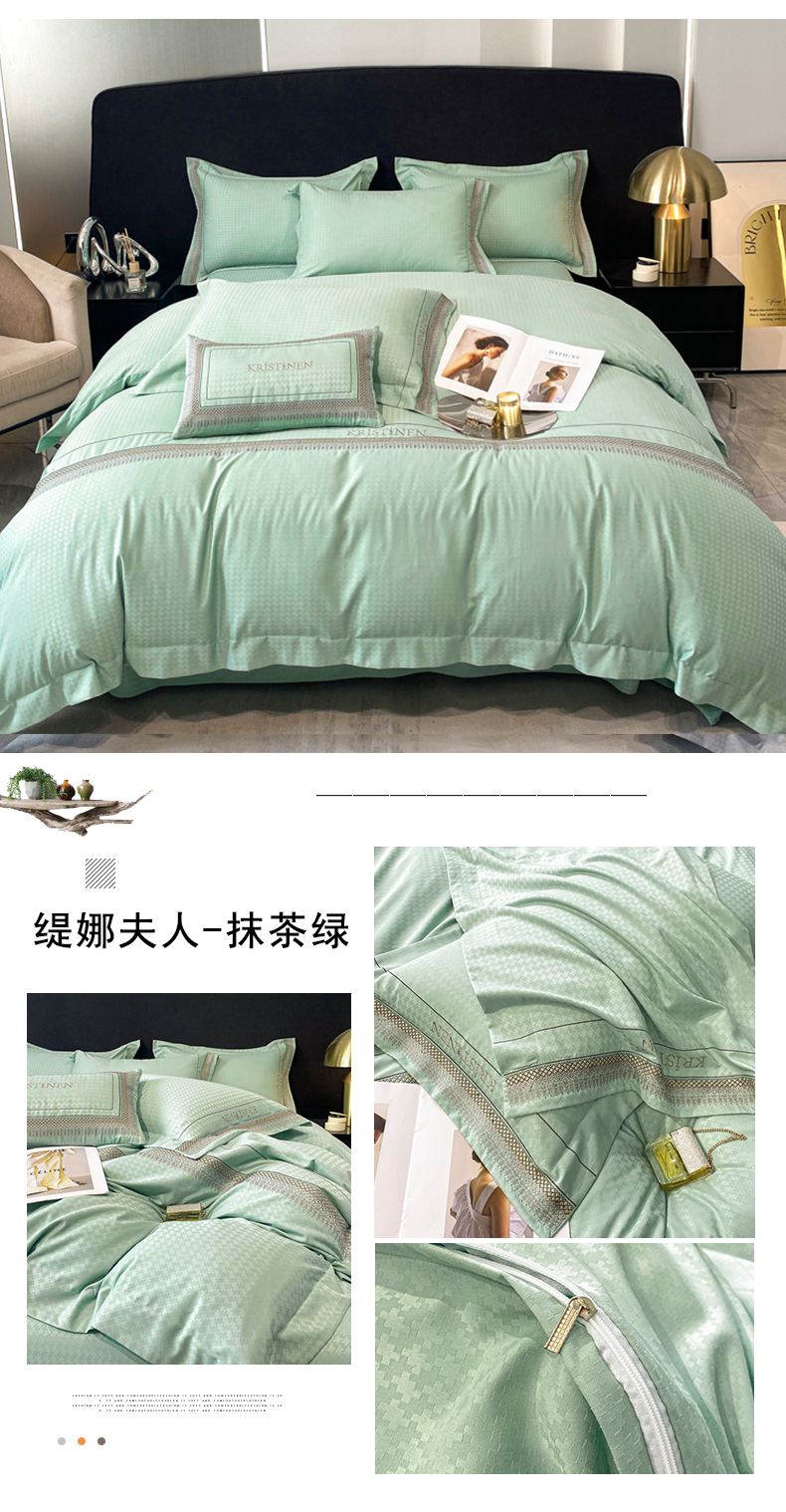 商品名称:安妮 2023新款提花刺绣四件套-缇娜夫人 缇娜夫人-抹茶绿