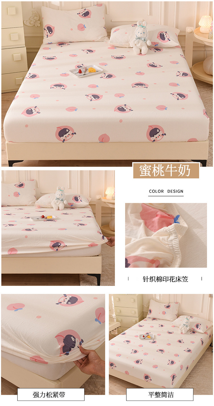 商品名称:甜之梦 2025新款针织棉印花单品床笠 蜜桃牛奶
