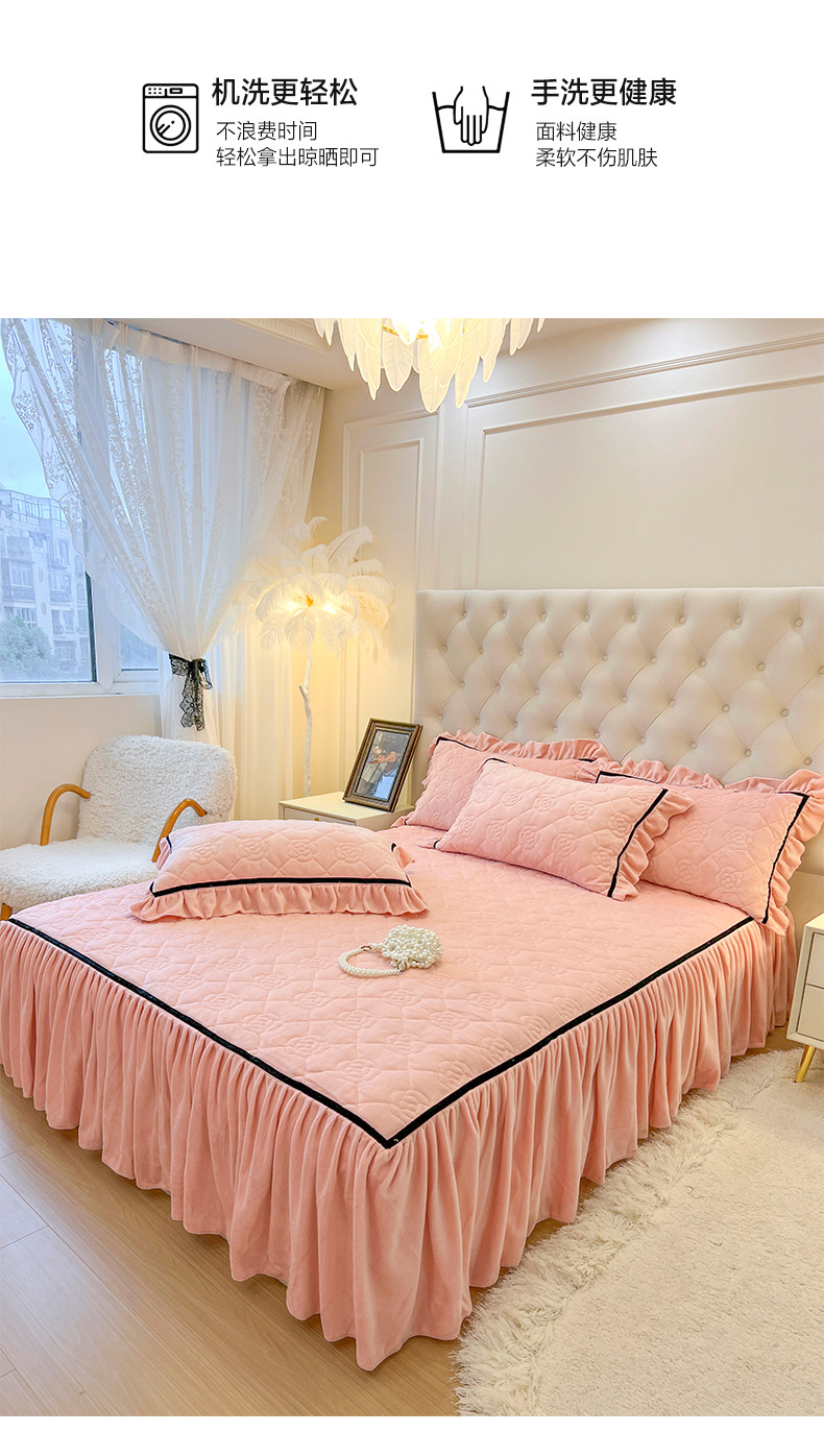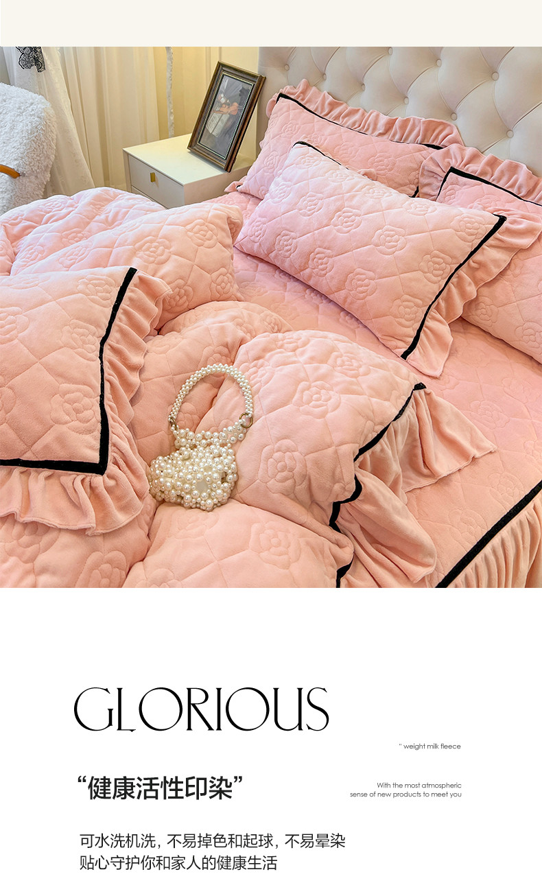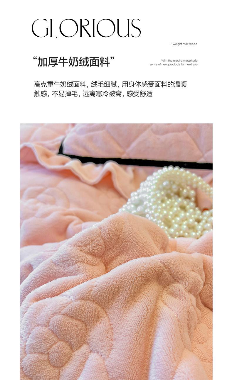 商品名称:麒豆豆 2023新款高克重加厚保暖牛奶绒眷恋系列单床裙 眷恋-少女粉