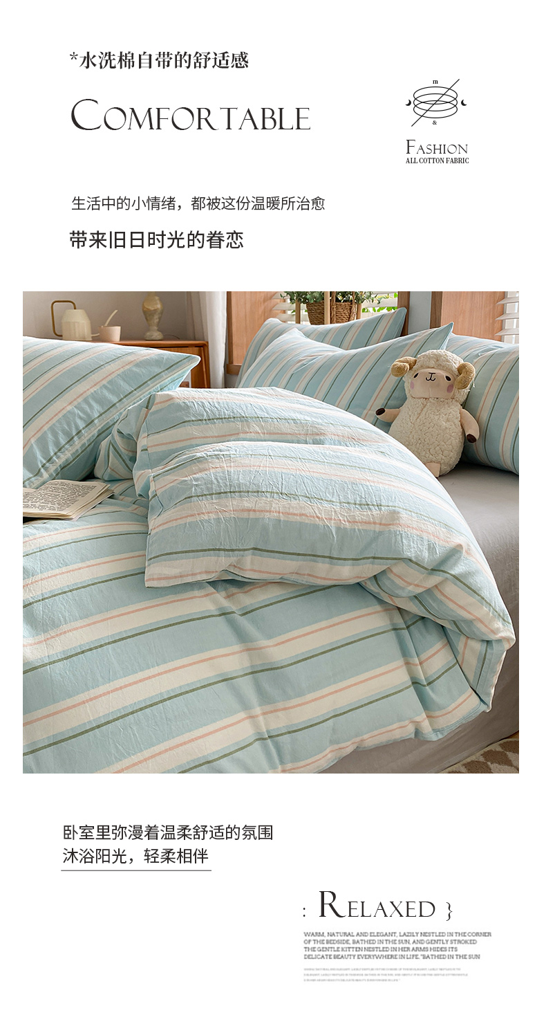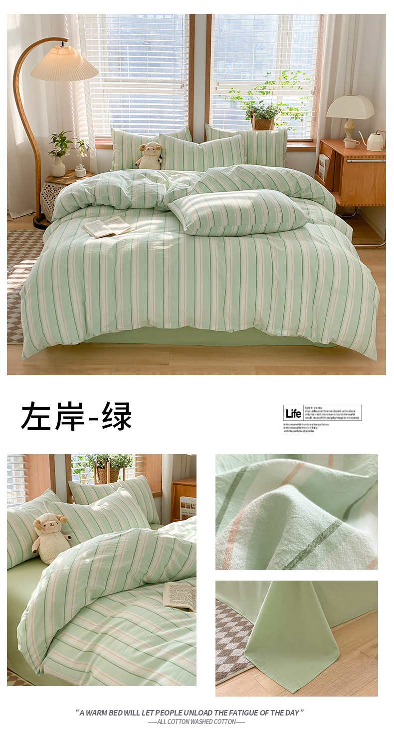当前位置: 91家纺网 > 商品网购 > 床品套件 > 四件套 > 全棉普通四件套 > 木子家纺 2024新款简约日式40支全棉色织水洗棉四件套 左岸-绿