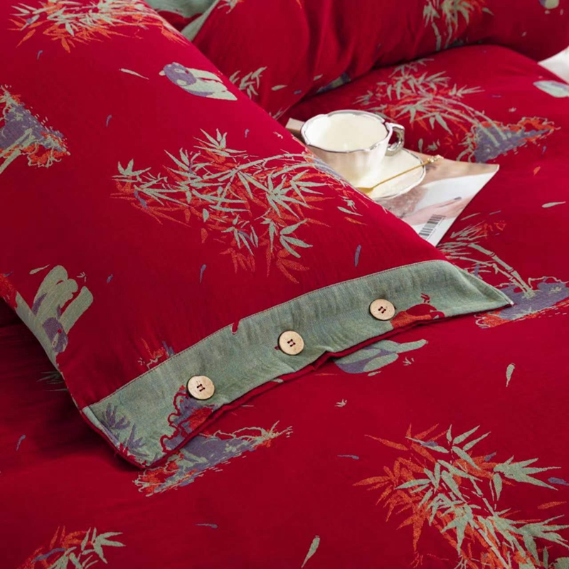 商品名称:双层纱家居 2024新款双层纱四件套系列(第三批)-AA纽扣款 福竹