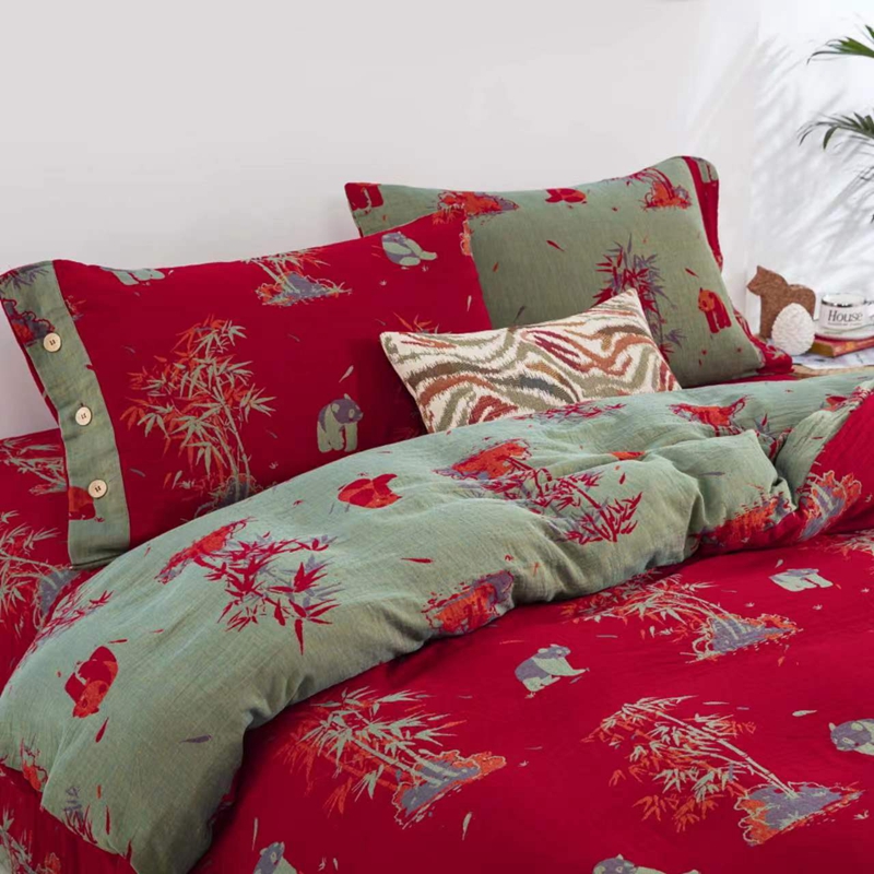 (总)双层纱家居 2025新款全棉纯棉双层纱工艺款四件套,素纱蝶梦-红蕊,素纱蝶梦-陌森,素纱蝶梦-青栀,素纱蝶梦-纤芷,素纱蝶梦-南鸢,素纱蝶梦-玉茗