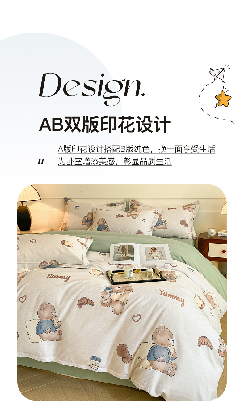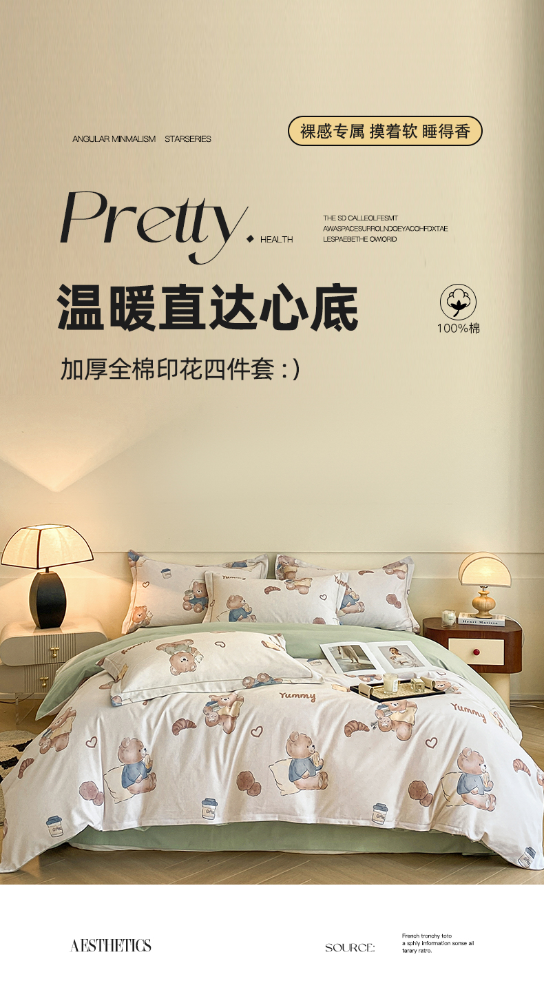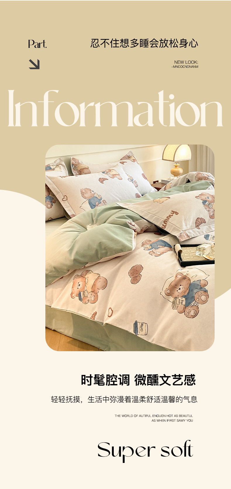 商品名称:格里芬家纺 2025新款花卉系列全棉加厚磨毛数码印花四件套(控价劵后标准208起) 快乐熊