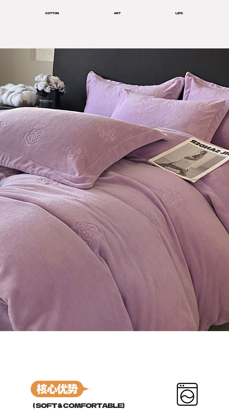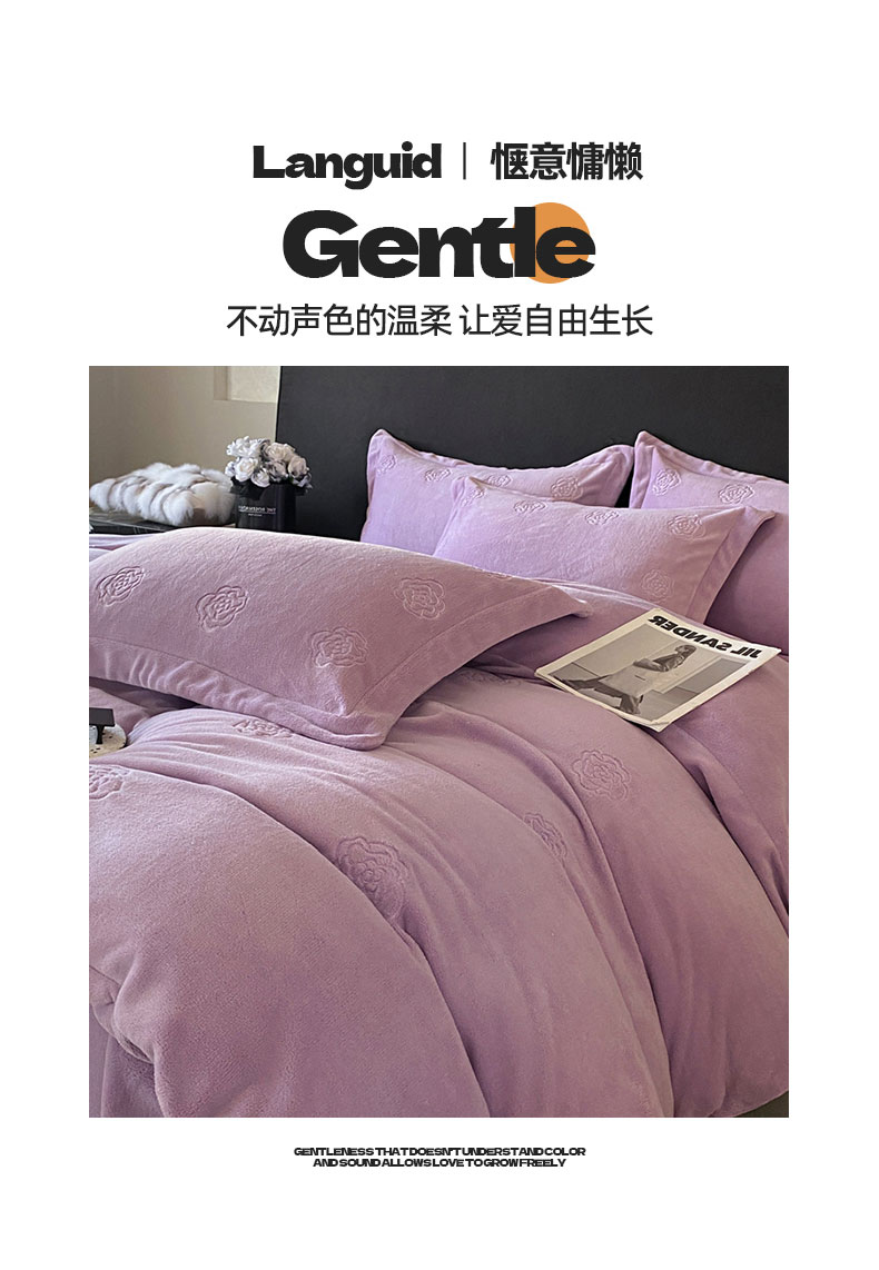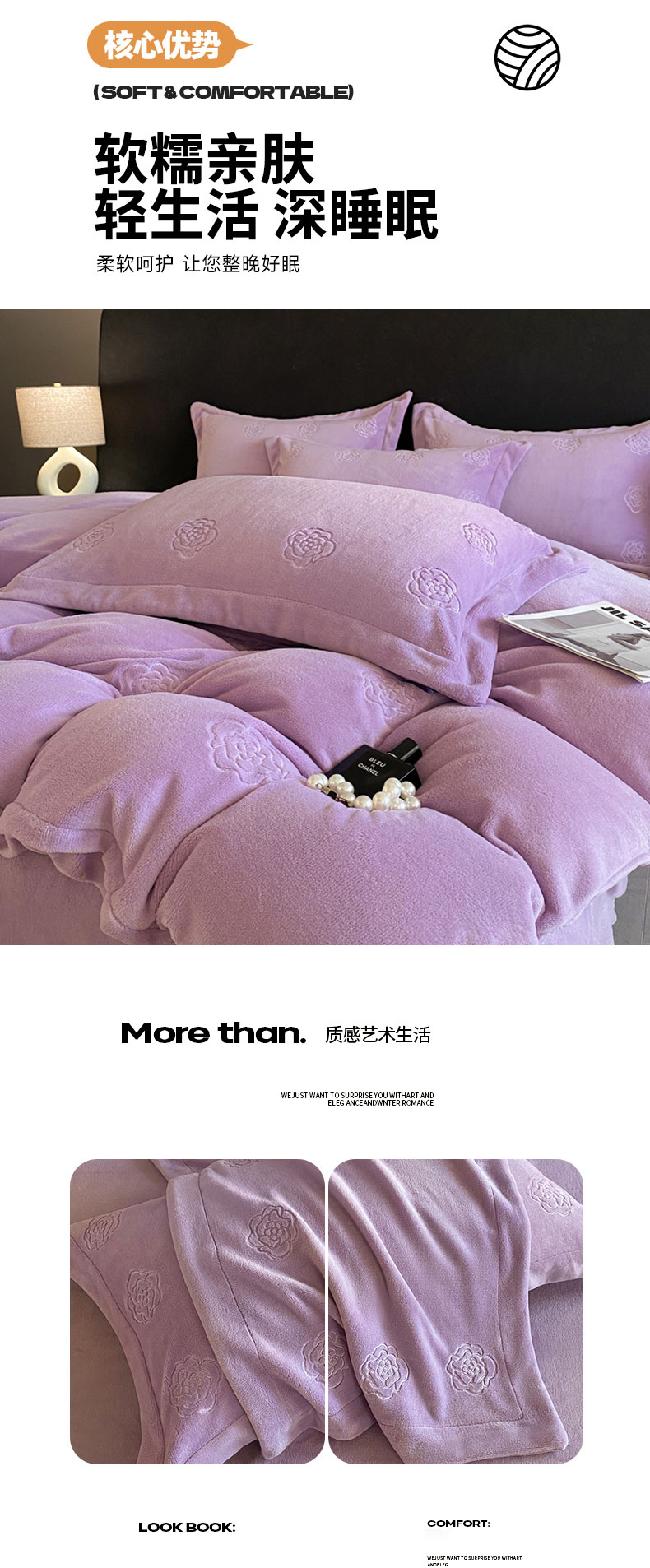 当前位置: 91家纺网 > 商品网购 > 床品套件 > 四件套 > 牛奶绒四件套 > 你好美丽 2025新款A类200克牛奶绒山茶花刺绣四件套 山茶花紫