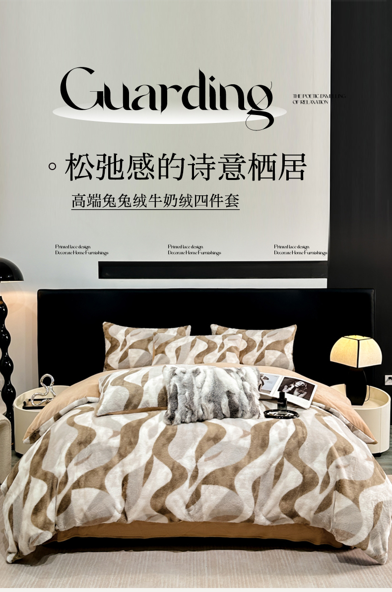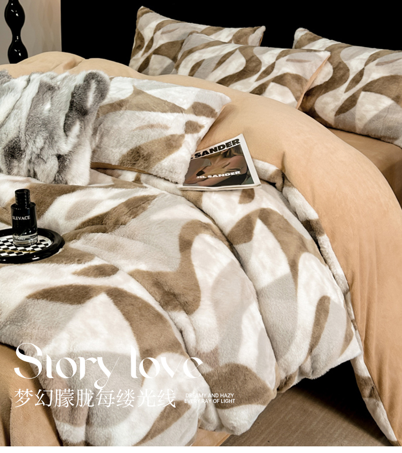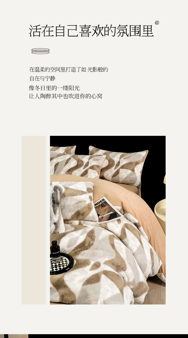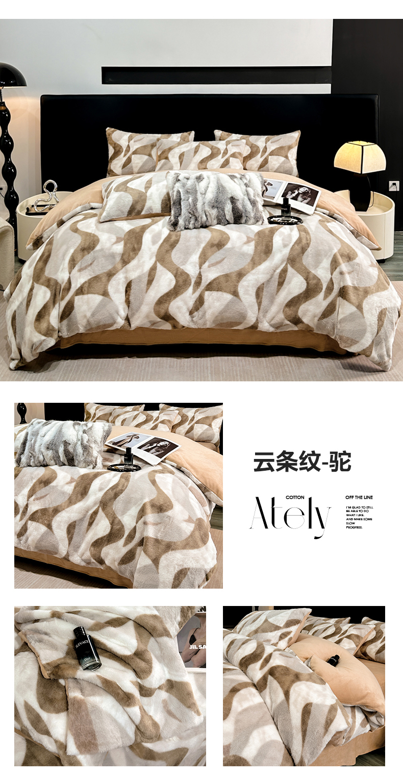 当前位置: 91家纺网 > 商品网购 > 床品套件 > 四件套 > 兔毛绒四件套 > 舒慕家纺 2025新款兔兔绒四件套 云条纹-驼色