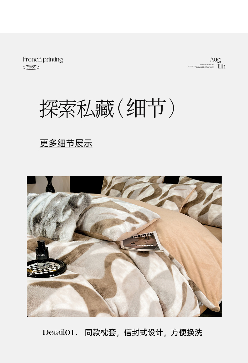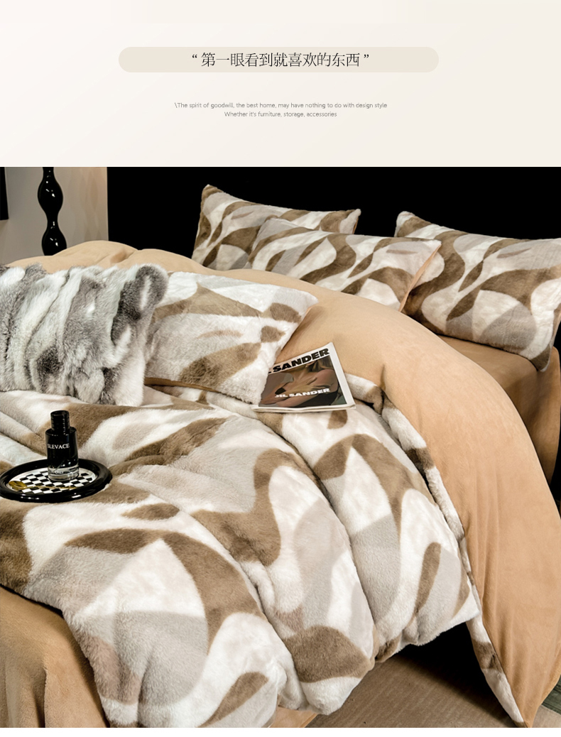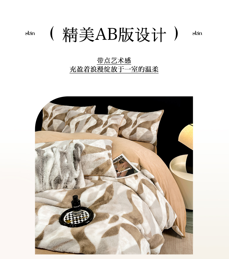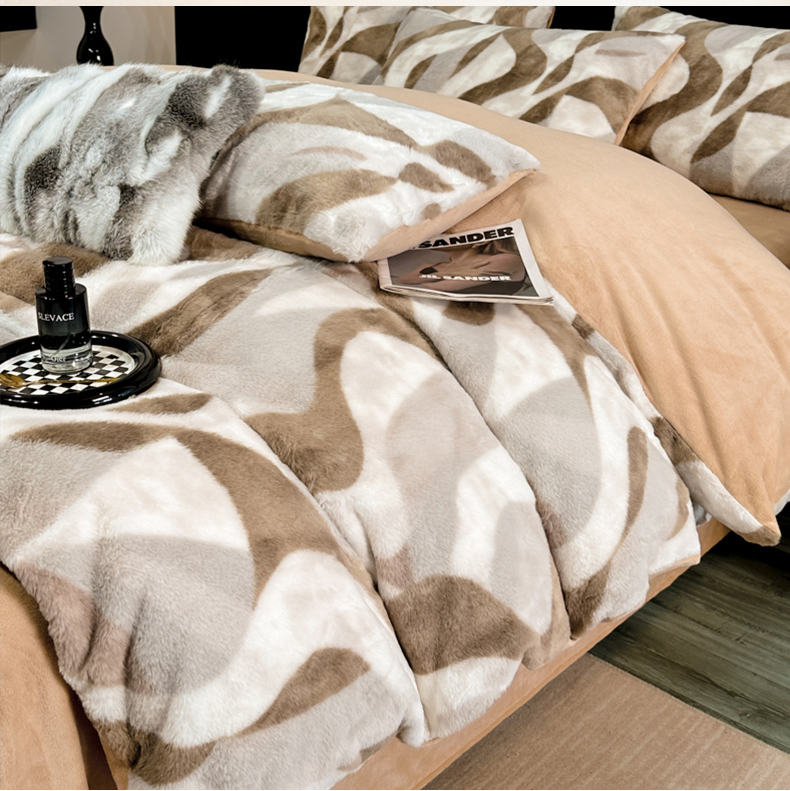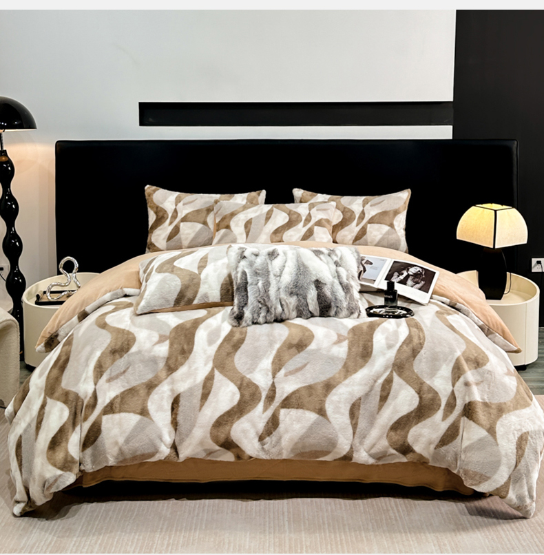 当前位置: 91家纺网 > 商品网购 > 床品套件 > 四件套 > 兔毛绒四件套 > 舒慕家纺 2025新款兔兔绒四件套 云条纹-驼色