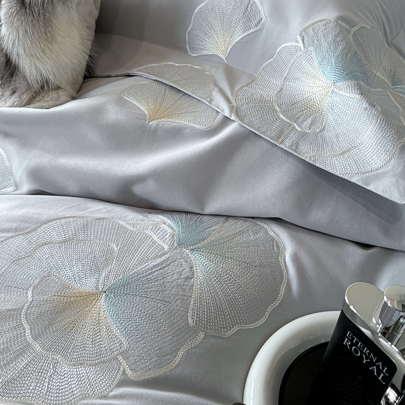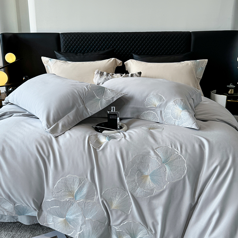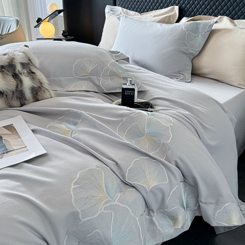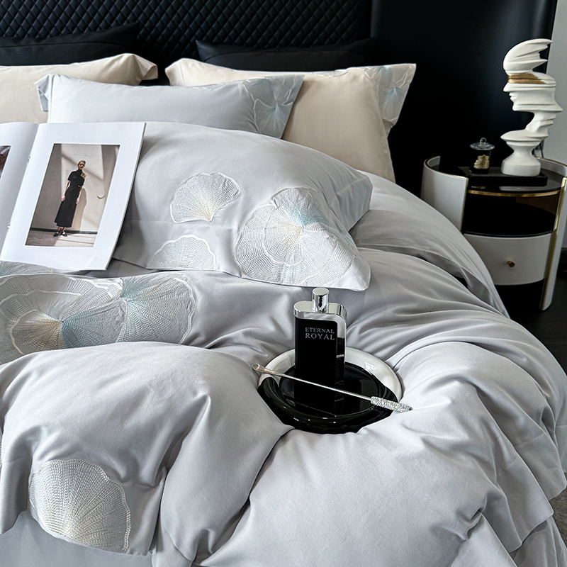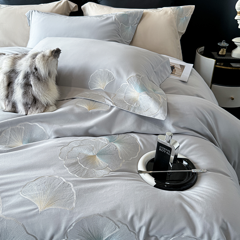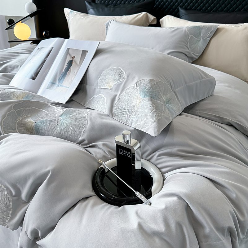沐白家居 2024新款100支长绒棉磨毛四件套 经典灰