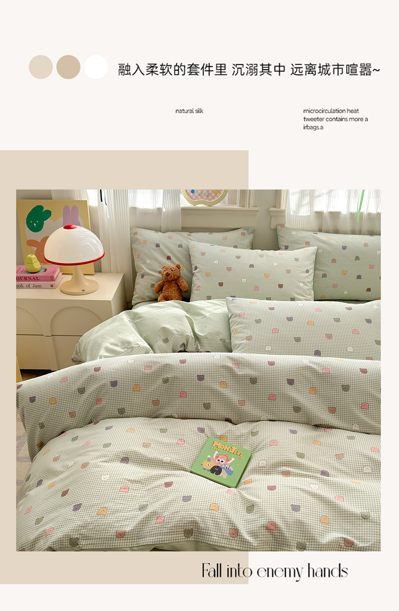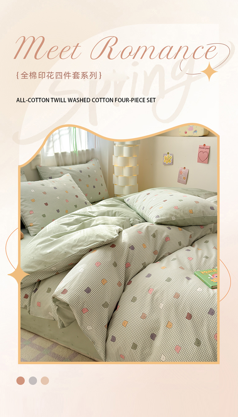 (总)清雅福 2026春夏新款INS小清新40支全棉13372四件套第一批,棒棒糖女孩,春之约定,点点小狗,动物聚会,豆丁小熊,粉心狗,富贵狗,果子象,含羞草,假日小狗
