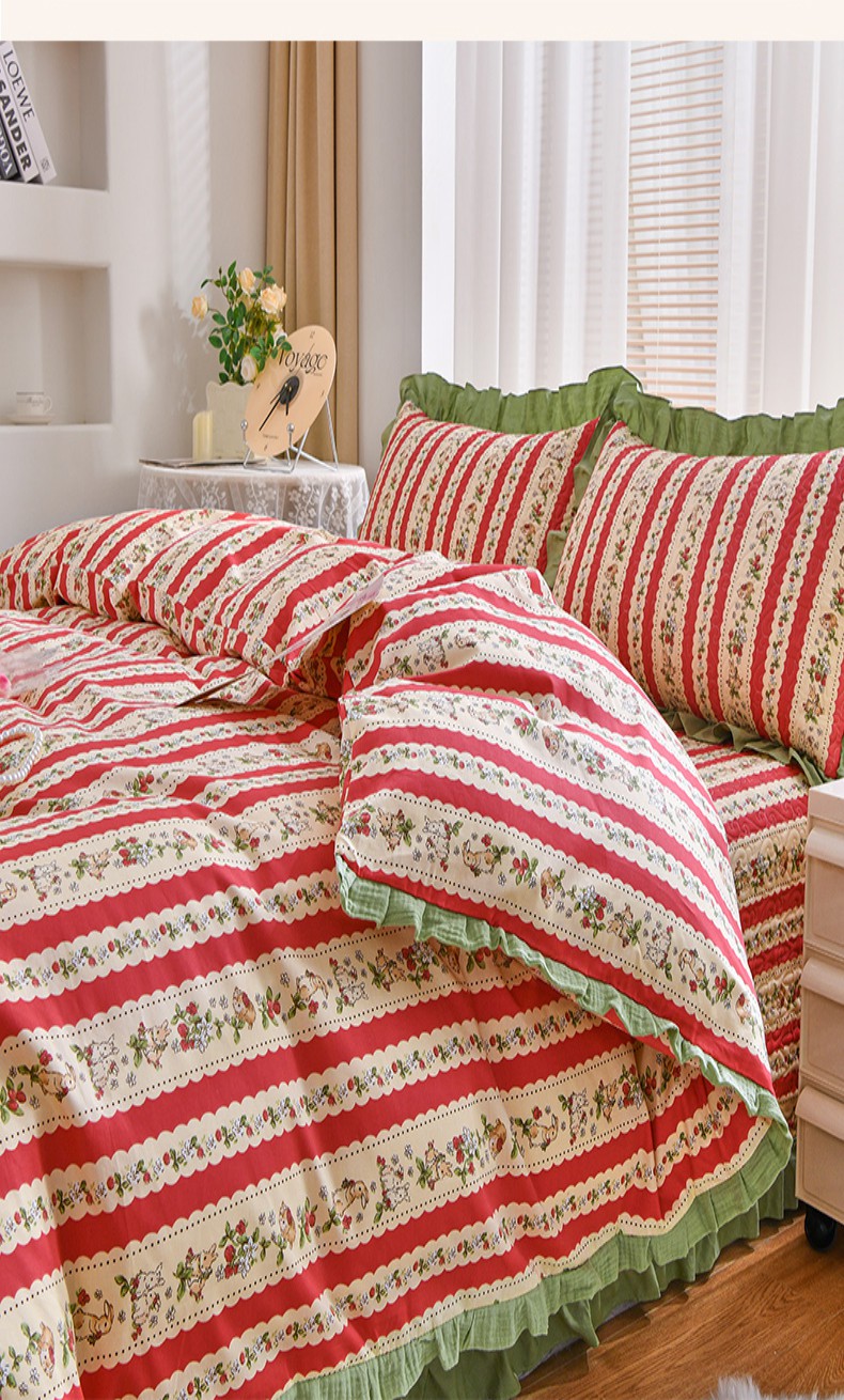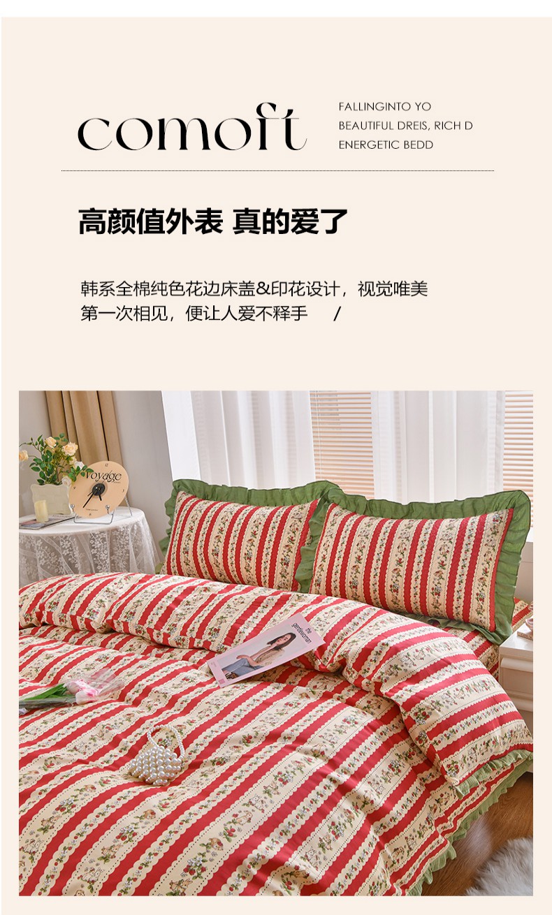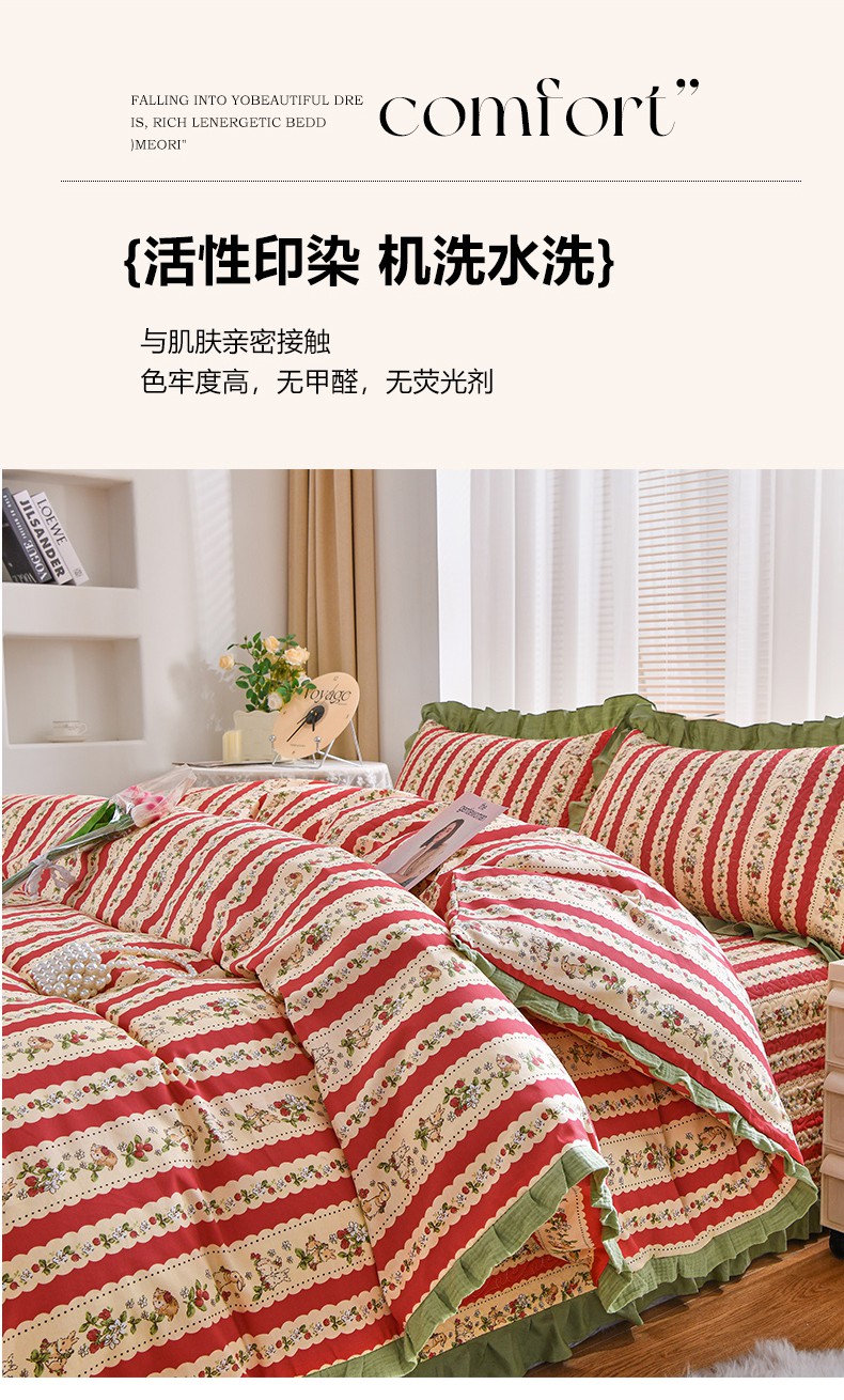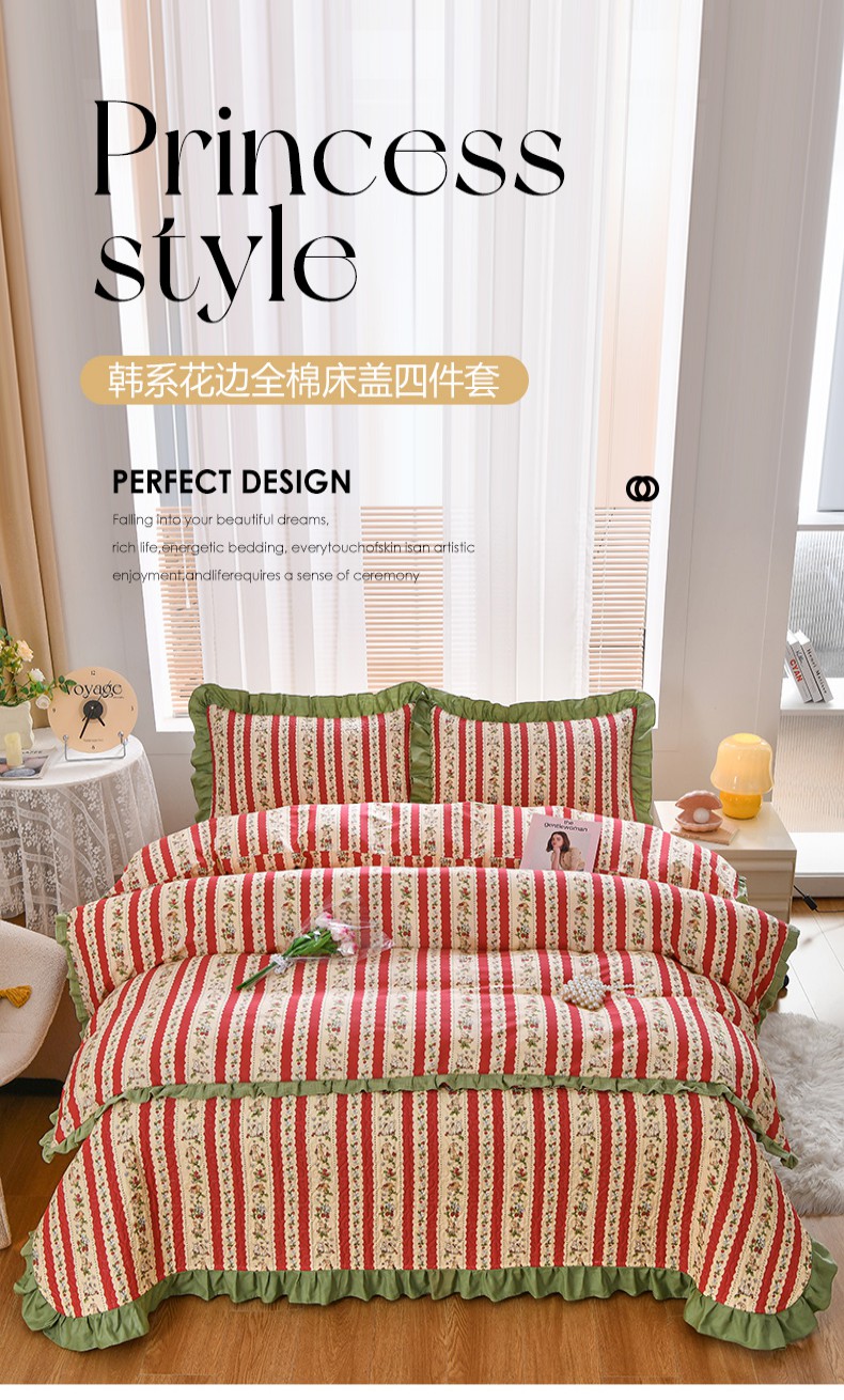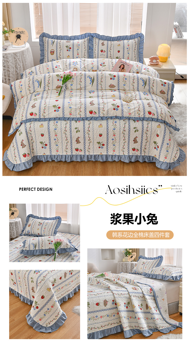 (总)梦精灵家纺 2025新款韩系花边全棉床盖四件套,布朗熊,欢乐熊,浆果小兔,爱薇儿,畅游春园,精灵兔,紫葡萄,萌兔寻香,青丝花带