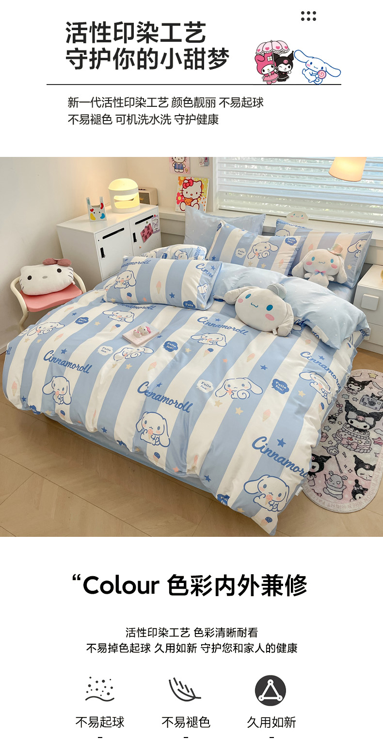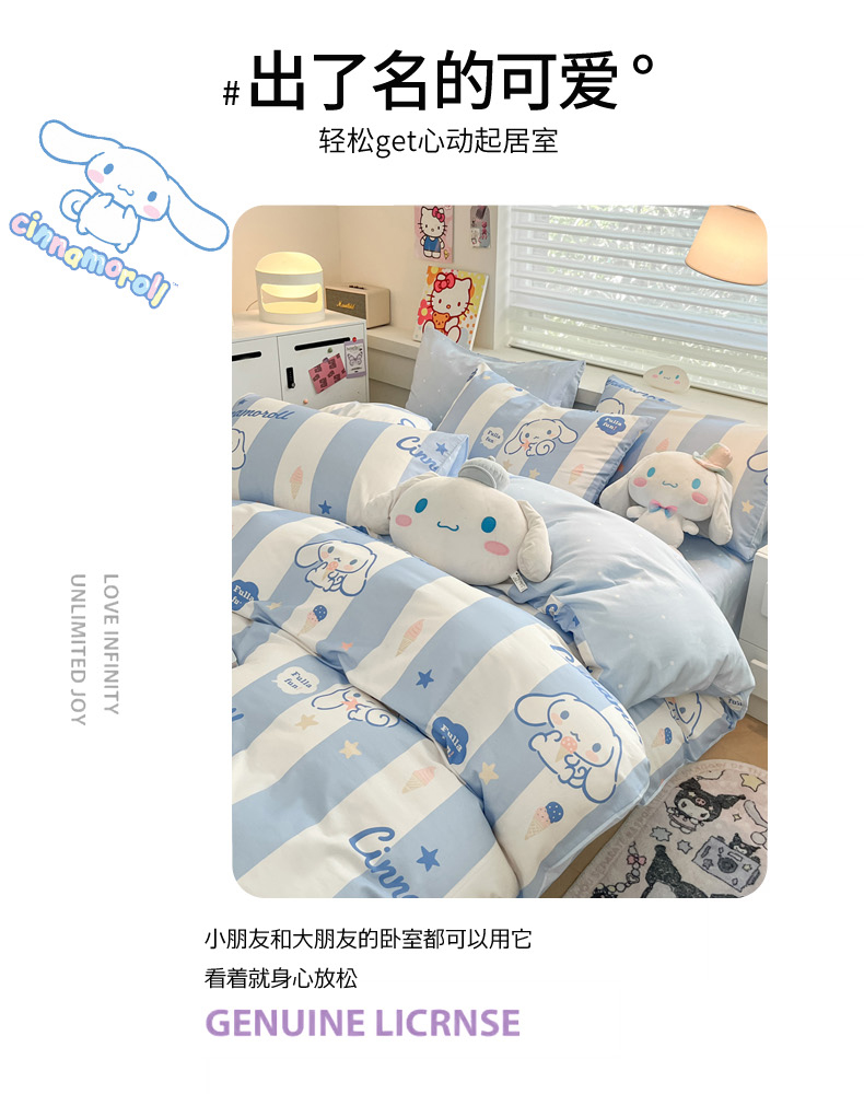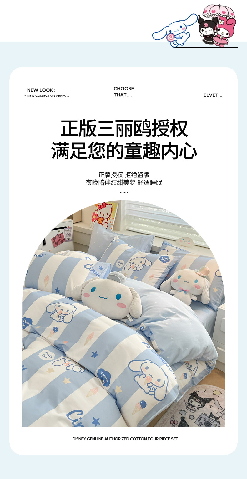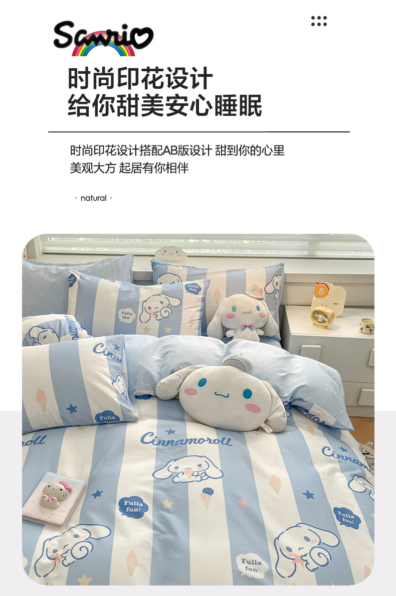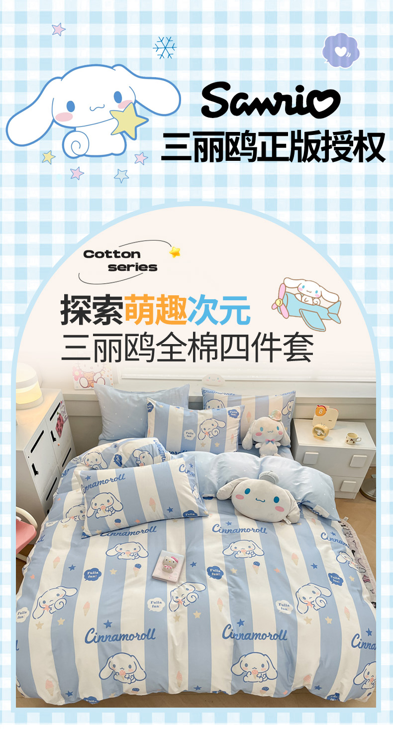 当前位置: 91家纺网 > 商品网购 > 床品套件 > 四件套 > 其它四件套 > 暮思家居 2025新款正版授权三丽鸥全棉四件套系列四件套 蓝条玉桂狗
