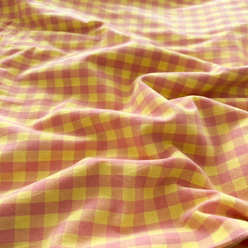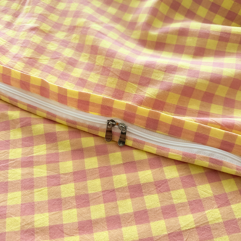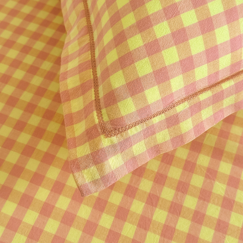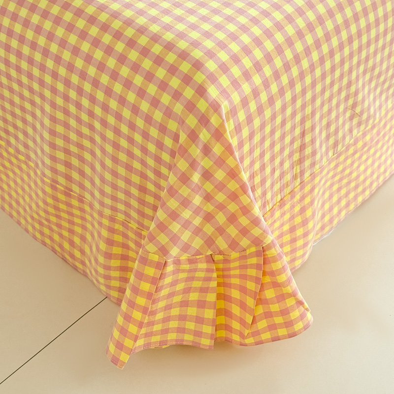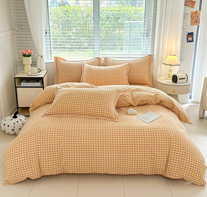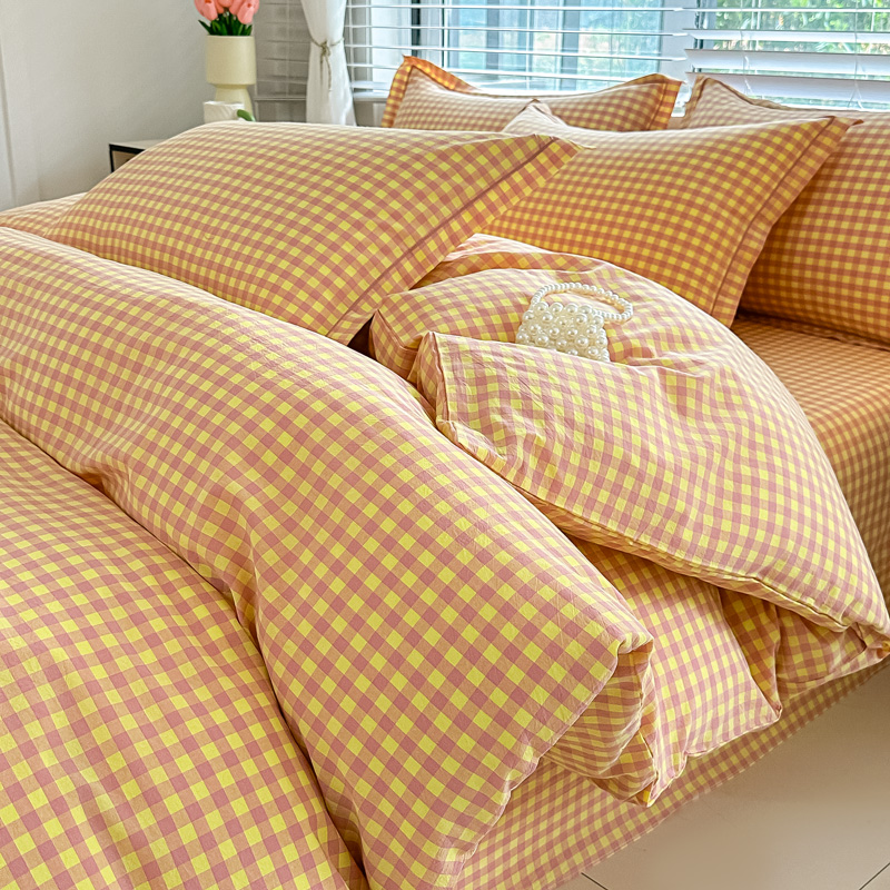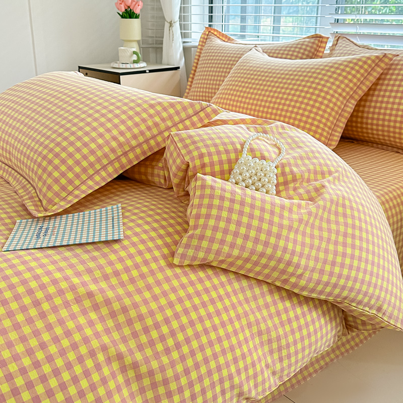 商品名称:侯先生家纺 2025新款全棉色织四件套纯棉被套床单四季款格子三件套 黄粉小格