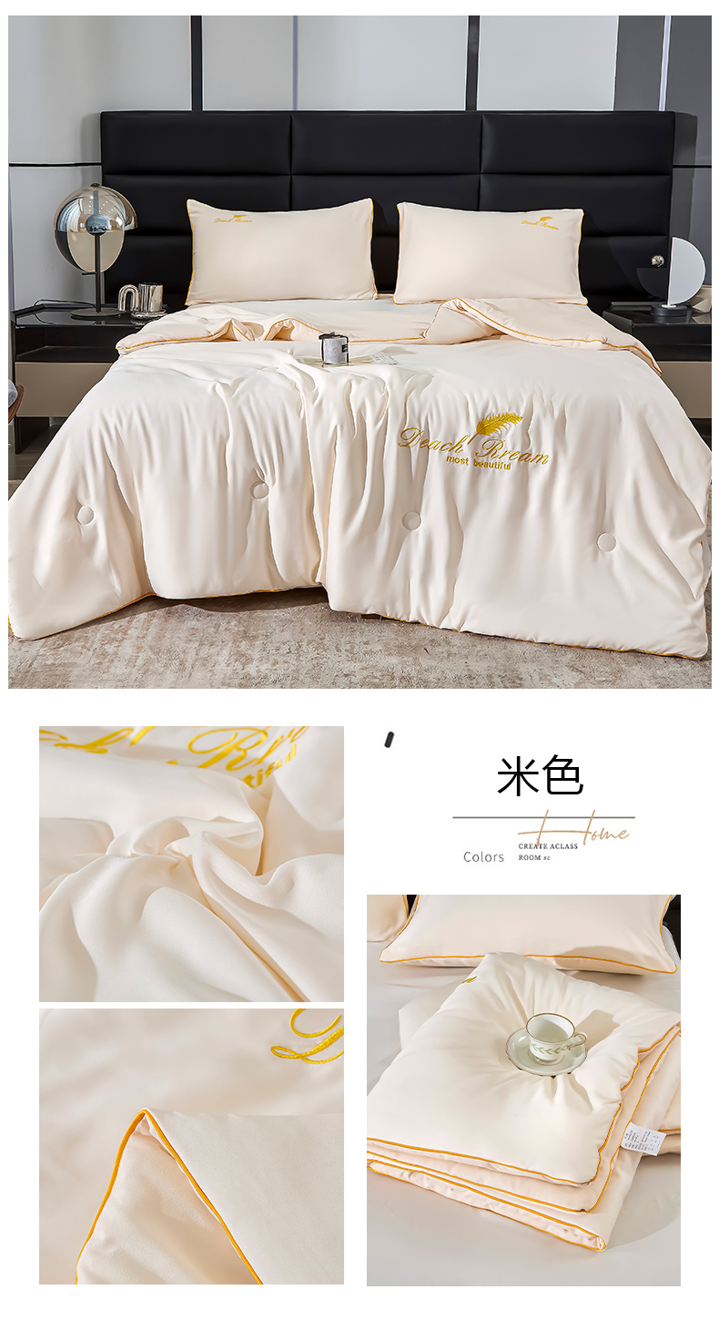 • 91家纺网 家纺一手货源 找家纺 缦绣阁家纺 2025春夏新款水洗真丝刺绣夏被凉感丝夏被冰淇淋夏凉被空调被 米色