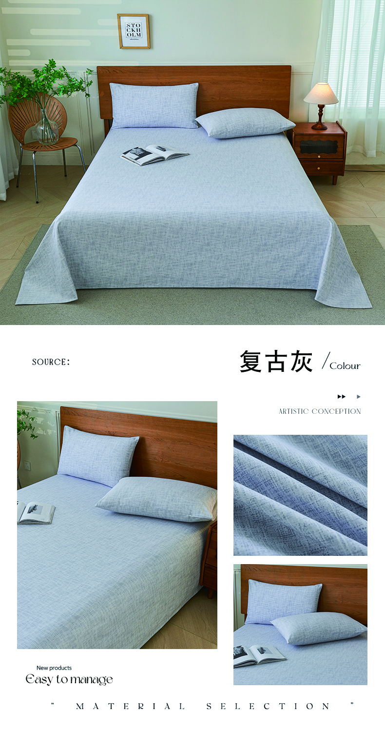义博家纺 2025新款纯棉老粗布床单 复古灰