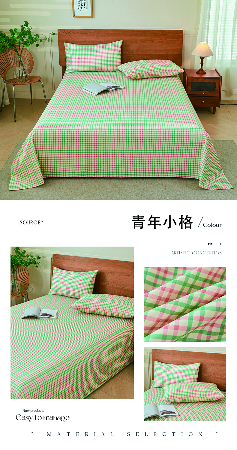 义博家纺 2025新款纯棉老粗布床单 青年小格