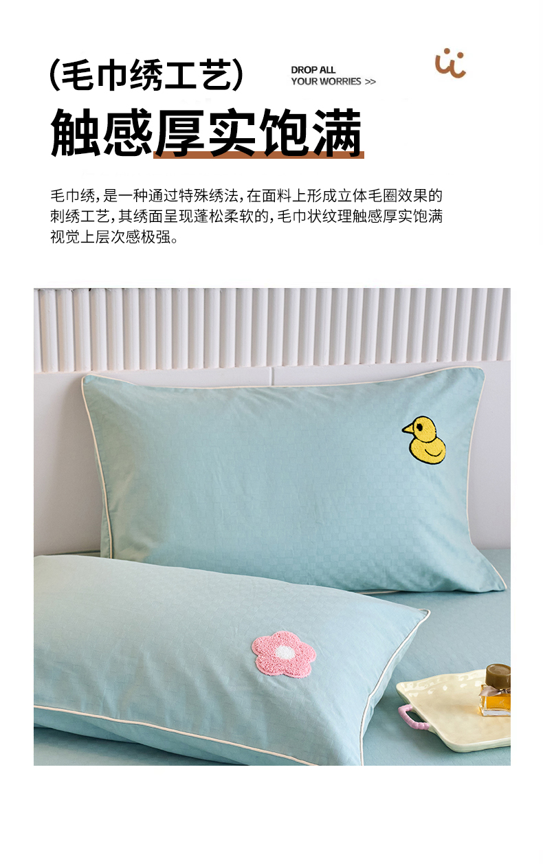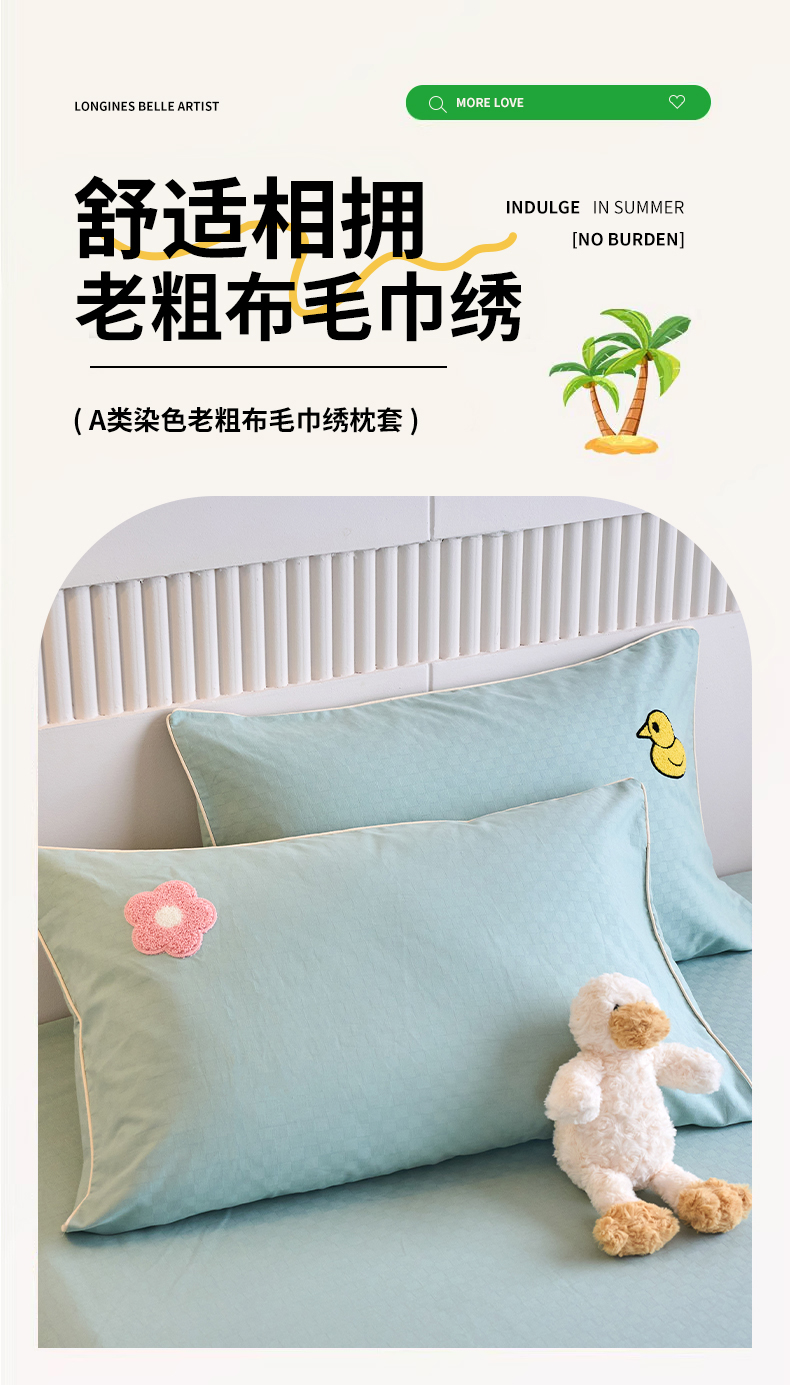商品名称:春皖家纺 2025新款全棉纯棉提花粗布毛巾绣单枕套 枕套单件-风格二 叠叠熊-绿