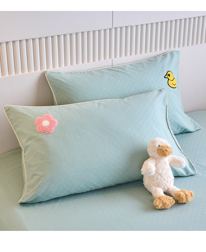 春皖家纺 2025新款全棉纯棉提花粗布毛巾绣单枕套 枕套单件-风格二 叠叠熊-绿