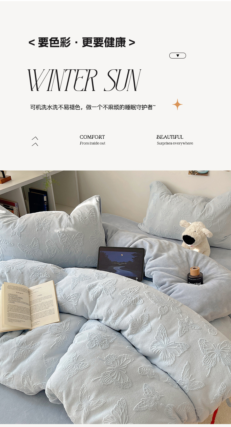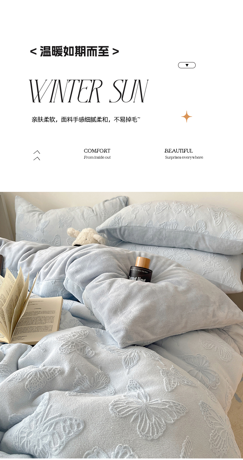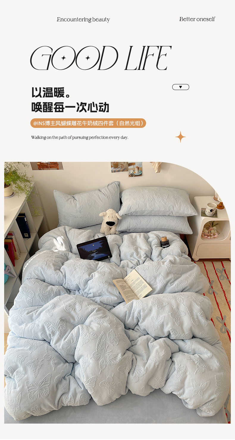 当前位置: 91家纺网 > 商品网购 > 床品套件 > 四件套 > 牛奶绒四件套 > 六巷胡同 2025新款INS博主风蝴蝶雕花A类牛奶绒四件套 雕花绒-蝴蝶蓝