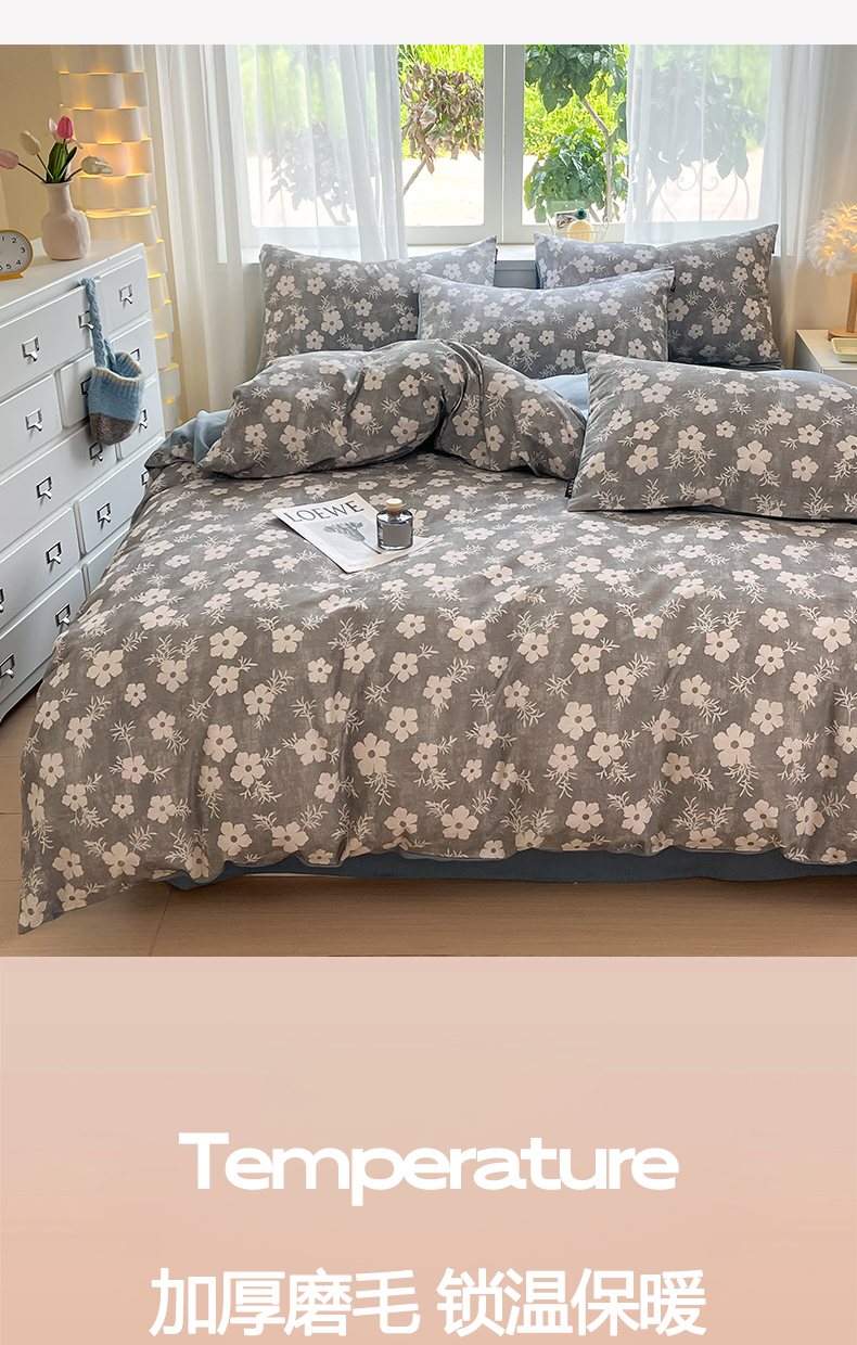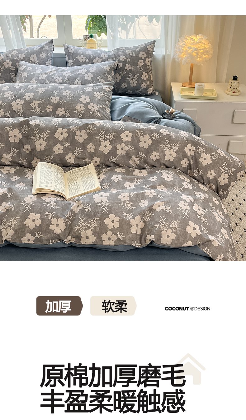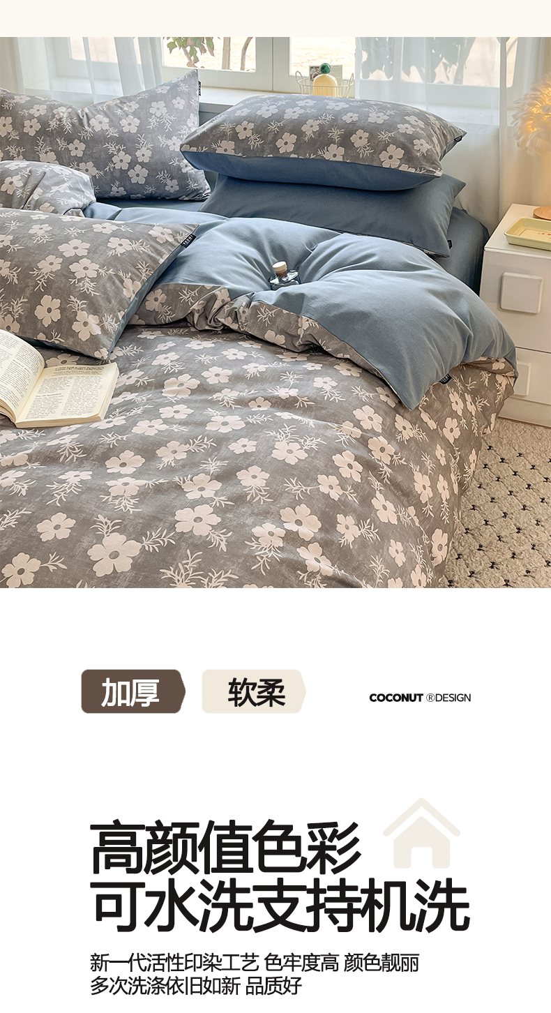 当前位置: 91家纺网 > 商品网购 > 床品套件 > 四件套 > 普通磨毛四件套 > 涵宸家纺 2025新款原棉加厚磨毛印花四件套 凝芳