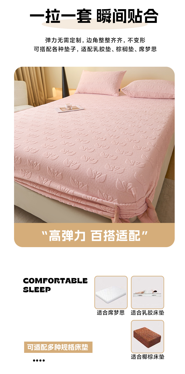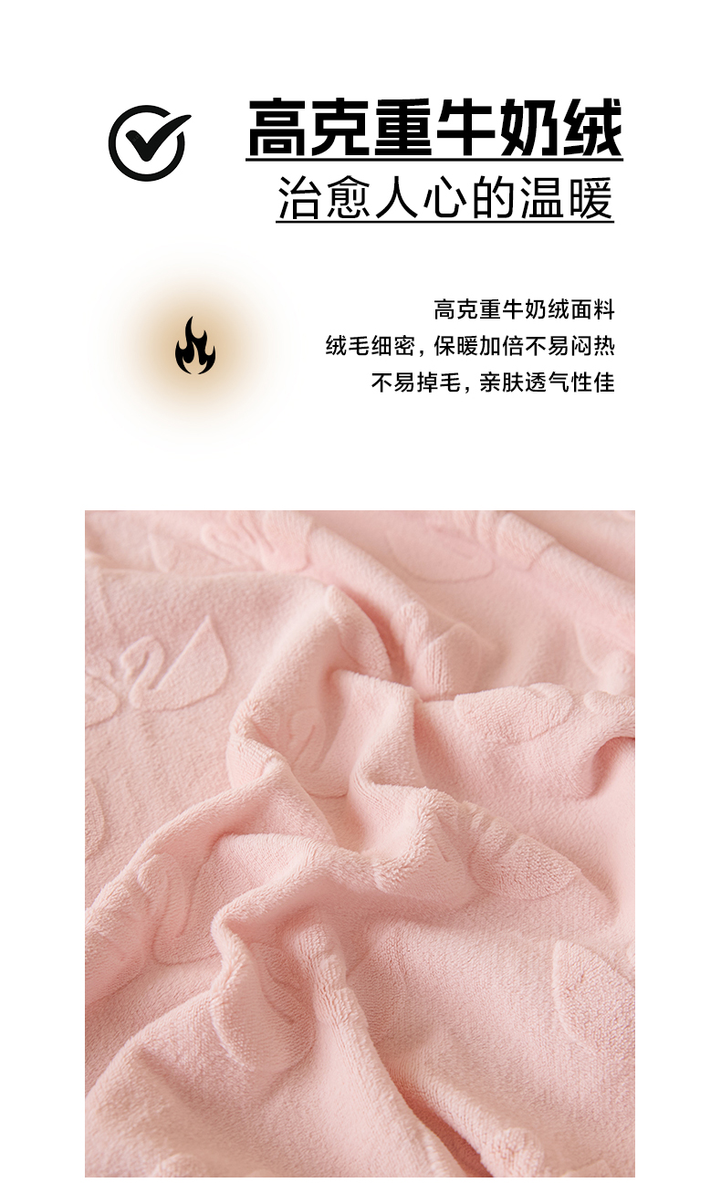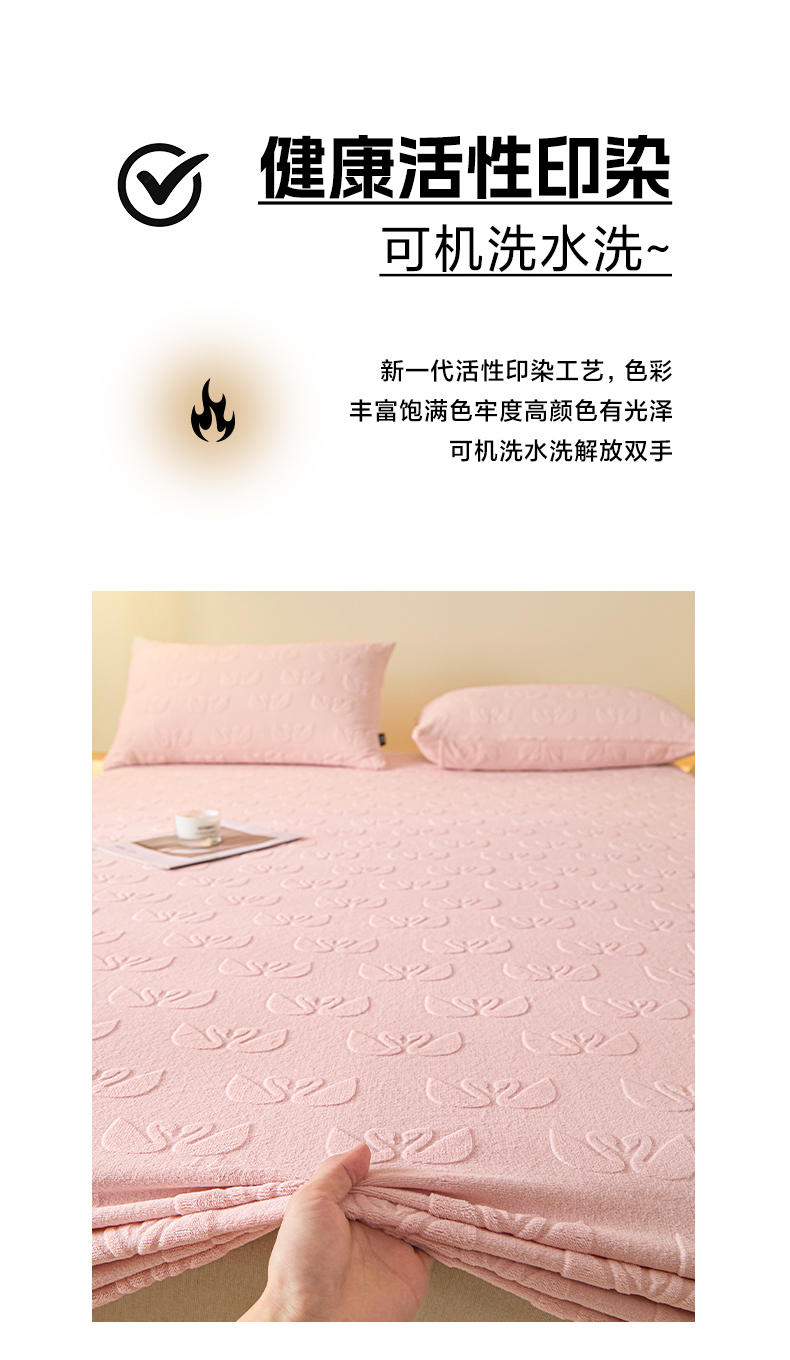 • 91家纺网 家纺一手货源 找家纺 乐美家纺 2025新款A类高克重牛奶绒雕花床笠三件套 天鹅湖畔(粉)