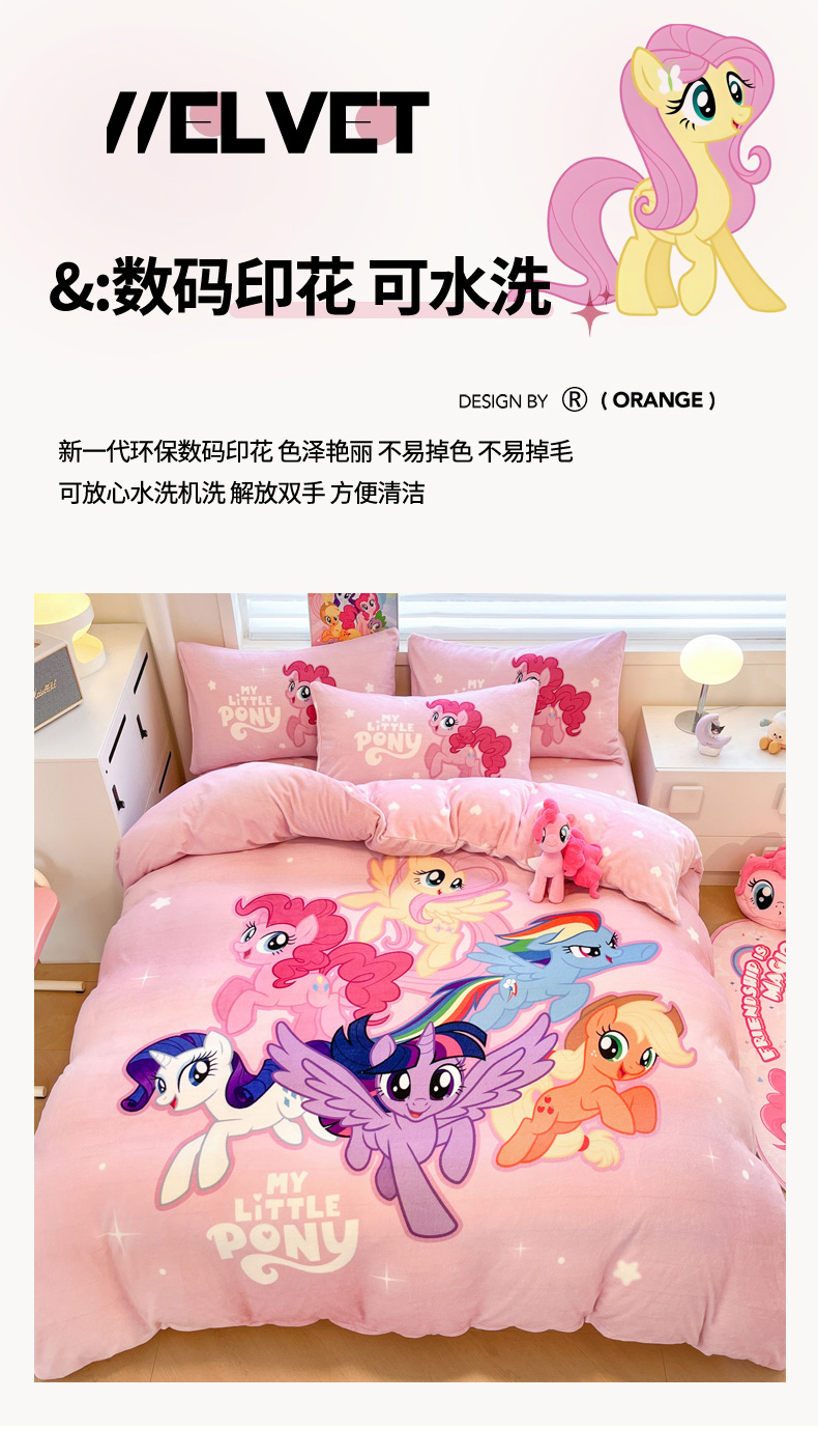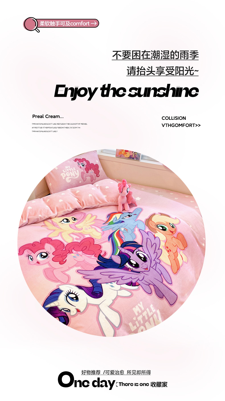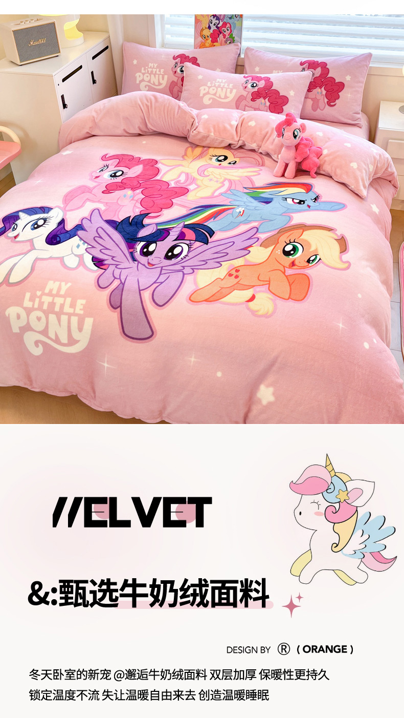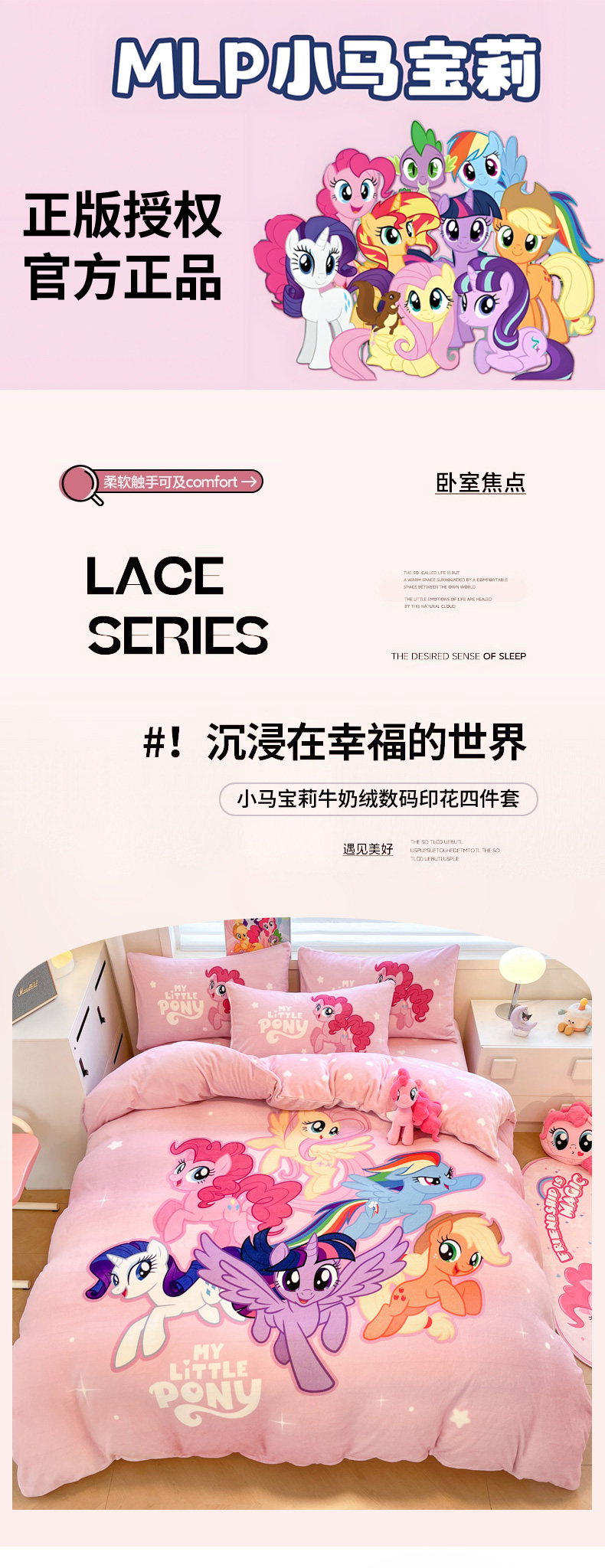 当前位置: 91家纺网 > 商品网购 > 床品套件 > 四件套 > 牛奶绒四件套 > 暮思家居 2025新款正版授权小马宝莉大阪数码印花高克重加厚保暖牛奶绒四件套 绒大版-宝莉大家族
