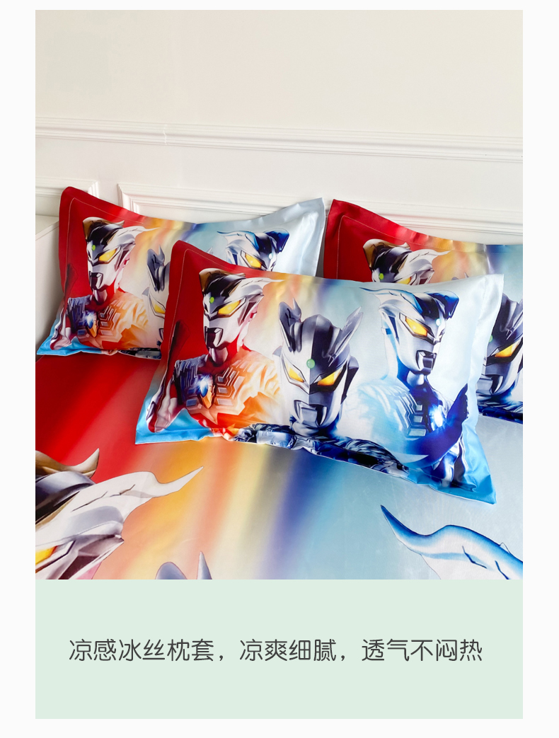 商品名称:一电 2025新款夏季卡通冰丝凉席床单床笠可水洗凉席床笠学生宿舍单人裸睡空调席子冰丝席枕套 奥特家族