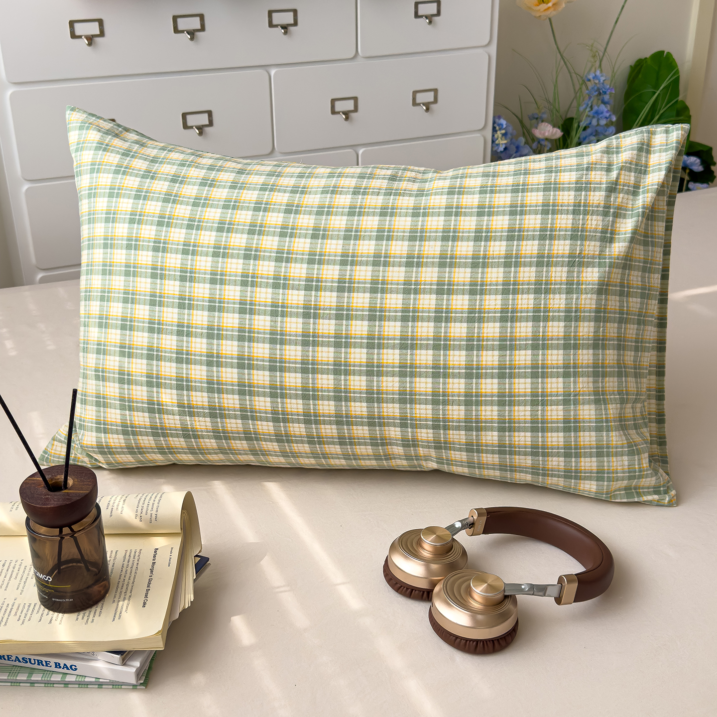 对白 2025新款全棉色织水洗棉单品枕套 森林绿格