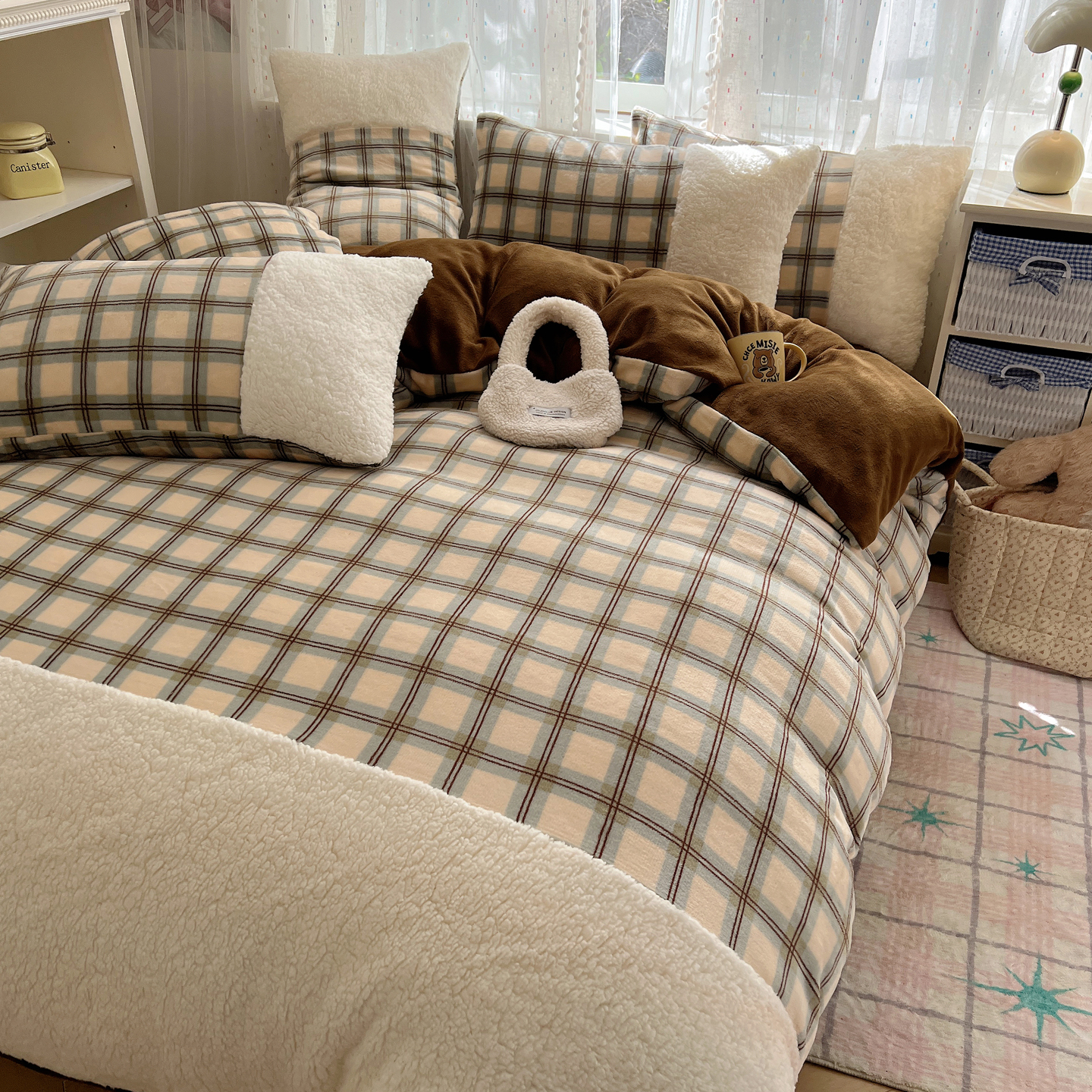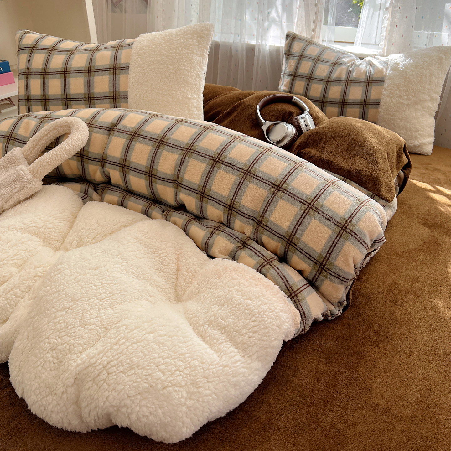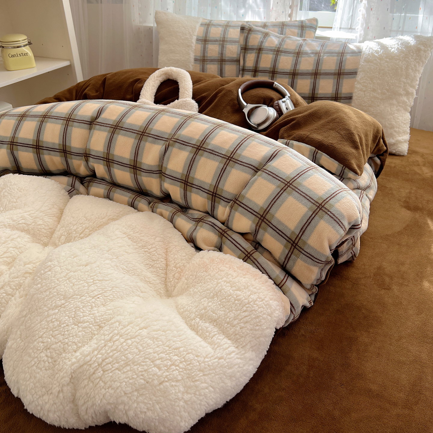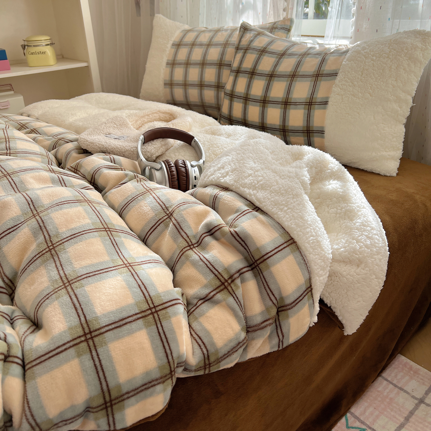 顾里家纺 2025新款复古博主风高克重羊羔毛拼接牛奶绒套件 松露奶昔