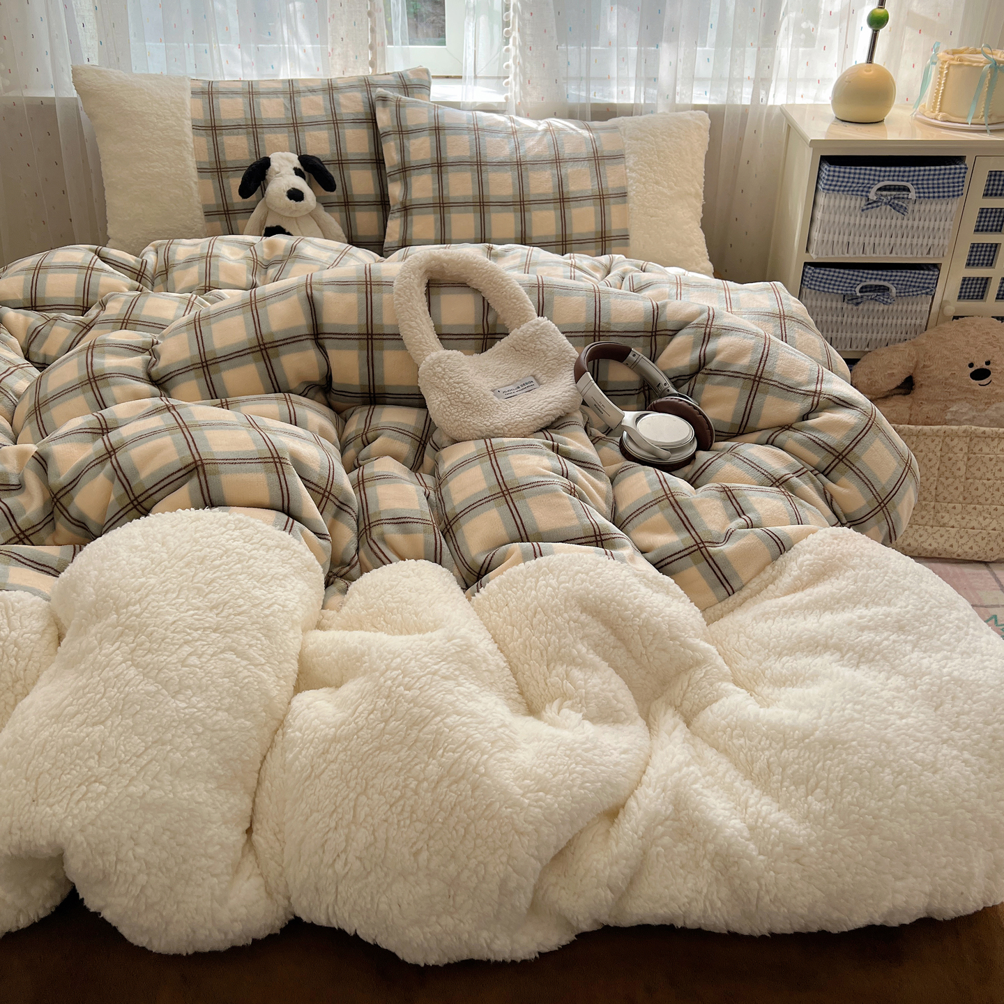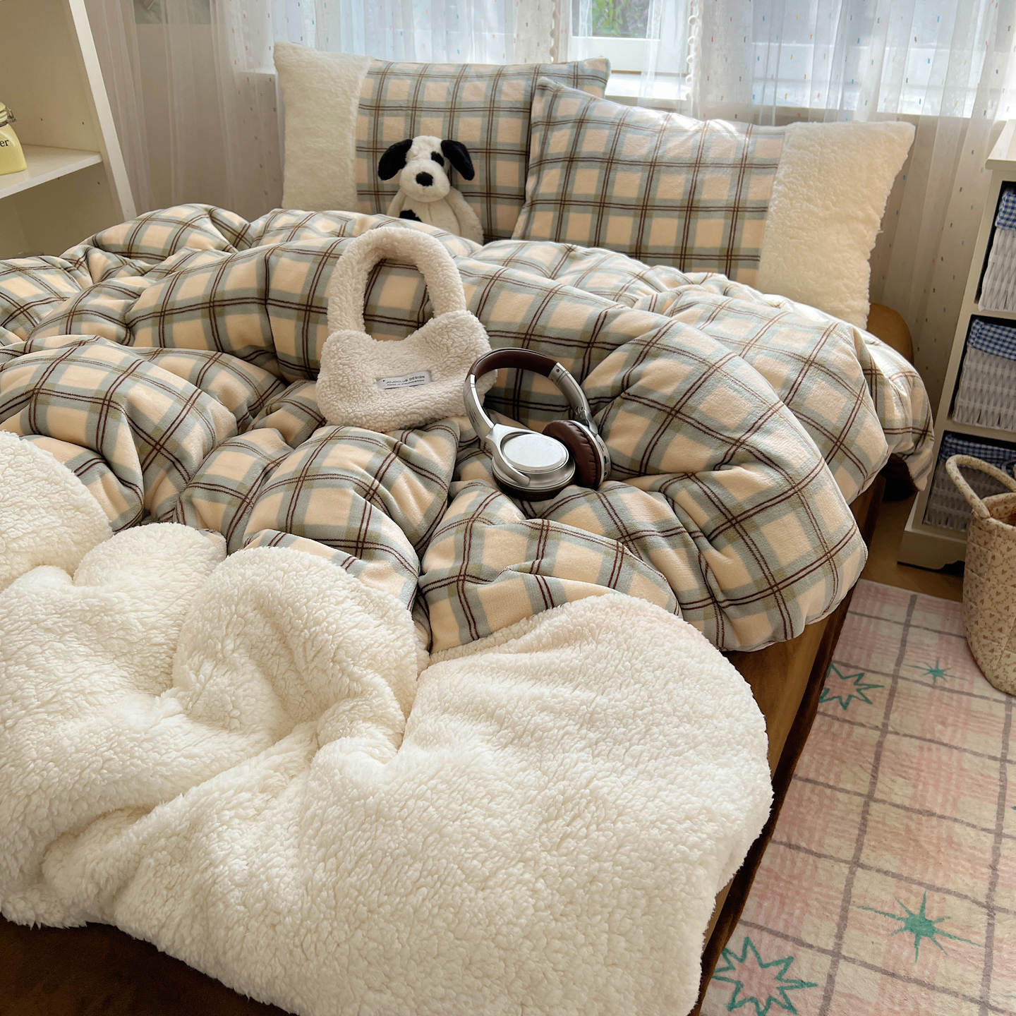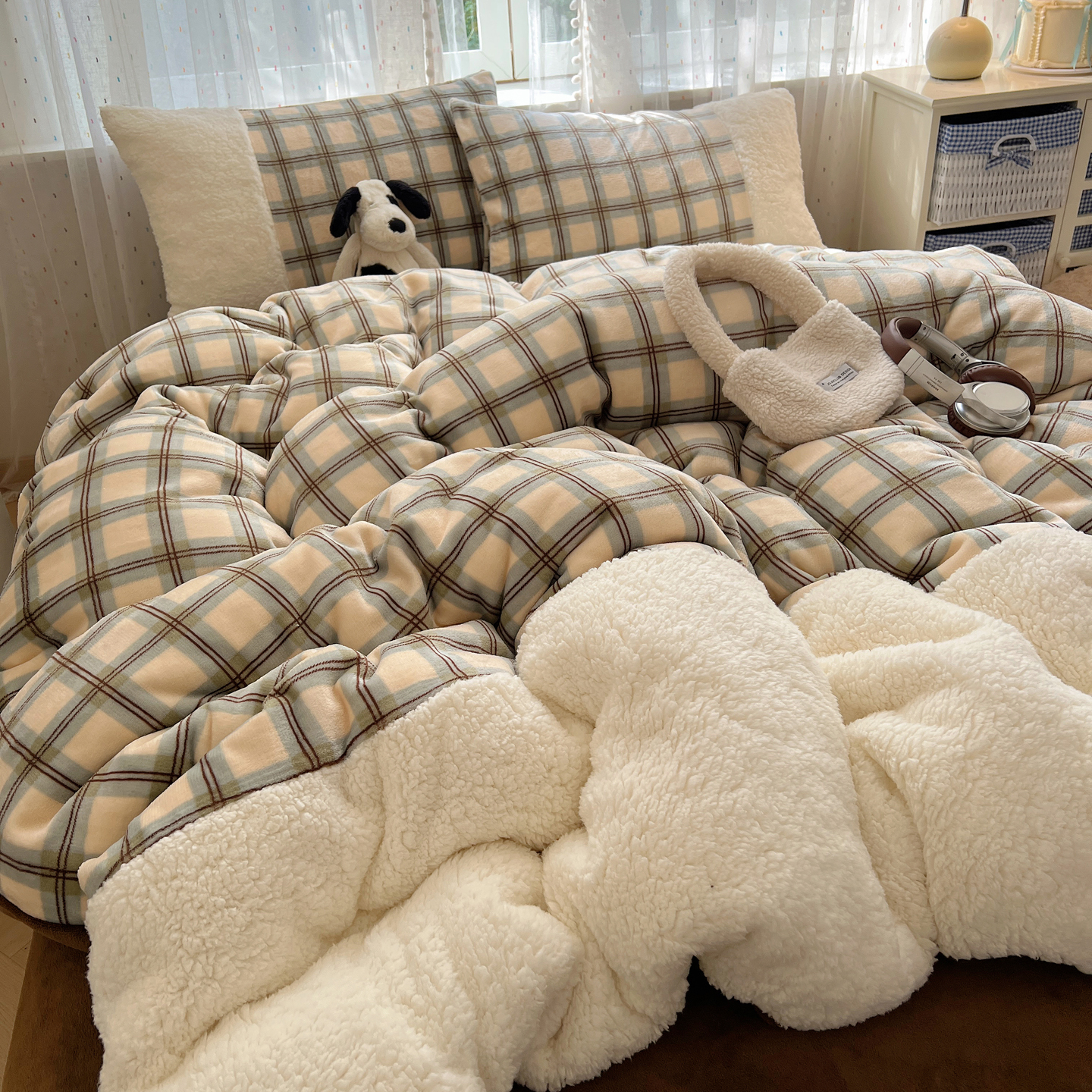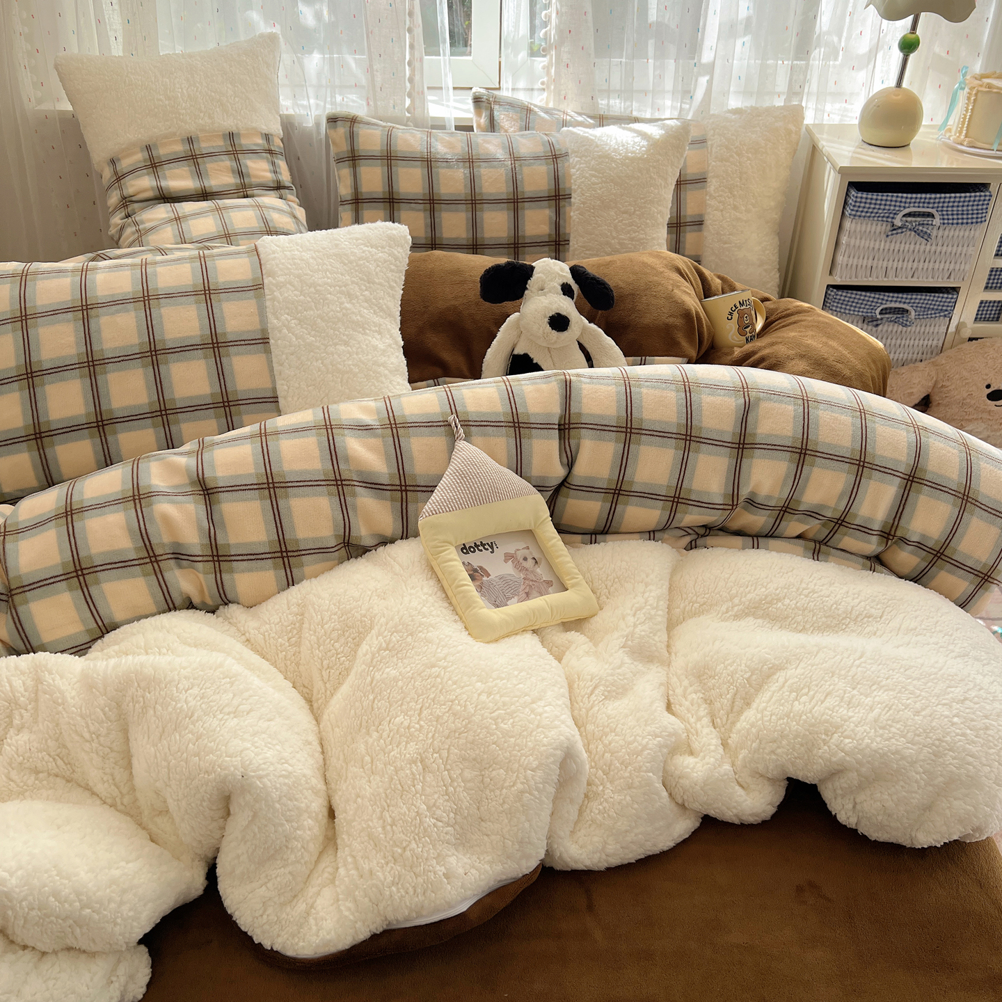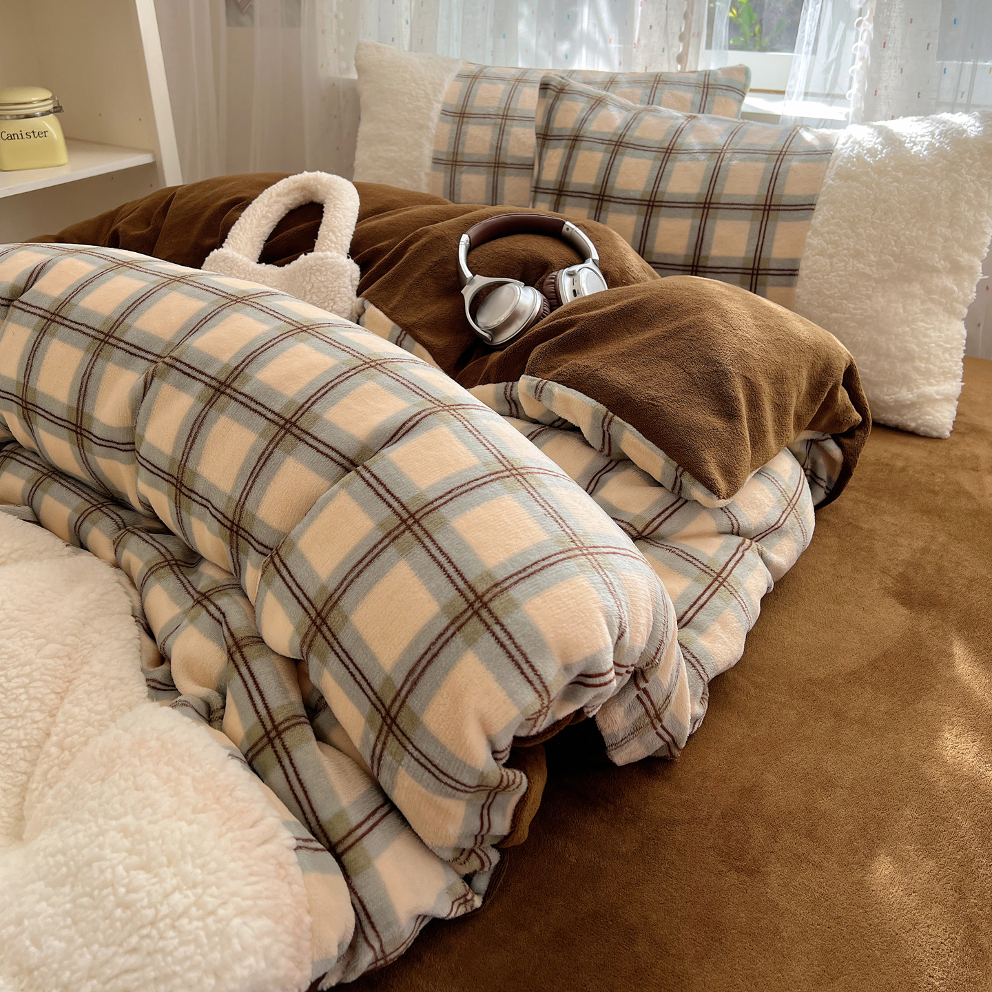 顾里家纺 2025新款复古博主风高克重羊羔毛拼接牛奶绒套件 松露奶昔