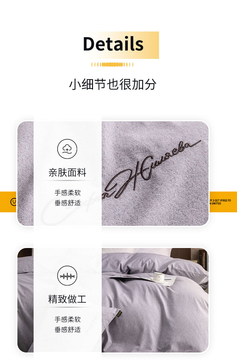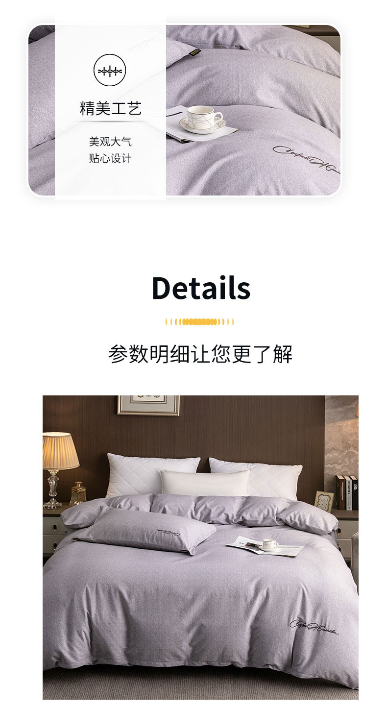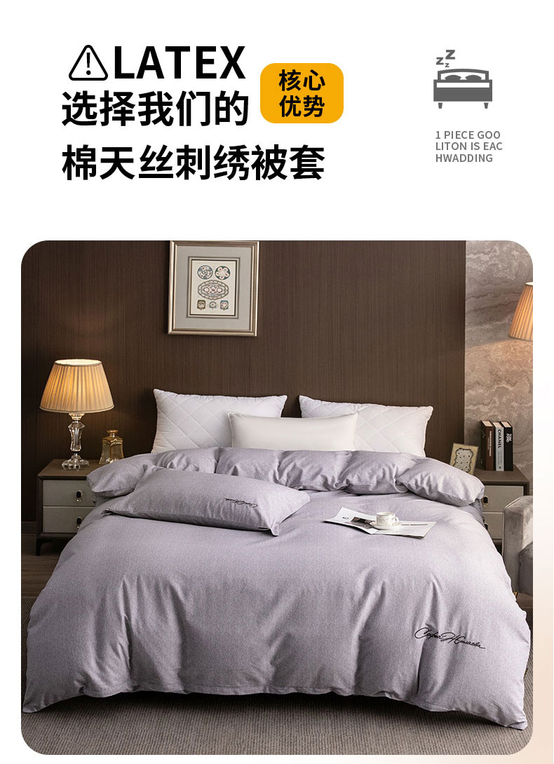 商品名称:春皖家纺 2025新款棉天丝纯色刺绣四件套单品系列-单被套 钛绮灰