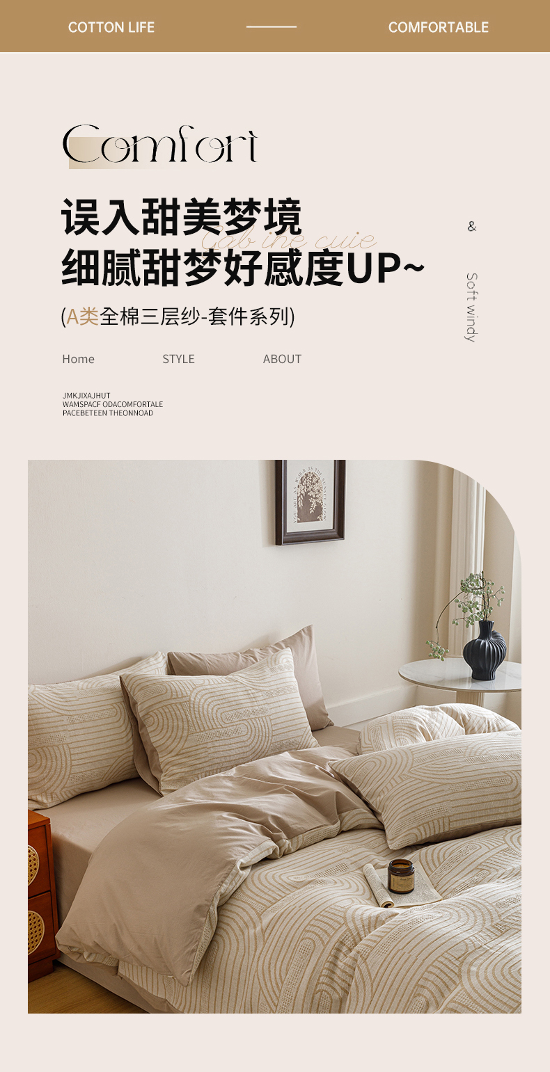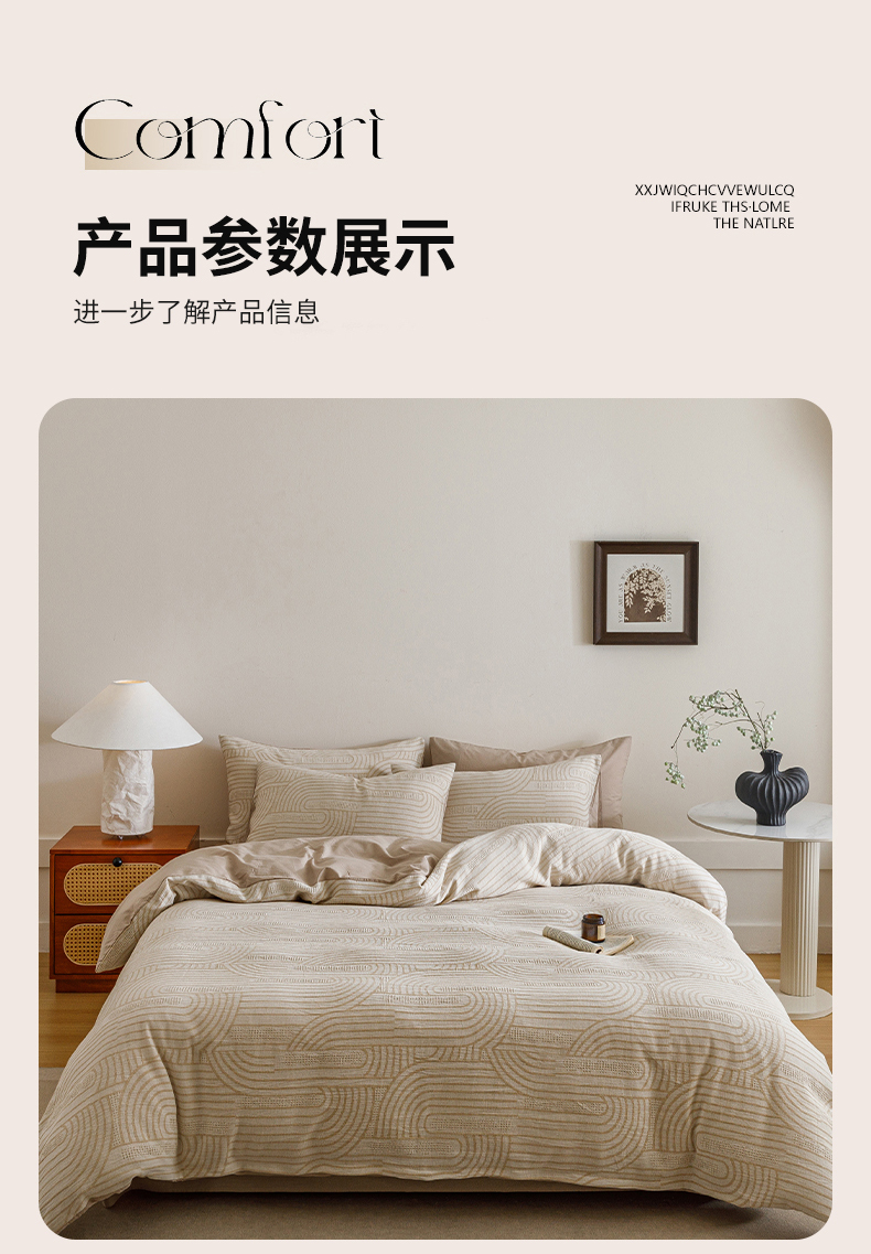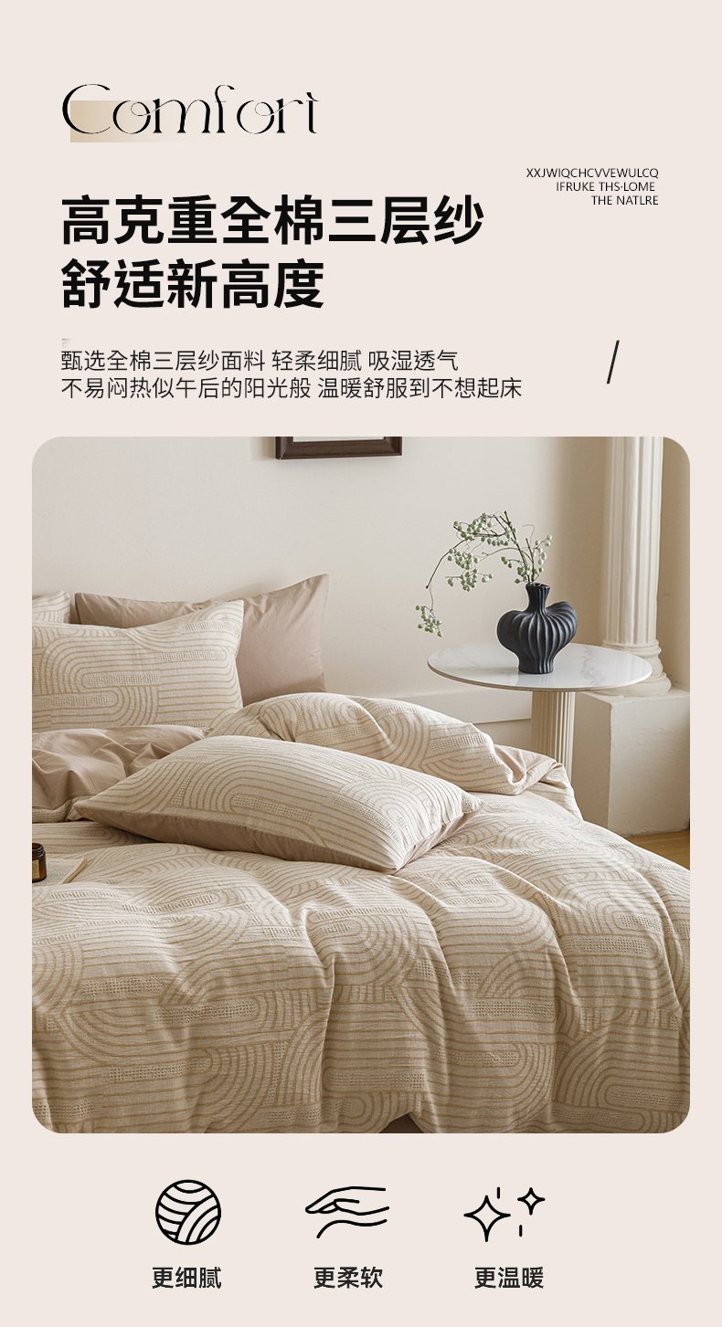 商品名称:春皖家纺 2026新款A类全棉双层纱AB版简约四件套 瑞拉-咖