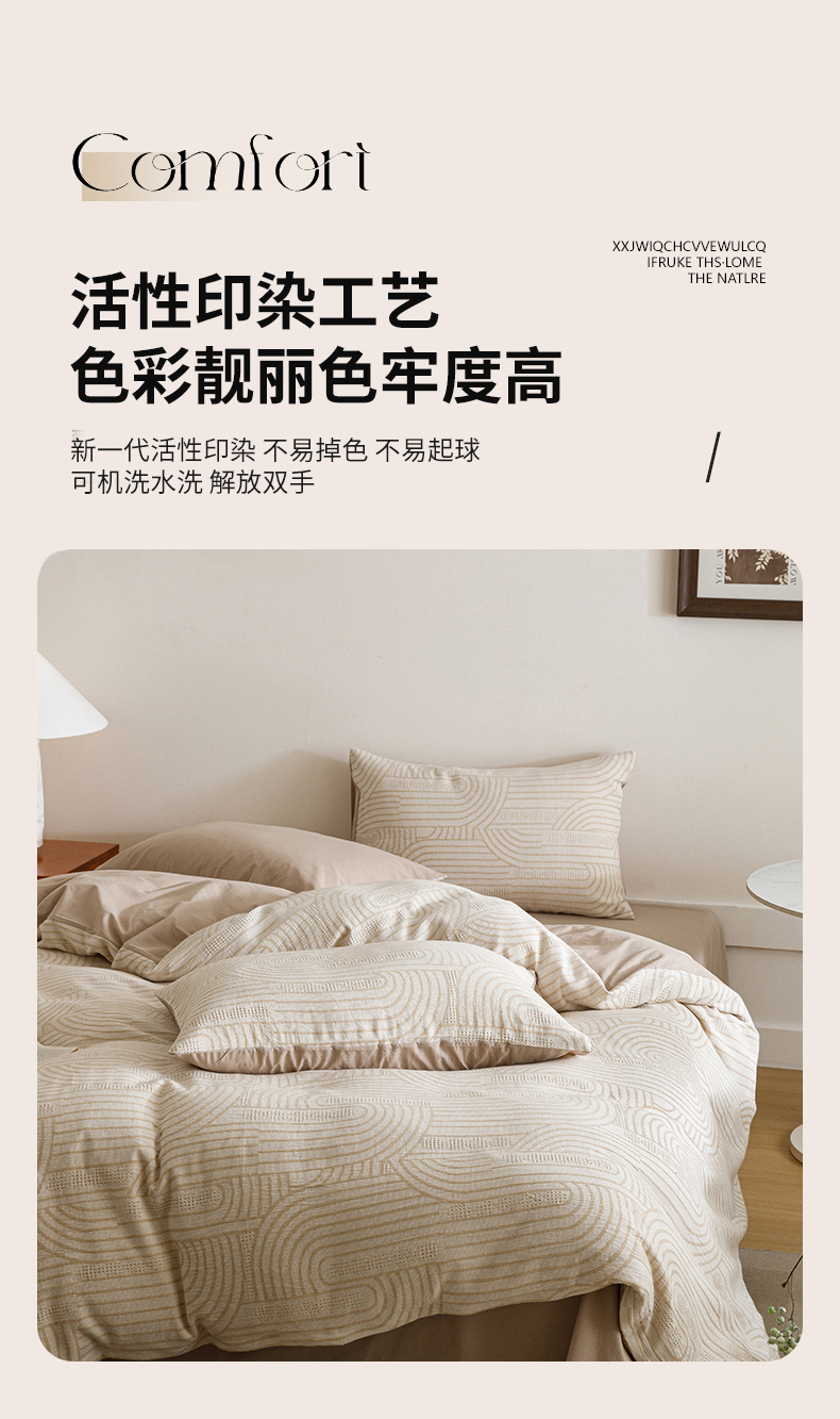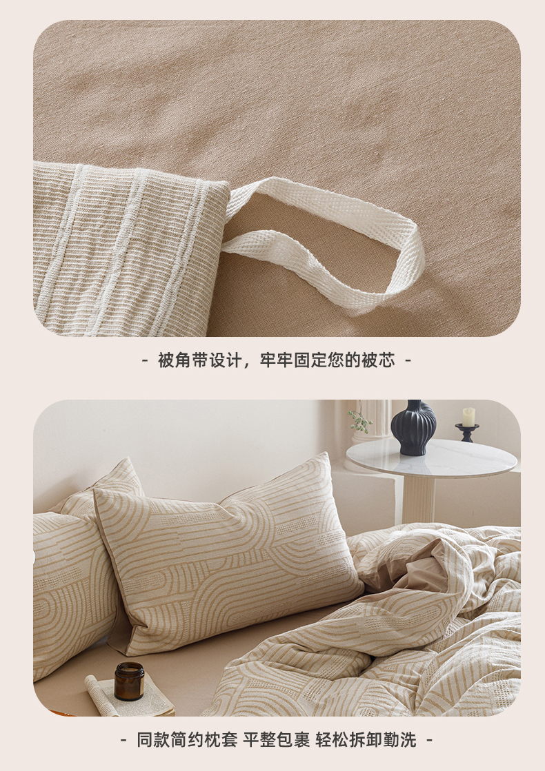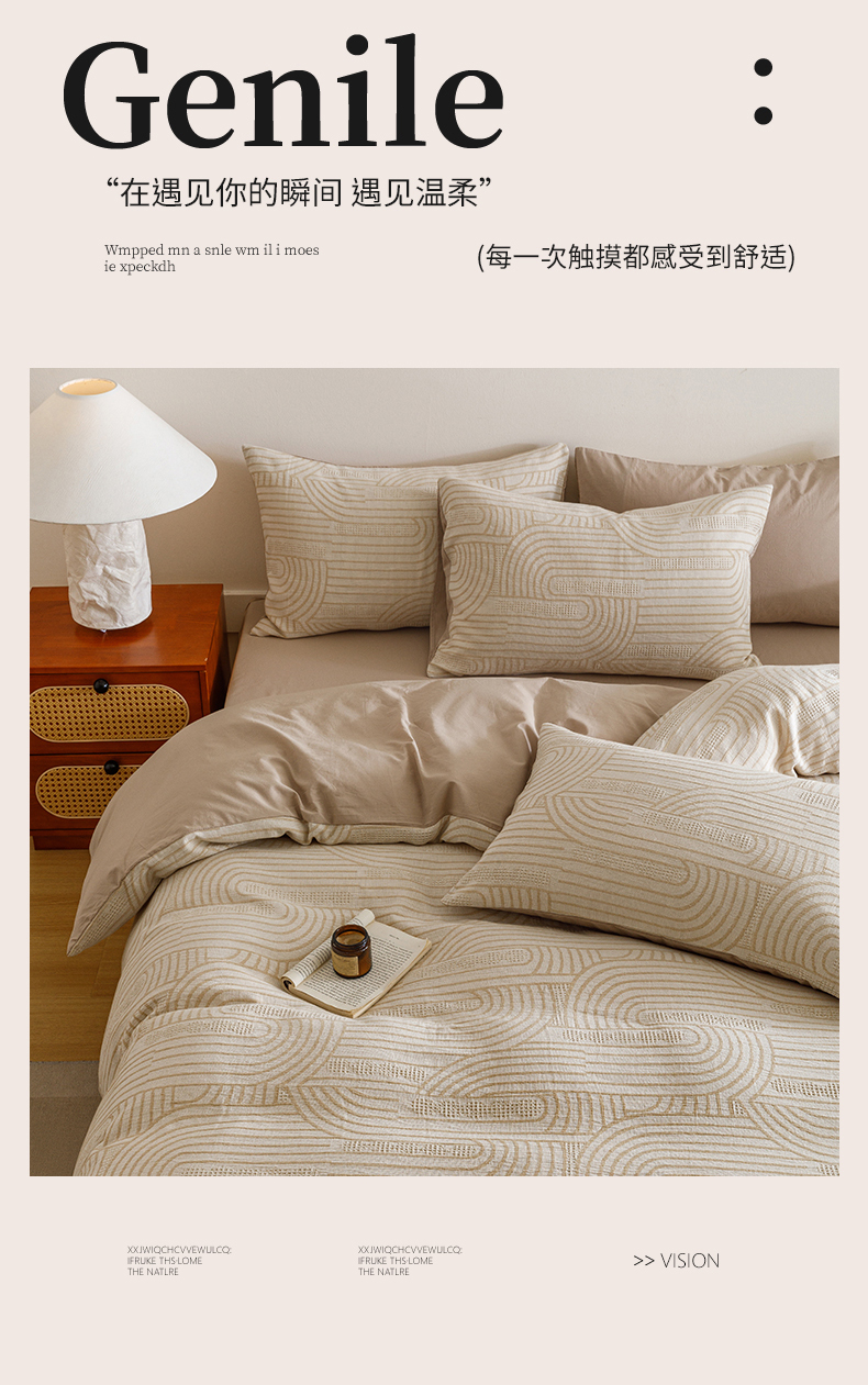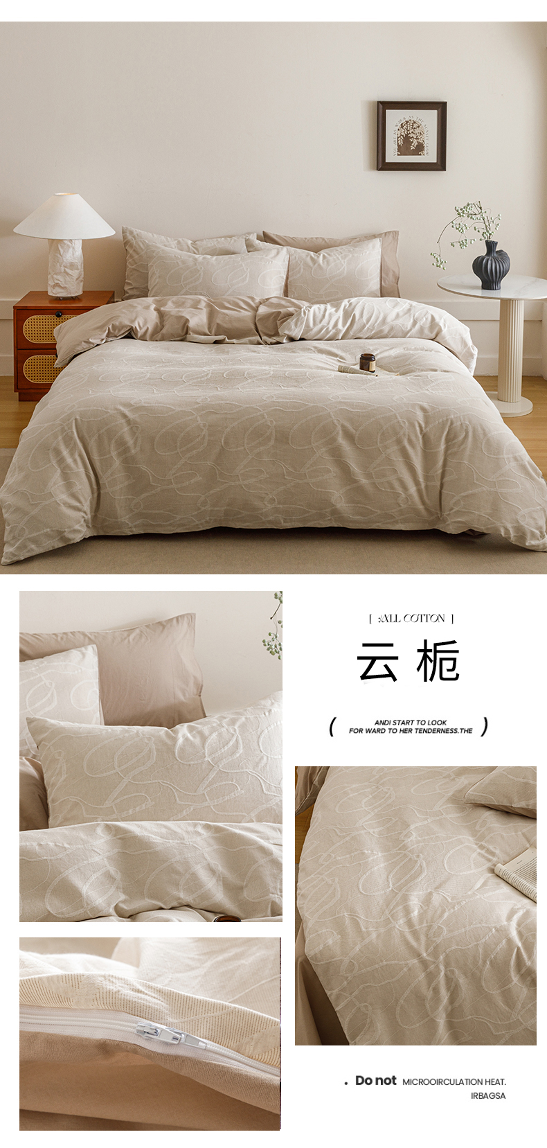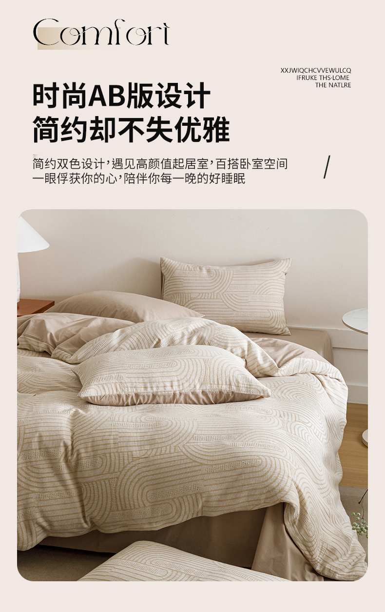 春皖家纺 2026新款A类全棉双层纱AB版简约四件套 瑞拉-咖