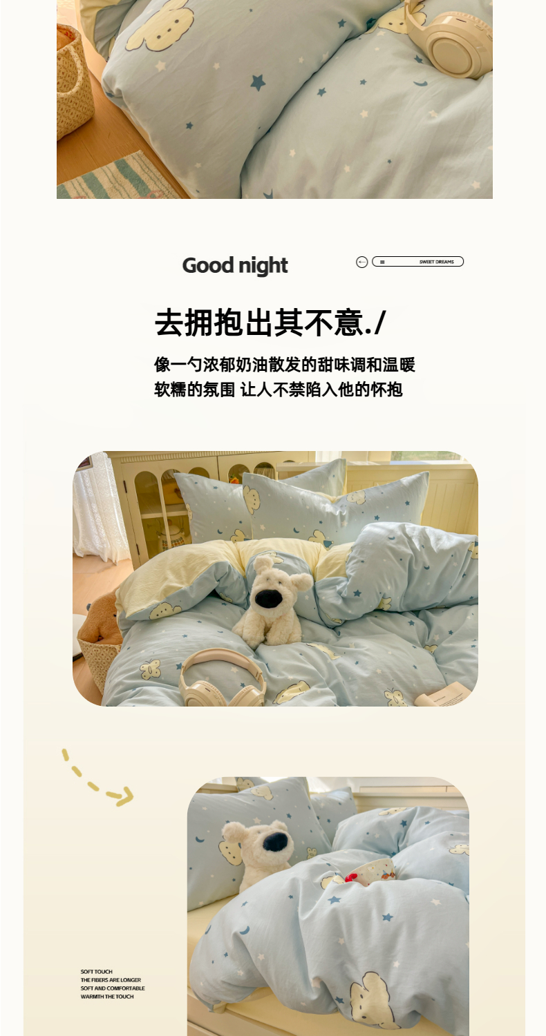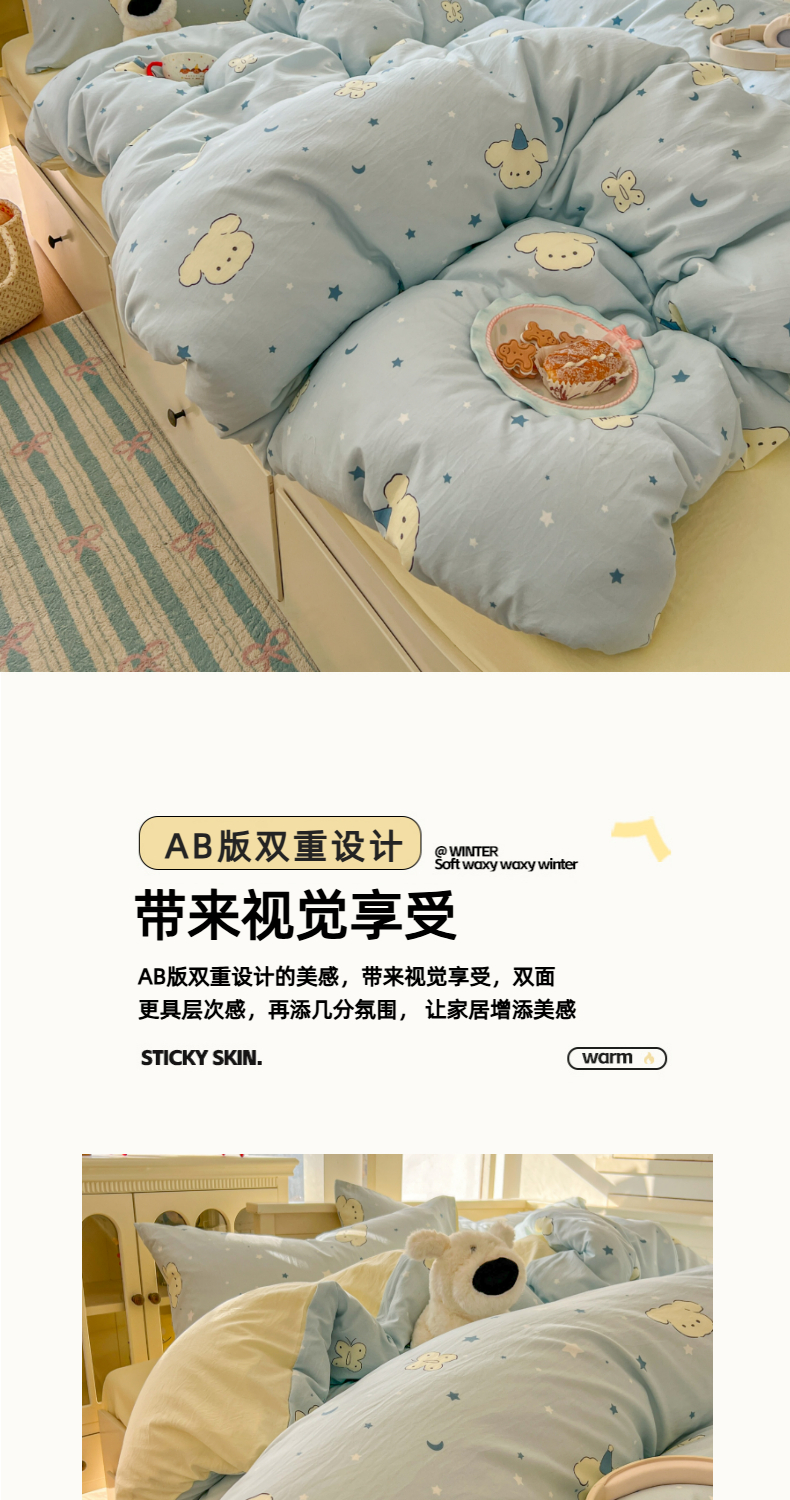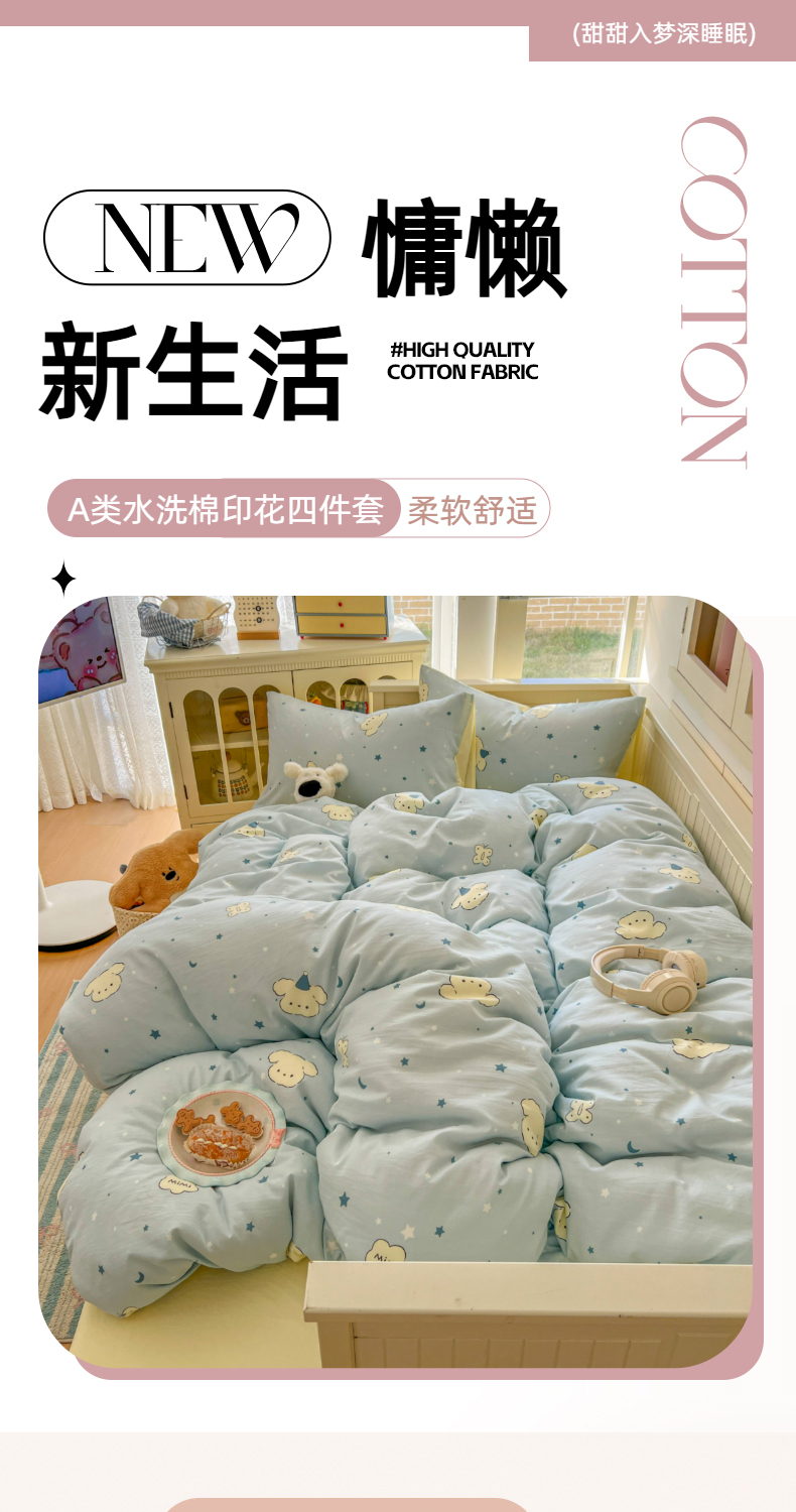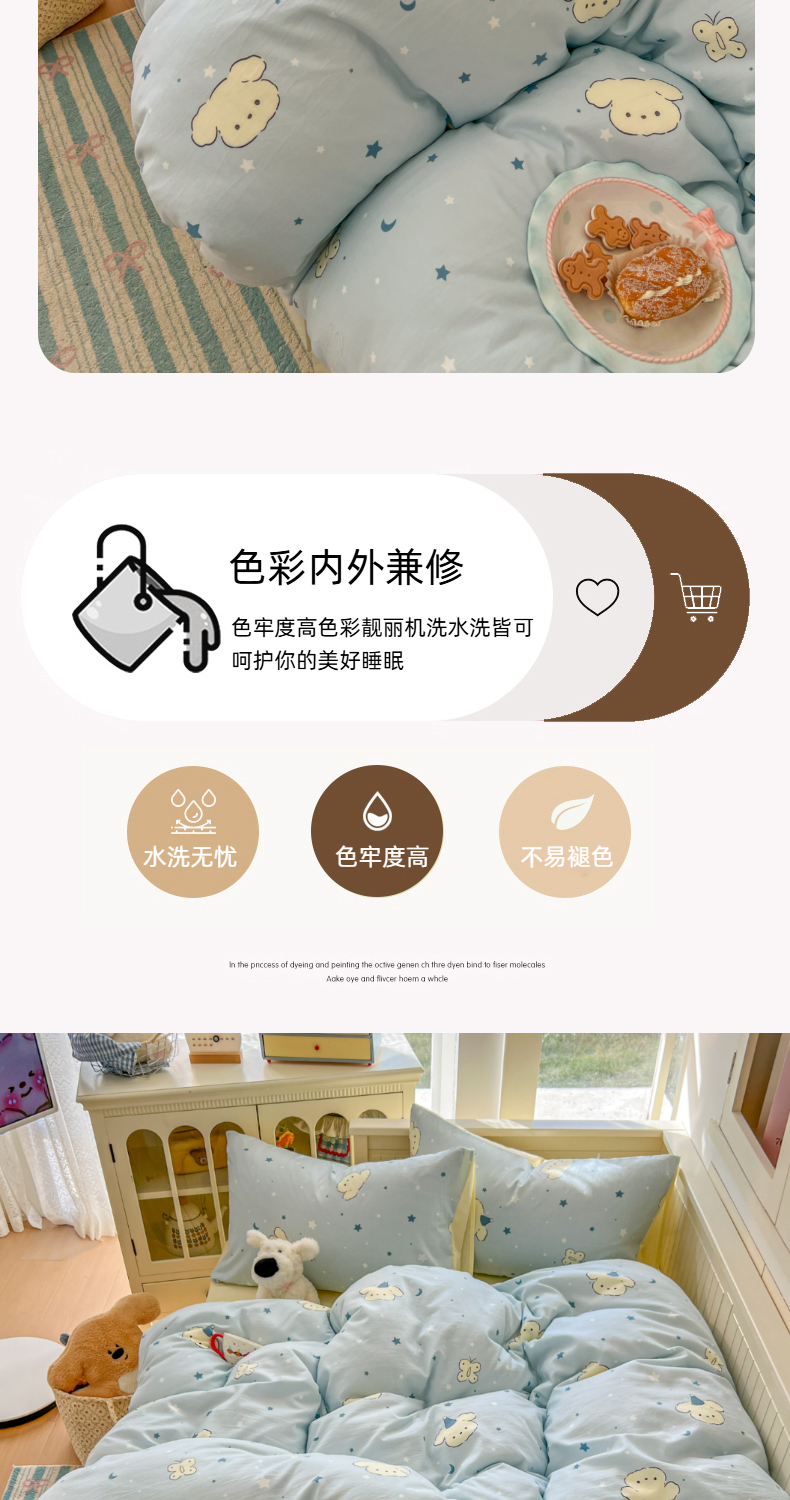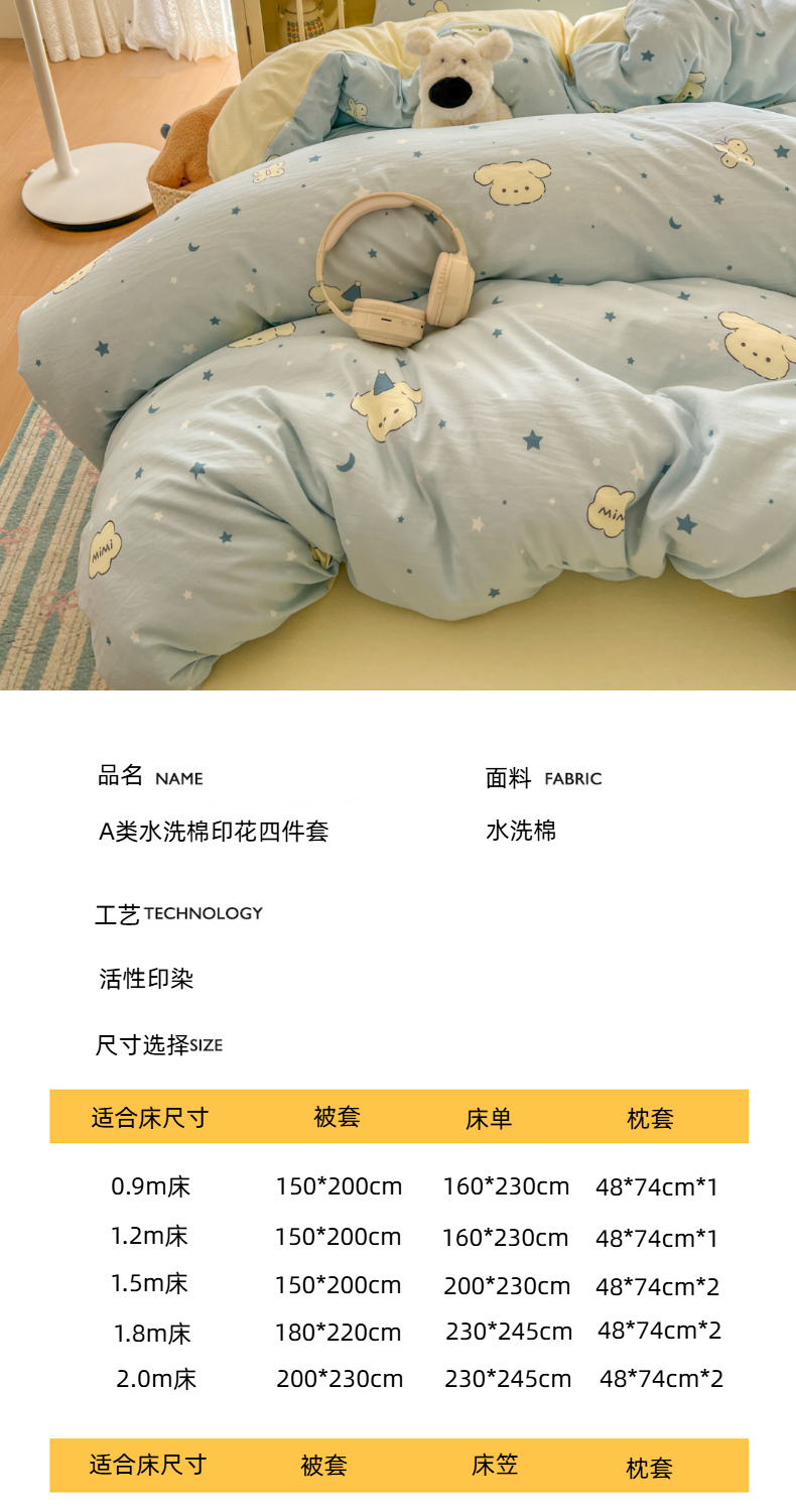 当前位置: 91家纺网 > 商品网购 > 床品套件 > 四件套 > 水洗棉四件套 > 冕悠家纺 2026新款超柔软105克卡通水洗棉四件套 提供买家秀 星月小狗