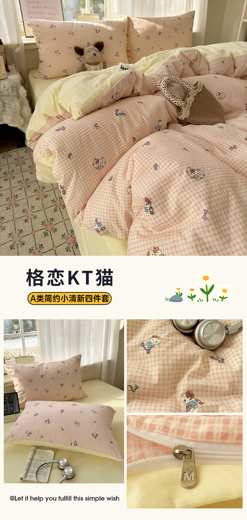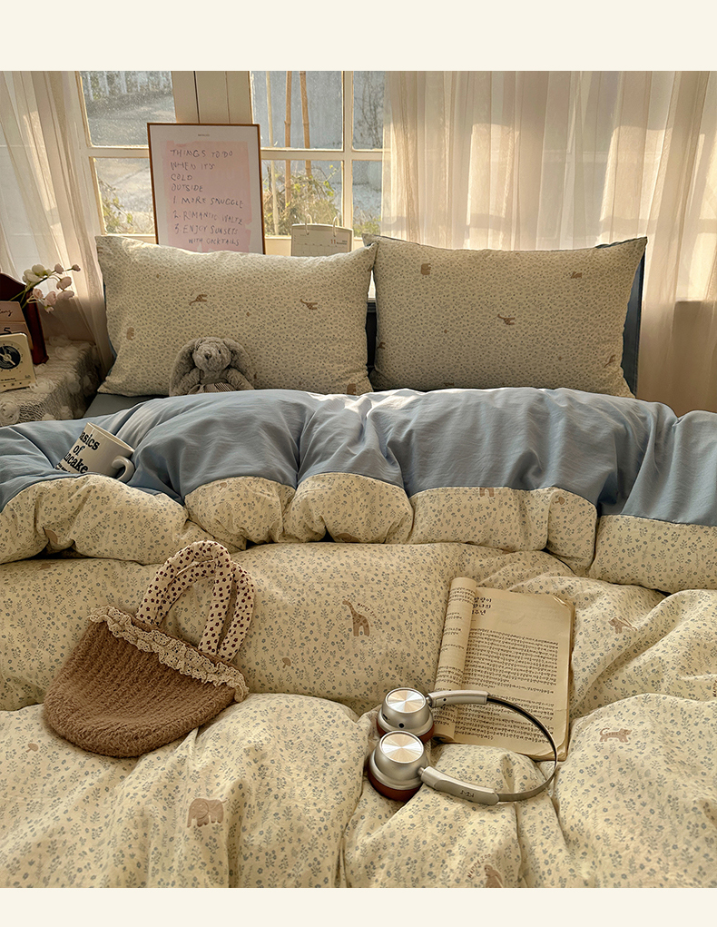 (总)初夏家纺 2026 古法仿棉水洗棉A类四件套被罩床单三件套床上用品卡通可爱【提供买家秀】,蓝调序曲,豹纹音乐,波点汪语,草莓啵啵,花屿庄园,灰度情书,家园,假日萌犬,猫咪甜点屋,毛绒熊仔,萌犬游记,暖意小熊,甜心紫熊,兔耳朵,樱桃物语,雨沫