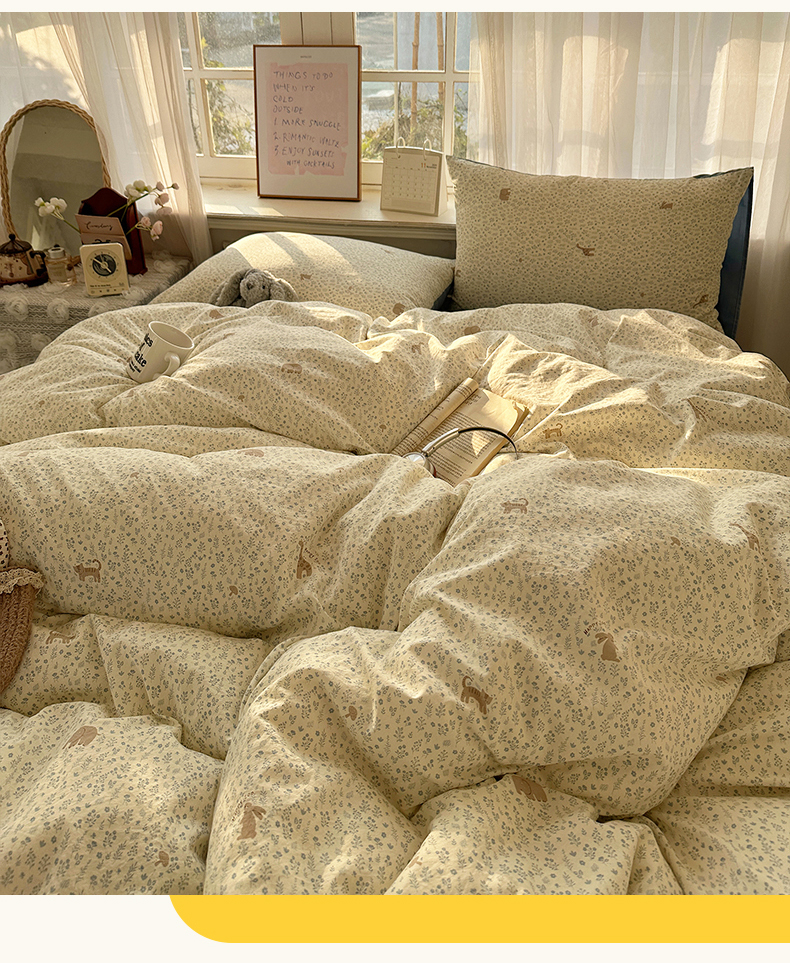 (总)初夏家纺 2026 简约A类水洗棉四件套软糯床上用品被罩床单三件套---【提供买家秀】,海盐拿铁,繁花兔兔,爱情手礼,蛋糕熊熊,安妮的兔,兔野仙踪,汪星蓝町,紫色蝴蝶结