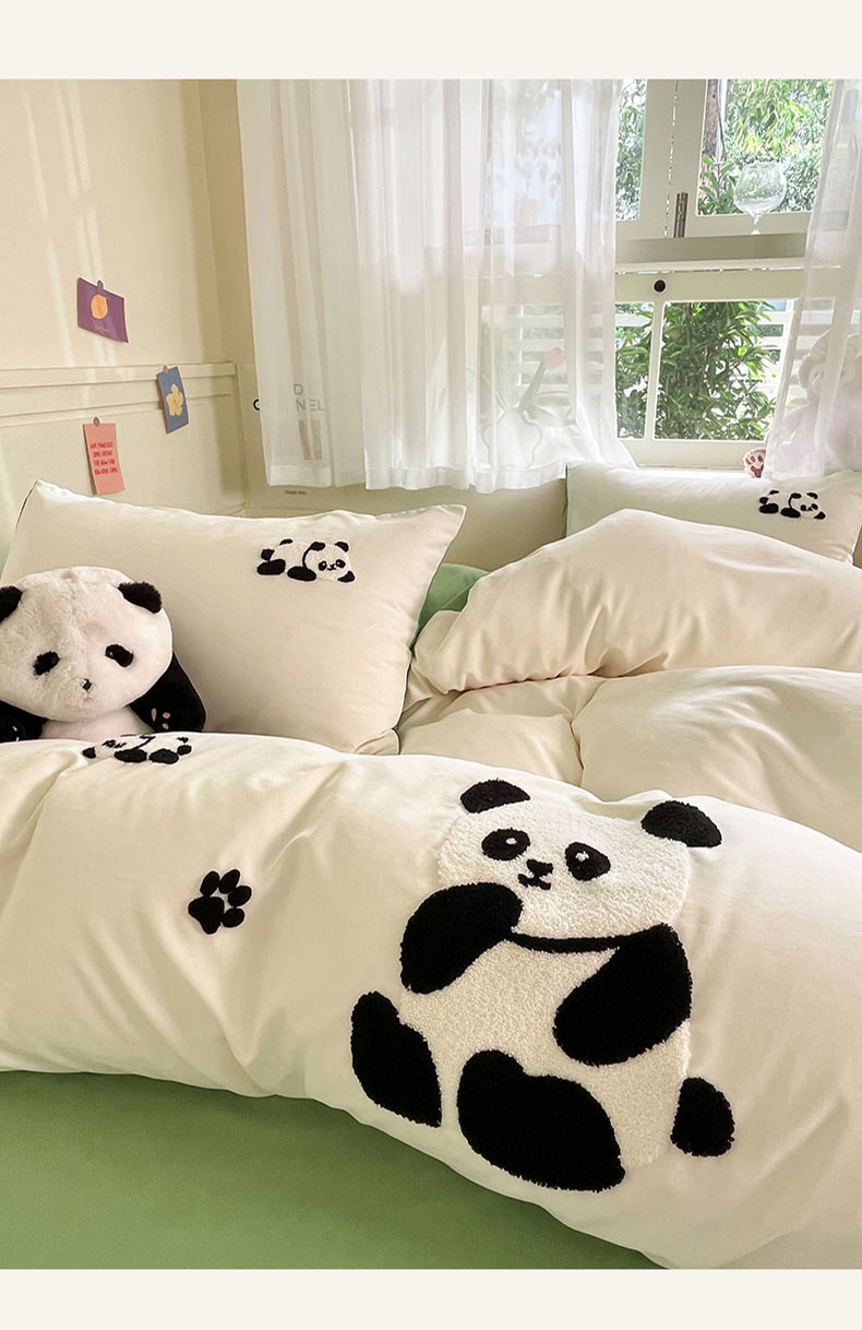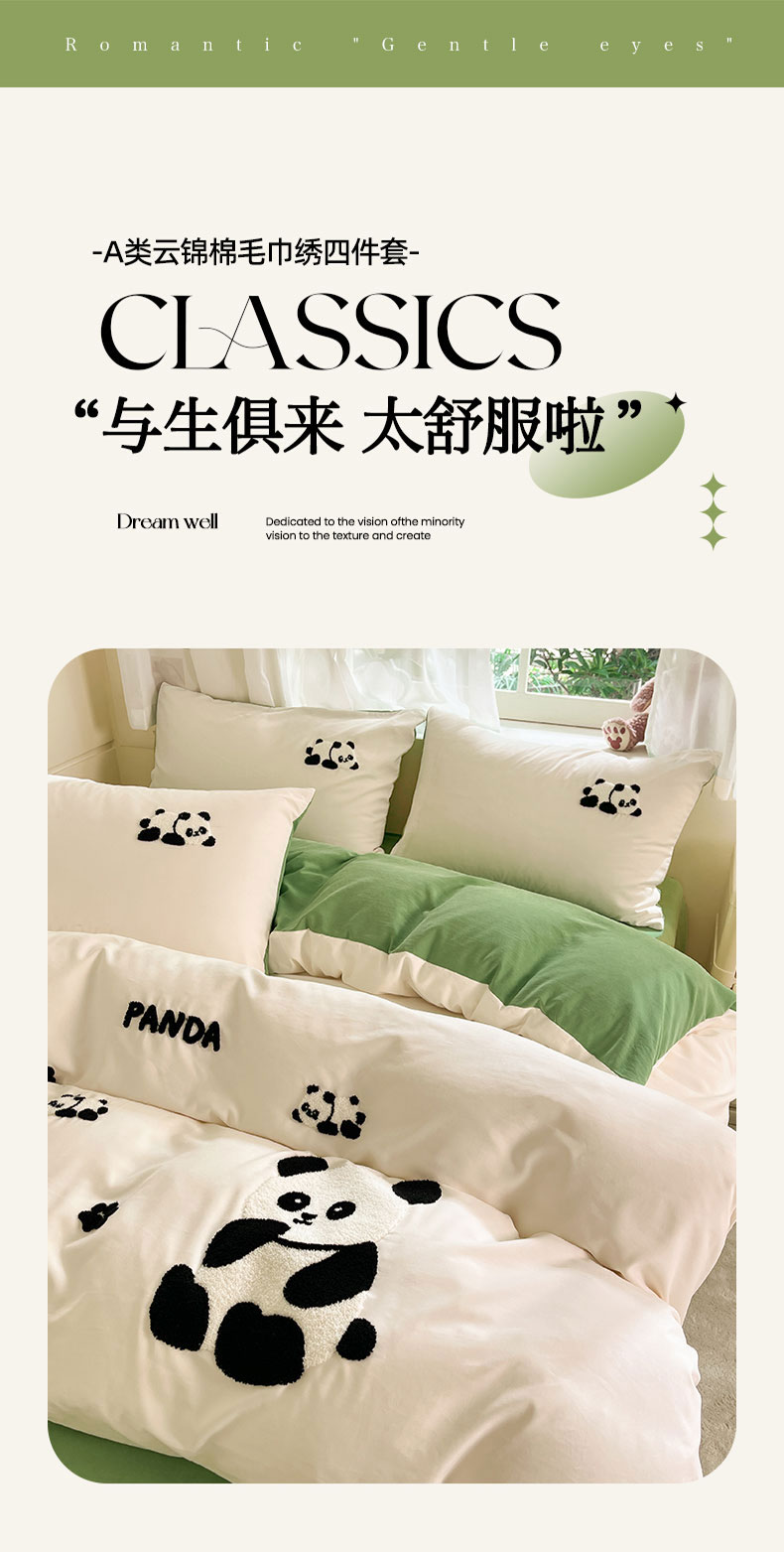 当前位置: 91家纺网 > 商品网购 > 床品套件 > 四件套 > 其它四件套 > 优卡迪家纺馆 2026新款A类云锦棉毛巾绣四件套下载文件包含买家秀 熊猫宝贝-白