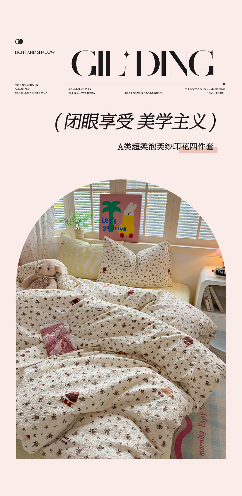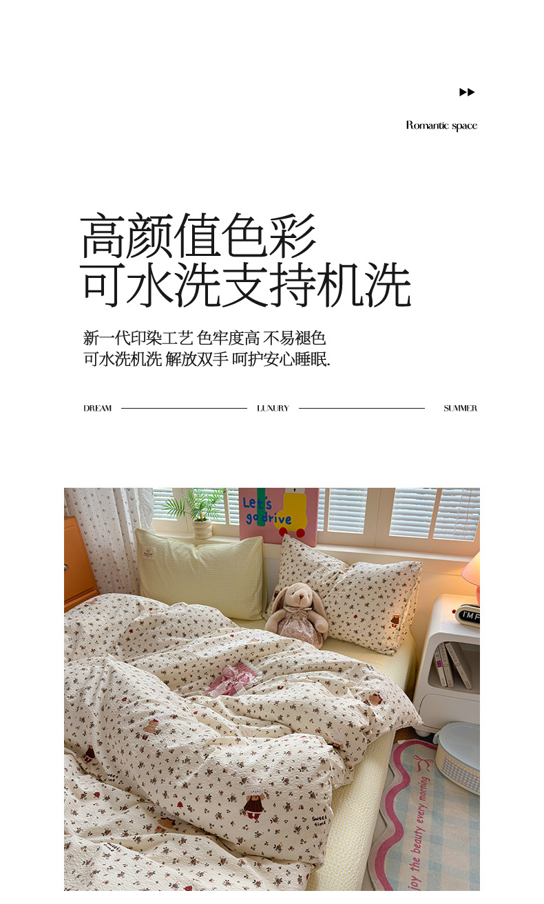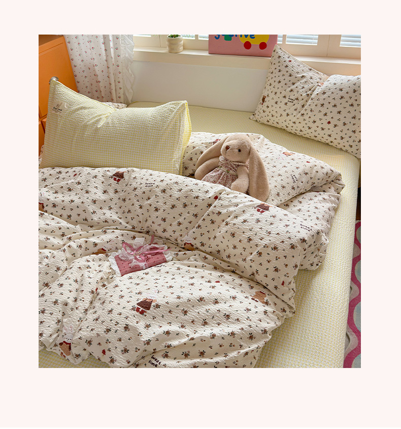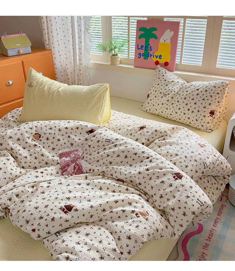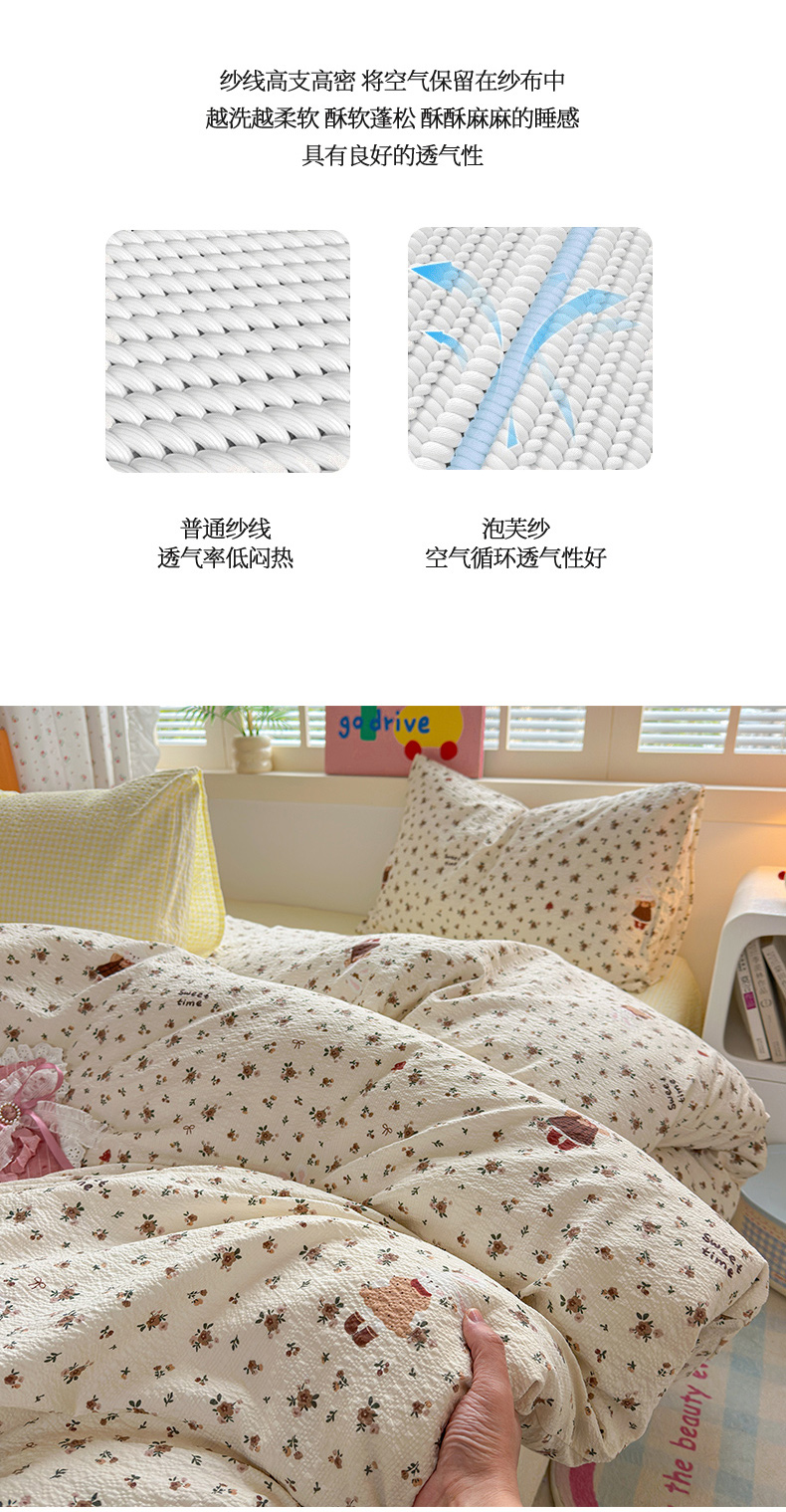 (总)奈颜 2026新款A类泡芙纱小碎花四件套学生宿舍三件套,只闻花香,春日甜甜,花有花期,柔华,松间茶事,兔崽花园,芋泥花束