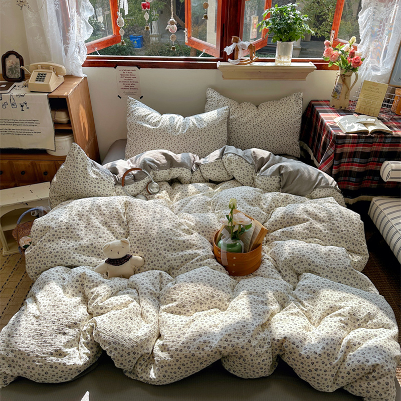 当前位置: 91家纺网 > 商品网购 > 床品套件 > 四件套 > 化纤活性四件套 > 阿曼达 2026新款日韩系复古印花小碎花软糯贴肤慵懒伴眠超治愈的床单床笠款四件套 小印-浅花.米灰