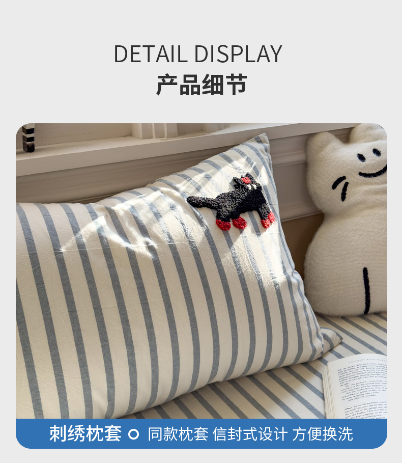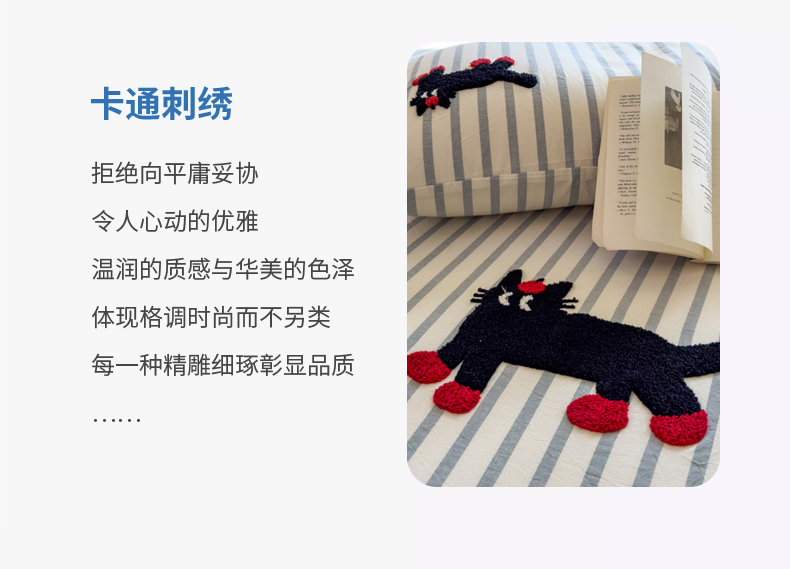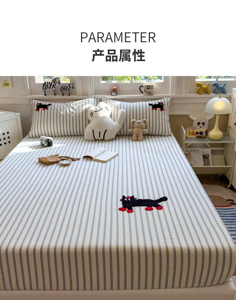 商品名称:席世家 2026新款全棉水洗棉床笠 水洗棉-小黑猫