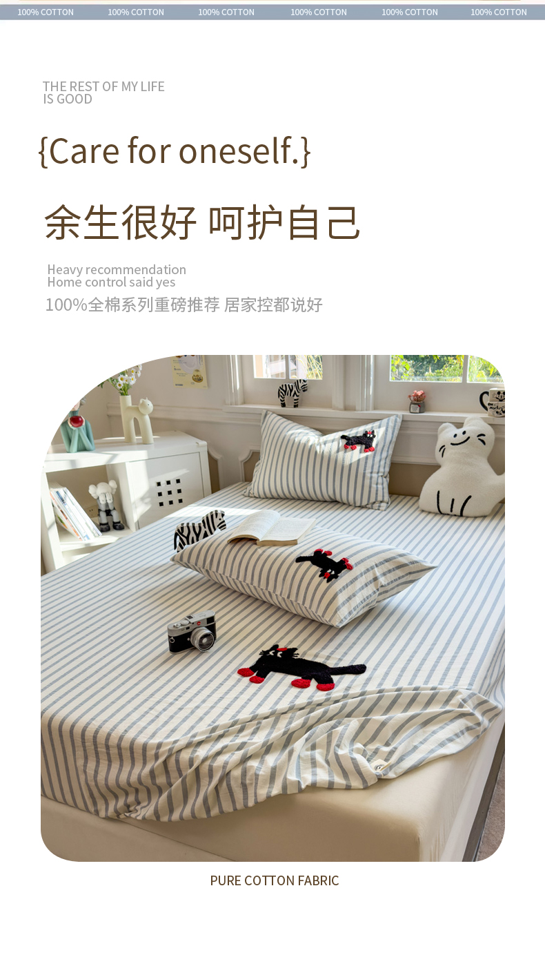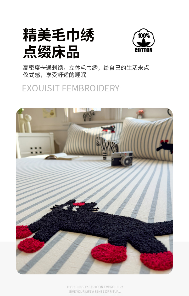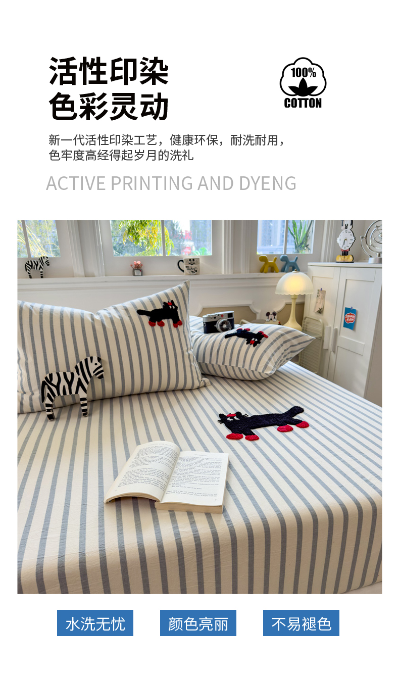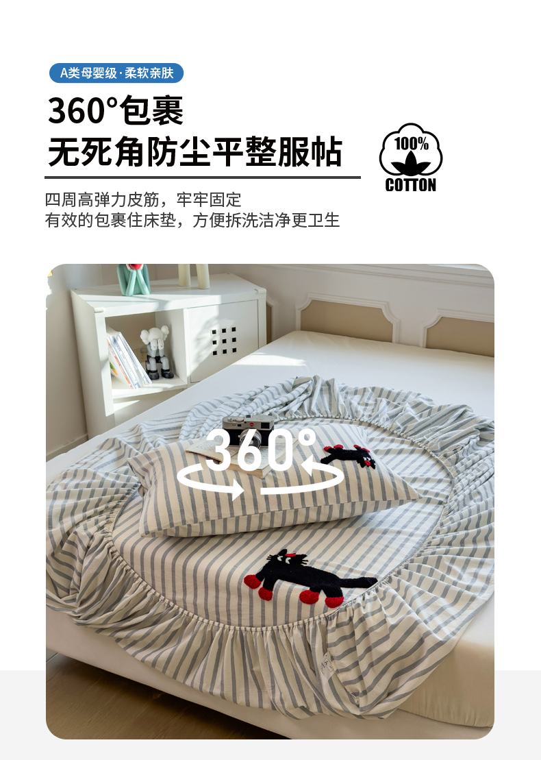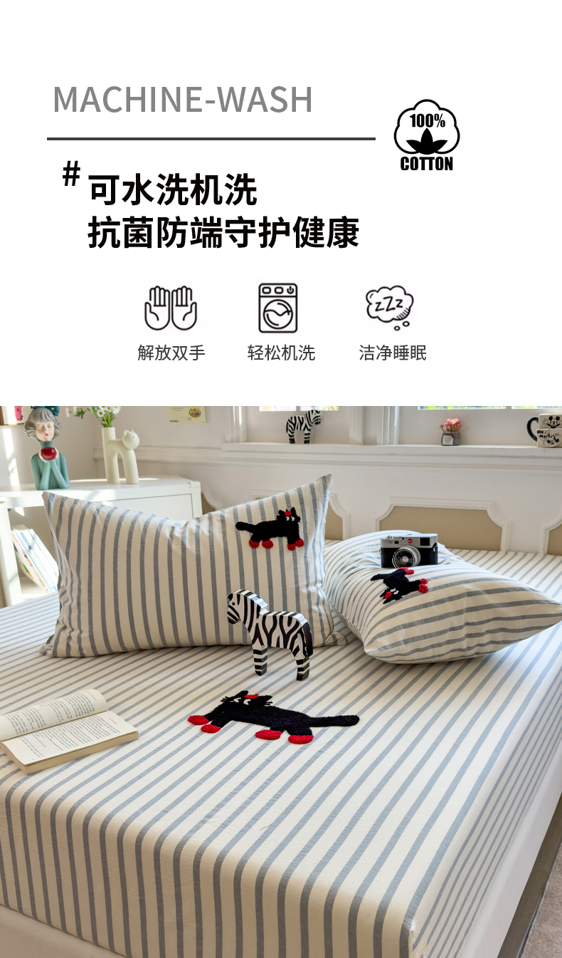 席世家 2026新款全棉水洗棉床笠 水洗棉-小黑猫