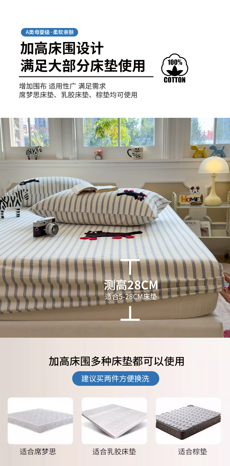 (总)席世家 2026新款全棉水洗棉床笠,水洗棉-盼盼,水洗棉-彩虹,水洗棉-可爱兔,水洗棉-曲奇,水洗棉-小黑猫,水洗棉-星愿,水洗棉-芝士