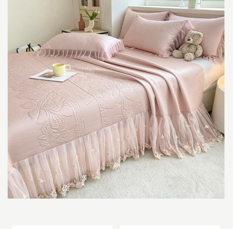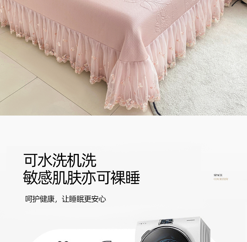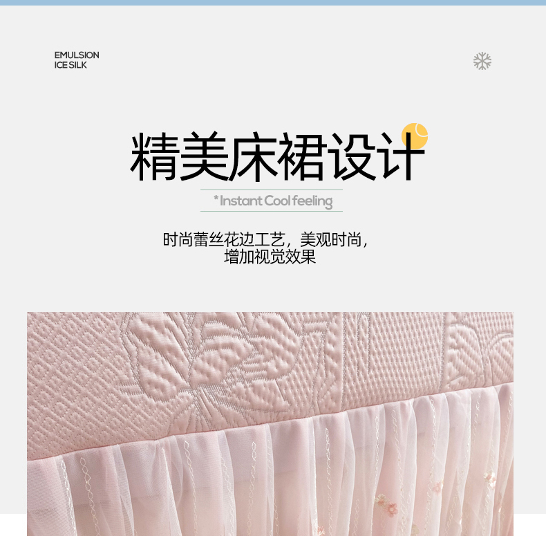 (总)能好家纺 2026春夏新款纯色+印花凉感丝乳胶凉席床裙款三件套,薄荷绿,豆沙,灰色,酒红,孔雀蓝,墨绿,雪青,棕色,古韵,小熊,雅韵,幽梦