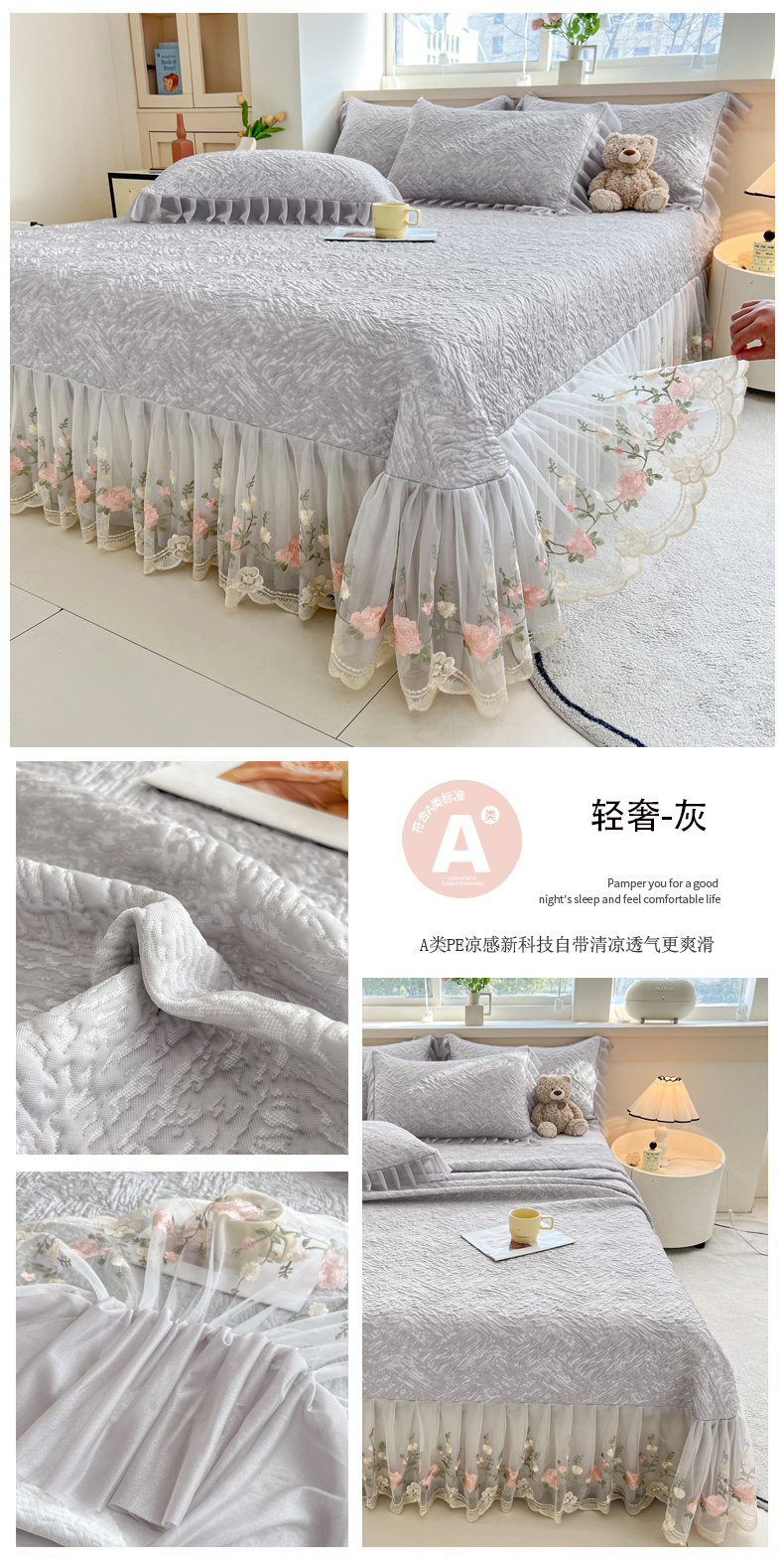 • 91家纺网 家纺一手货源 找家纺 (总)能好家纺 2026春夏新款纯色+印花凉感丝乳胶凉席床裙款三件套,薄荷绿,豆沙,灰色,酒红,孔雀蓝,墨绿,雪青,棕色,古韵,小熊,雅韵,幽梦