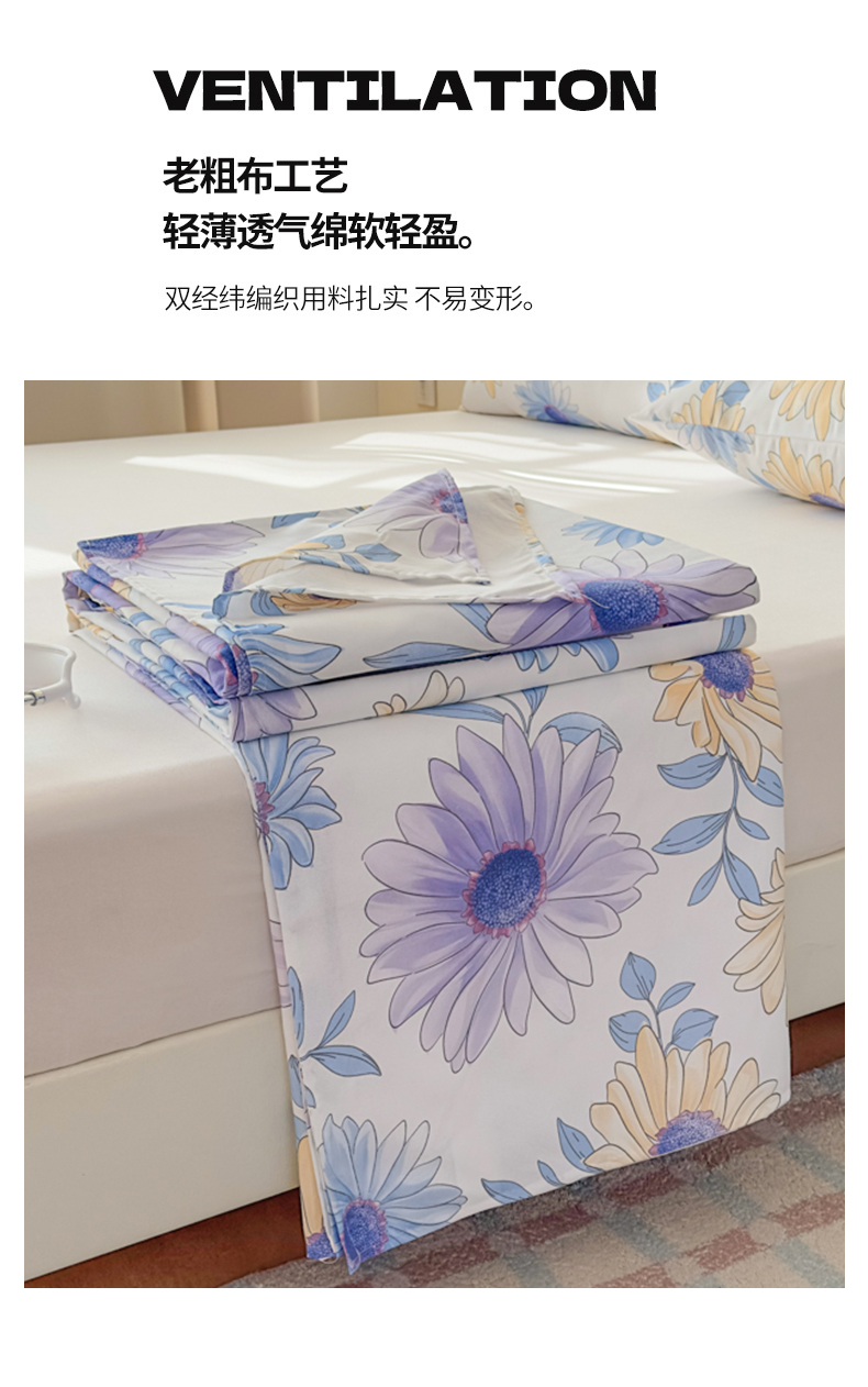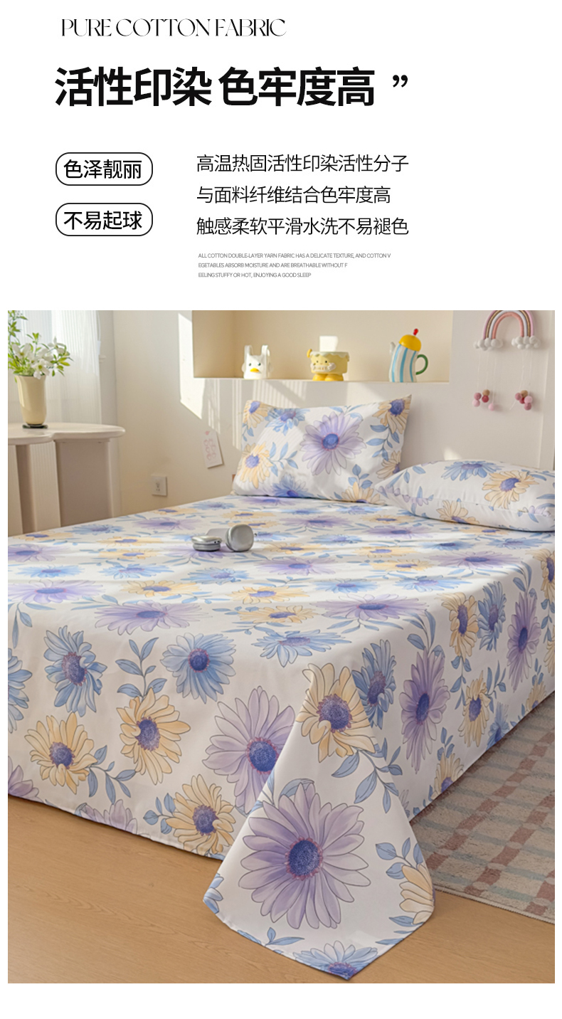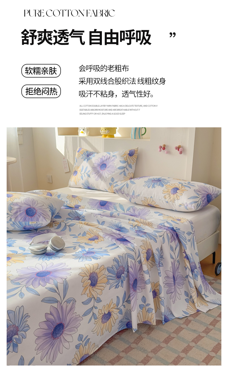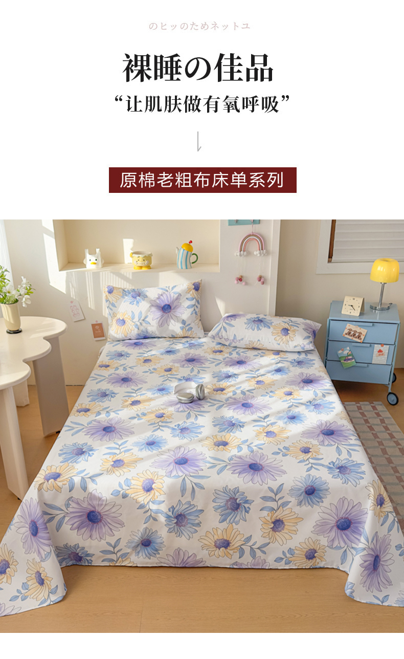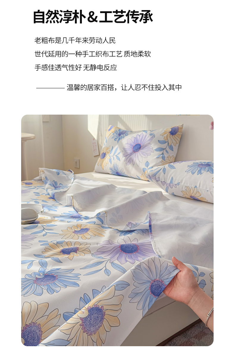 • 91家纺网 家纺一手货源 找家纺 爱彼家纺 2026夏季新款亲肤原棉老粗布透气印花床单单件热门热门床单款新升级-细沙老粗布 蓝菊绘